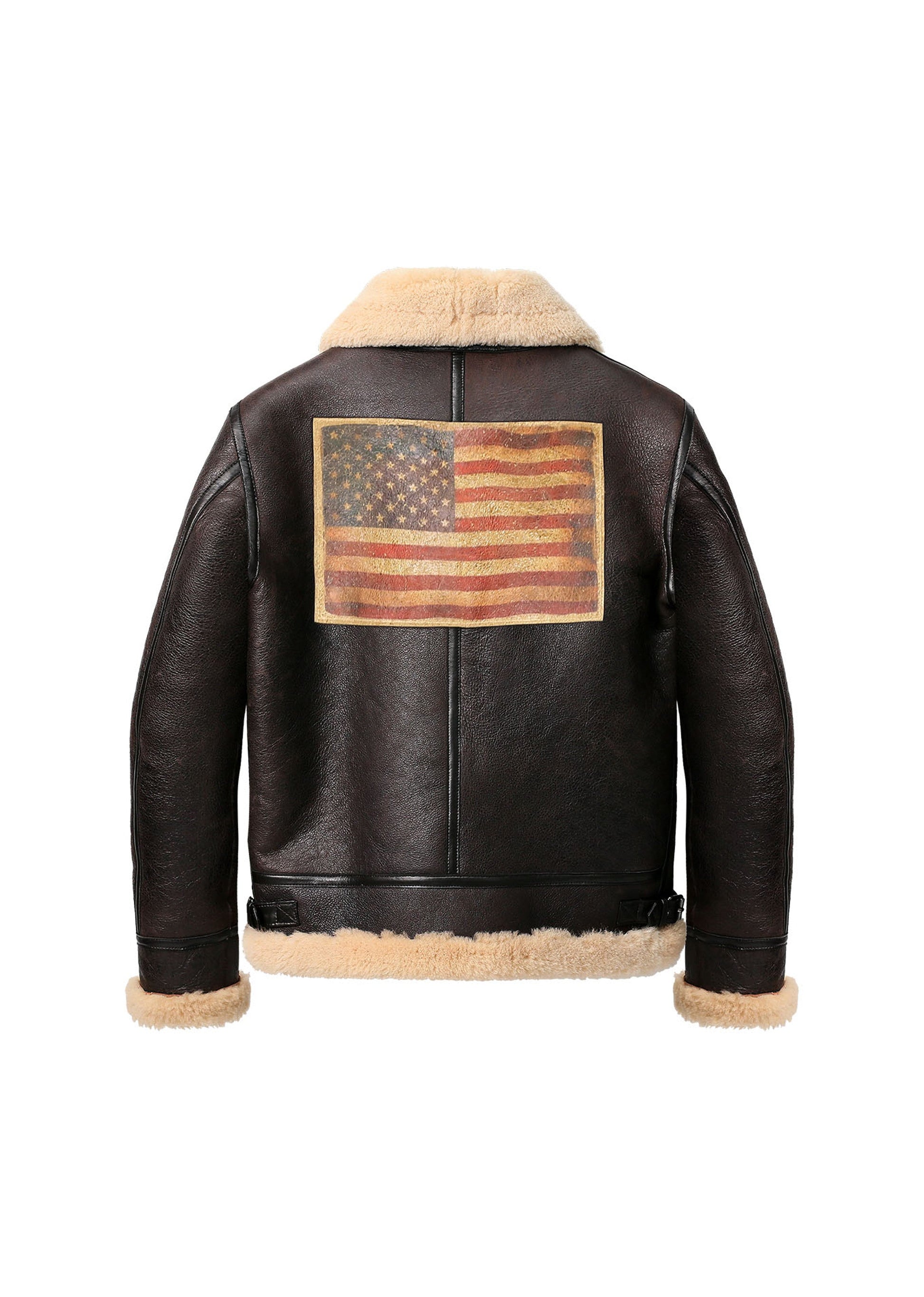 Découvrez le CUIR LEGEND QUEENSTOWNVeste col rabattu en peau retourné2 poches latérales passepoiléesBadge brodé sur la manche gaucheFermeture de la veste zippée Drapeau des Etats-Unis brodé dans le dos Parfait pour un style moderne et attrayant Composition : peau lainée double de mouton