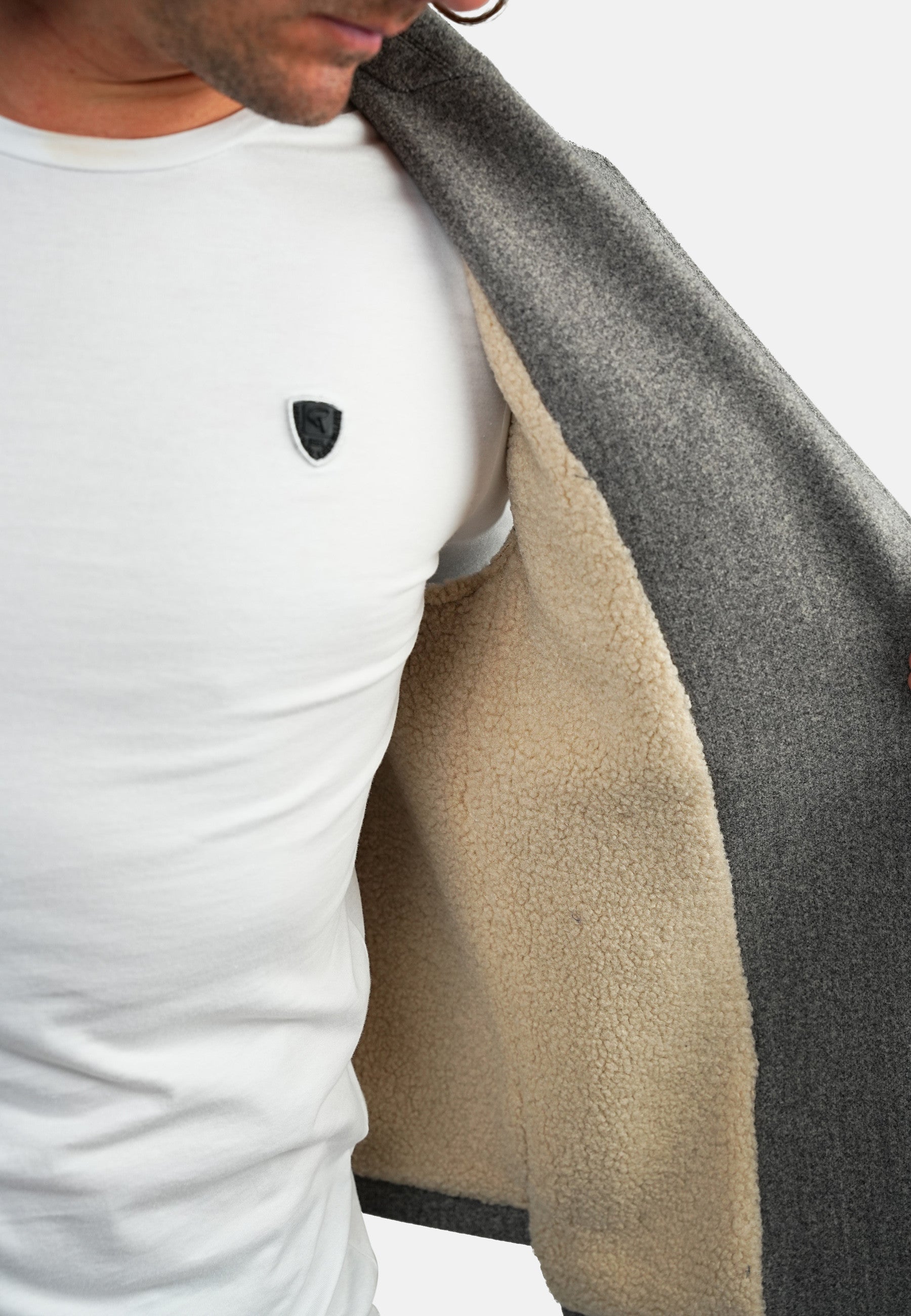 Petit logo en cuir en bas à droite de la veste sans manche