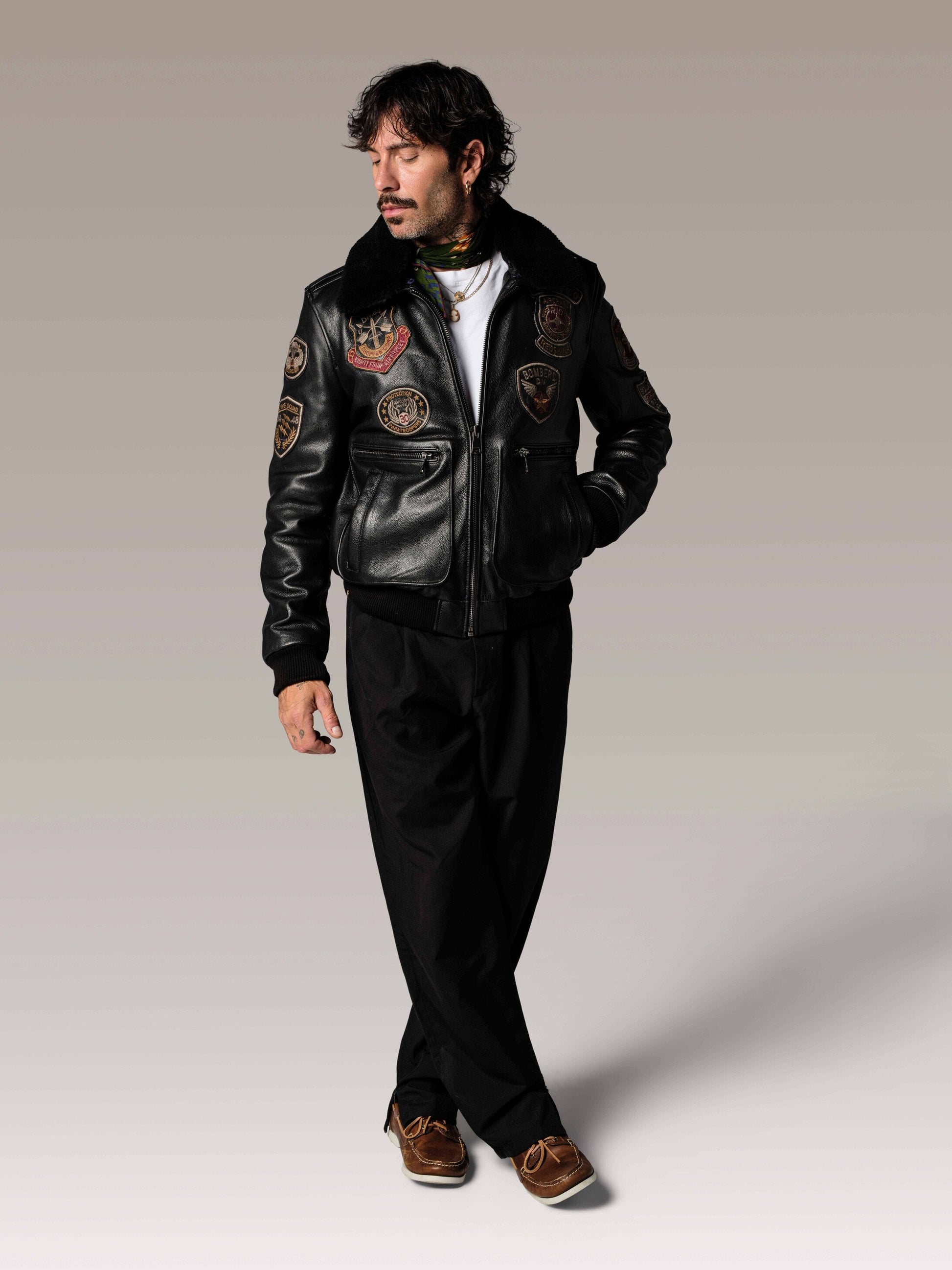 Découvrez le CUIR AVIA ARGUS ! 2 poches passepoilées latérales, 2 poches zippées sur la face avant, 8 badges brodées sur la face avant et les manches. Parfait pour un style moderne et attrayant ! Composition : cuir de vache.