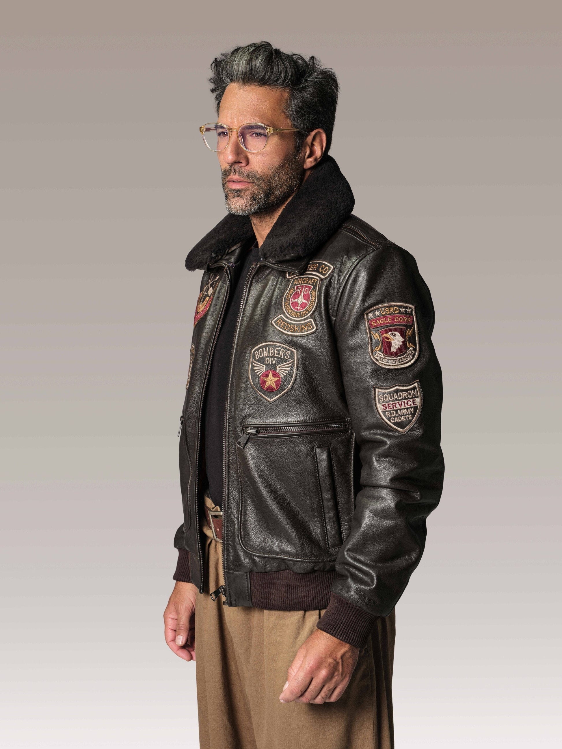 Découvrez le CUIR AVIA ARGUS ! 2 poches passepoilées latérales, 2 poches zippées sur la face avant, 8 badges brodées sur la face avant et les manches. Parfait pour un style moderne et attrayant ! Composition : cuir de vache.