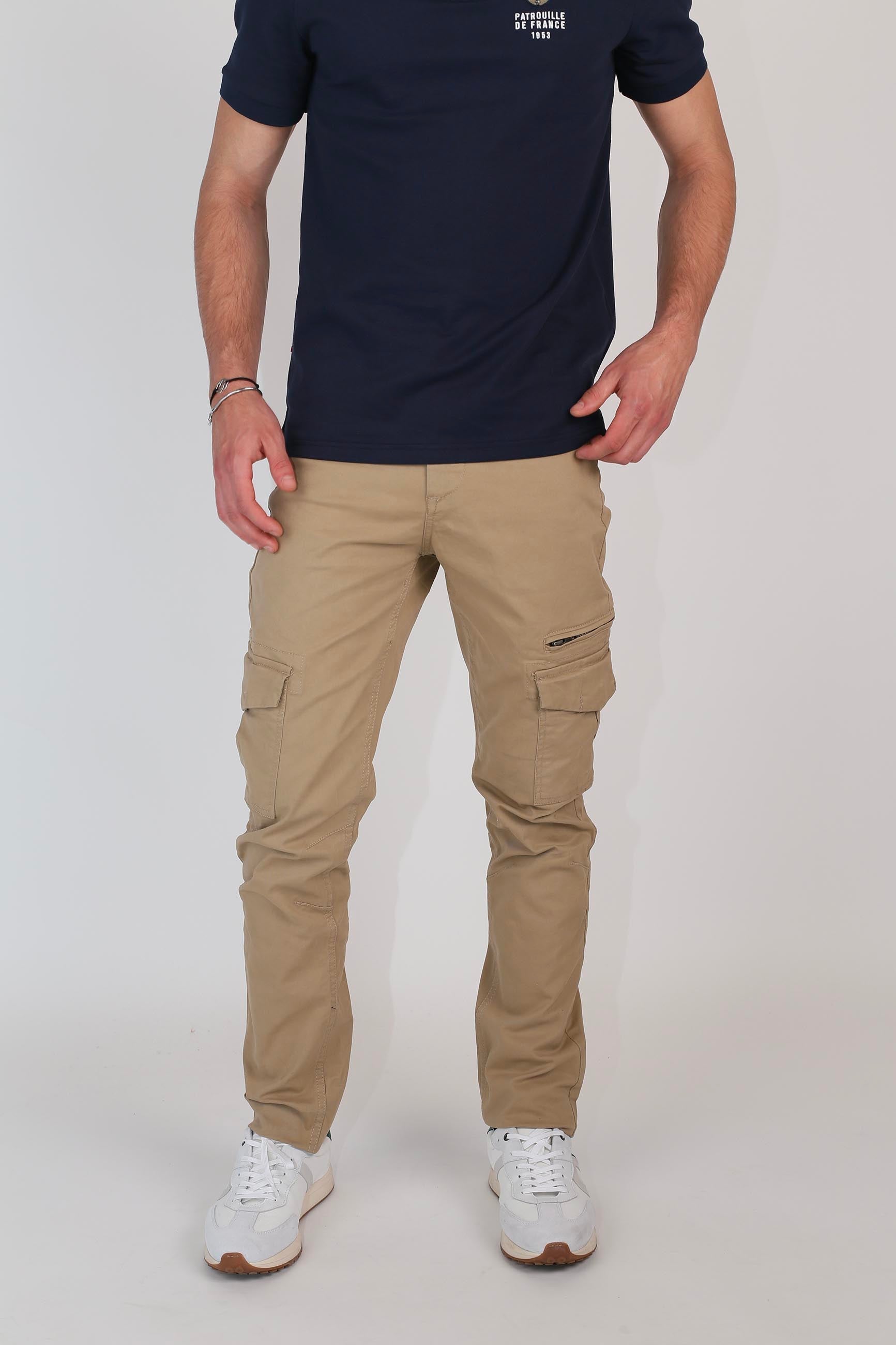 Pantalon LARGO VISION, fermeture avec 1 bouton d'attache et une fermeture éclair, 2 poches raglans latérales, 2 poches à rabats au niveau des cuisses, 1 poche zippée au dessus de la pocghe à rabat côté gauche, coupe droite, petit drapeau français attaché au dessus de la poche à raglan gauche, composition : 98% POLYESTER 2% ELASTHANNE. Collection Patrouille De France by Redskins.