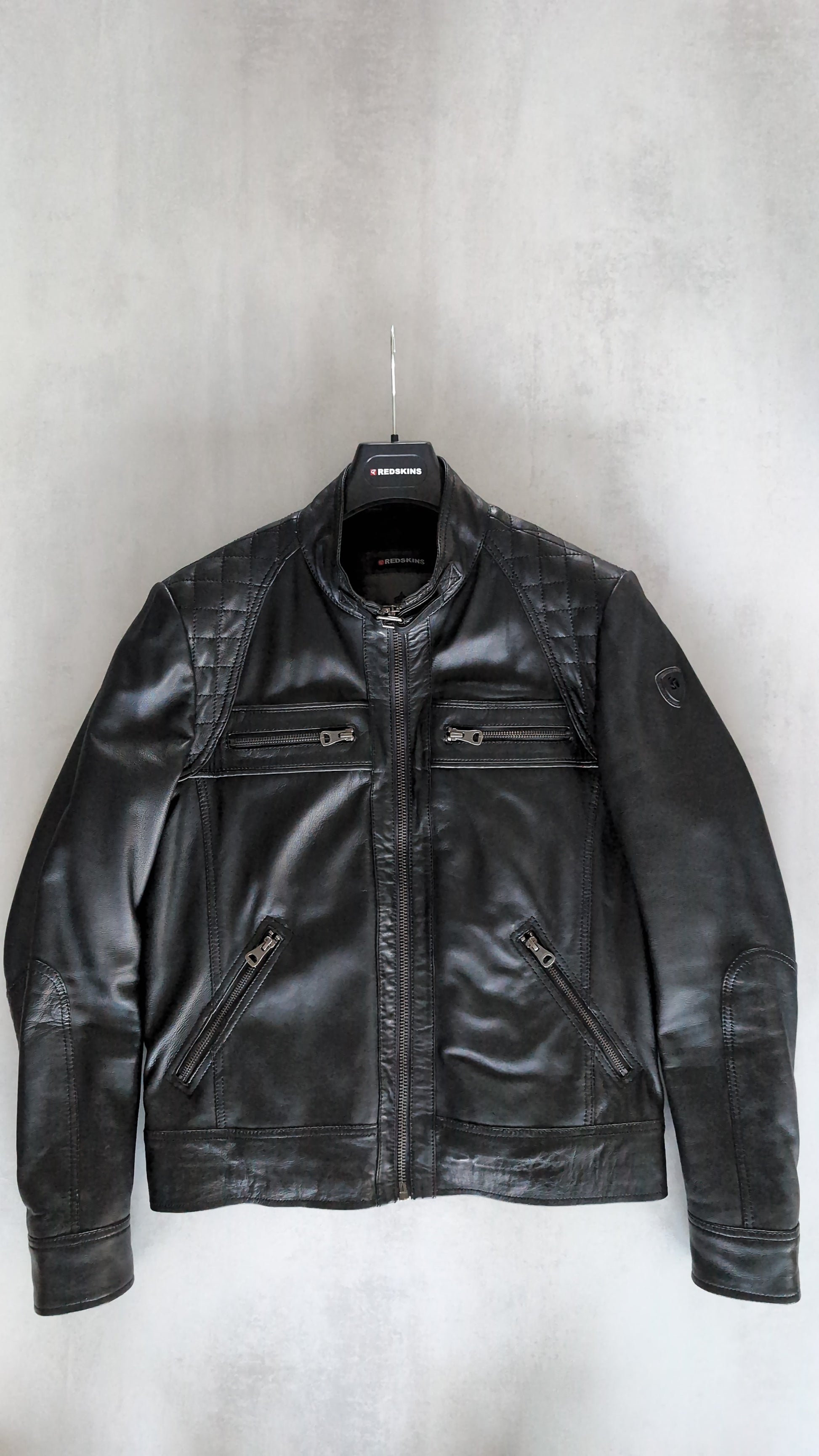 Le blouson en cuir BALBOA HOLSTER est en cuir de mouton. Il se compose de 4 poches à l'avant zippées, un col mao à pressions, un badge sur le bras gauche et des épaulettes travaillées en surpiqure. La coupe et les manches sont droits.