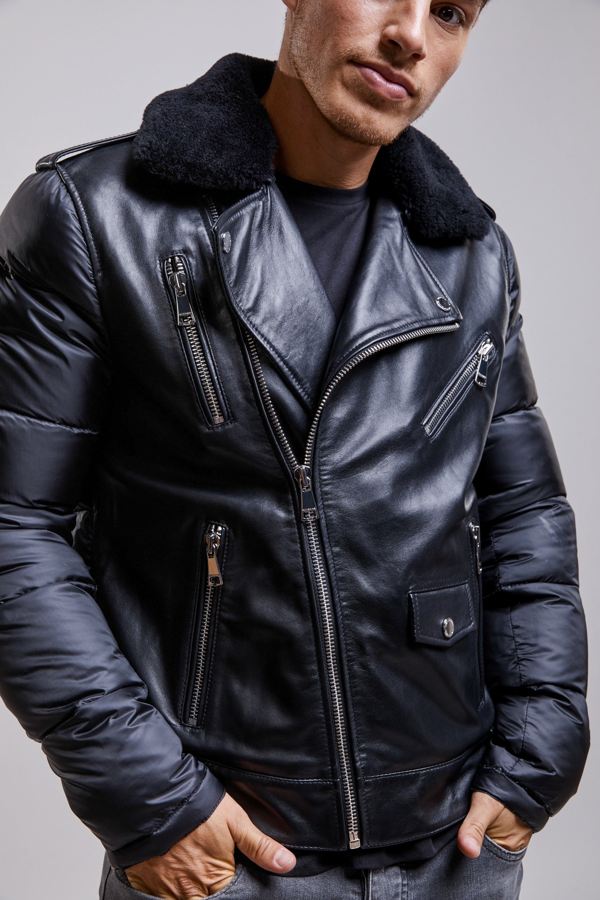 La veste en cuir LOWER SHYNE offre un duo de matière unique. Le corps de la pièce a été conçu en cuir de mouton laissant ses manches longues dotées de zip et son dos, accueillir des empiècements ouatinés façon doudoune. Quant à ses détails, ils surfent sur une ambiance rock sans fausses notes : col rabattu en fausse fourrure amovible, pattes d'épaules, mutlipoche et fermeture asymétrique.Ce blouson se portera ajusté, ouvert ou fermé, signant une silhouette audacieuse !