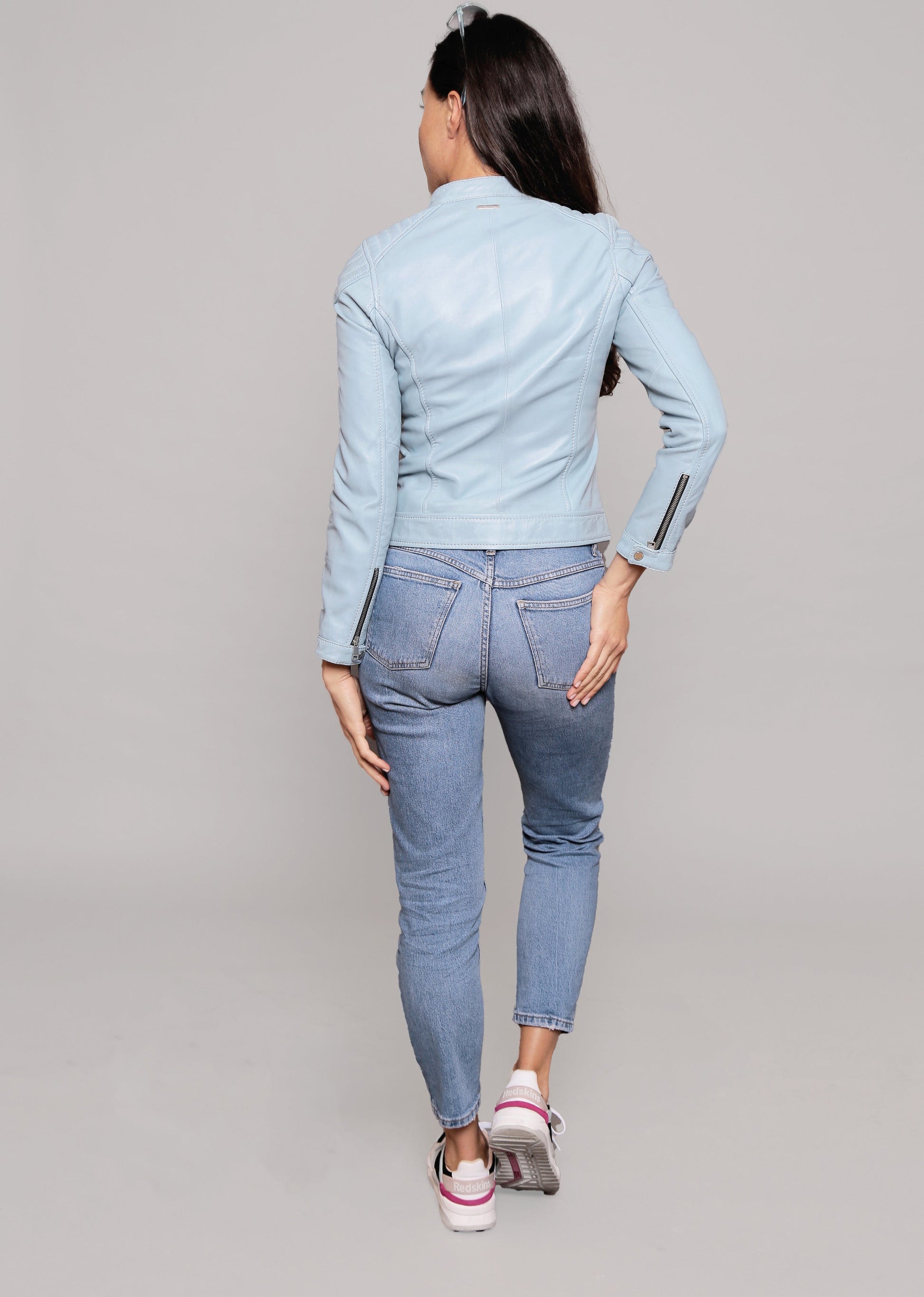 La veste LYTE TRIPWAY révélera votre côté à la fois élégant et sexy. Classique, cette pièce possède une coupe droite, idéale pour toutes vos occasions. On retrouve un aspect matelassé au niveau des épaules et une doublure travaillée. Cette pièce est dotée d'un col mao à pression métallique et des zips au niveau des poches, des poignets et de la fermeture ainsi que deux boutons à pression en bas du vêtement. Ces détails en font d'elle une pièce exceptionnelle. Composition : cuir de Mouton.