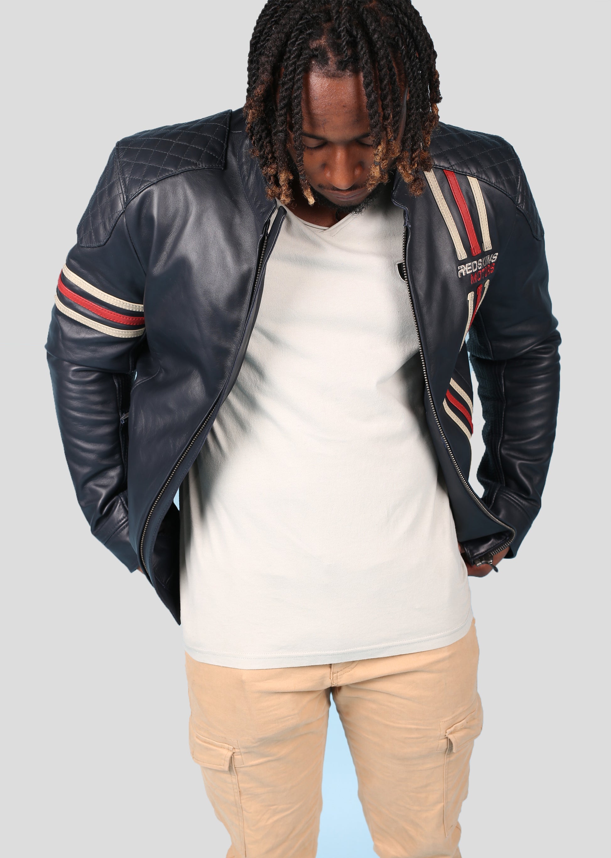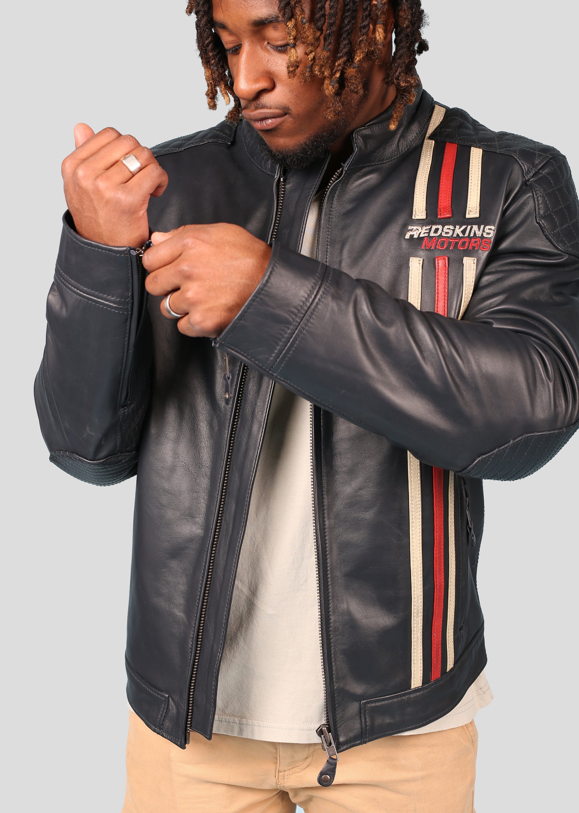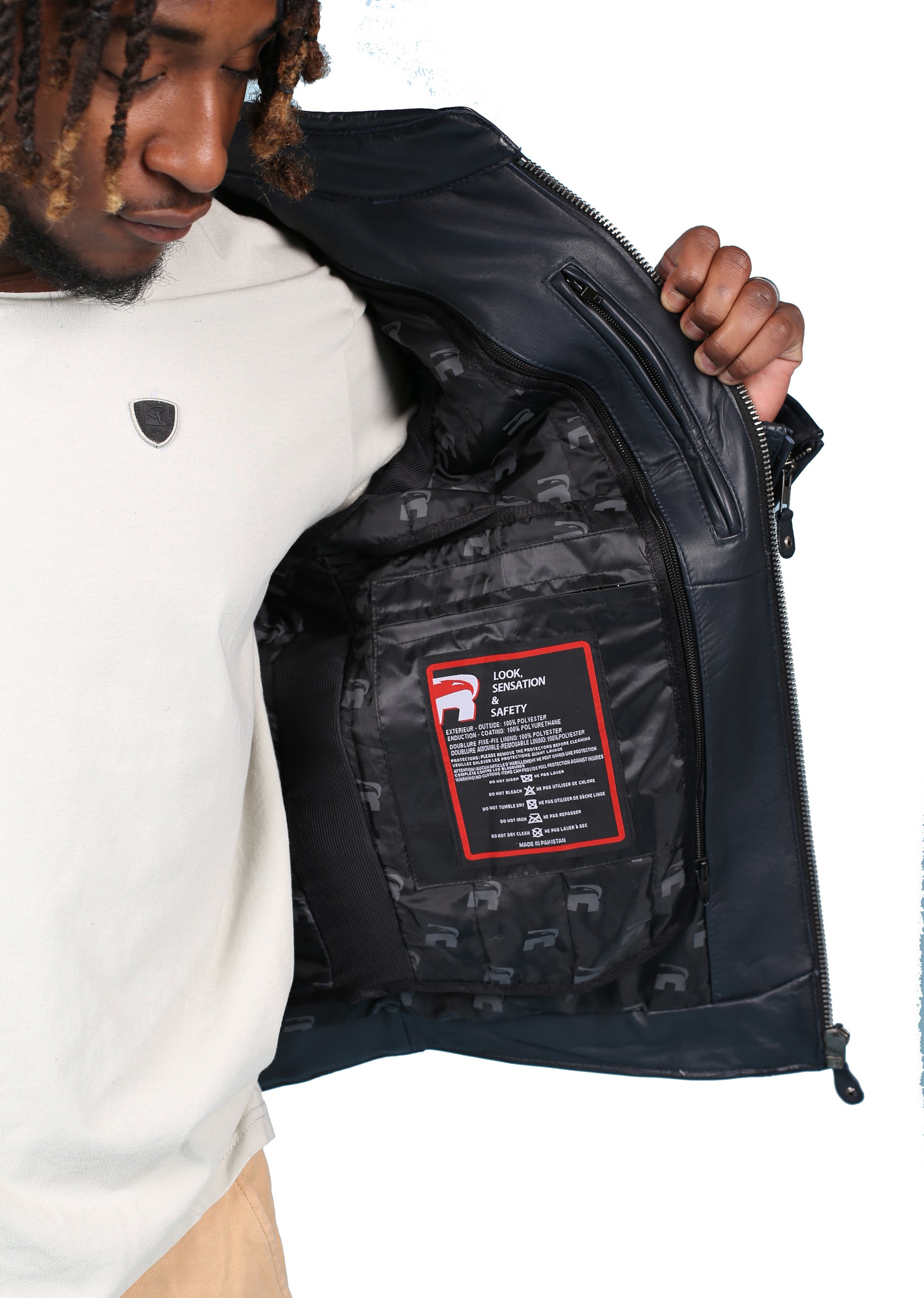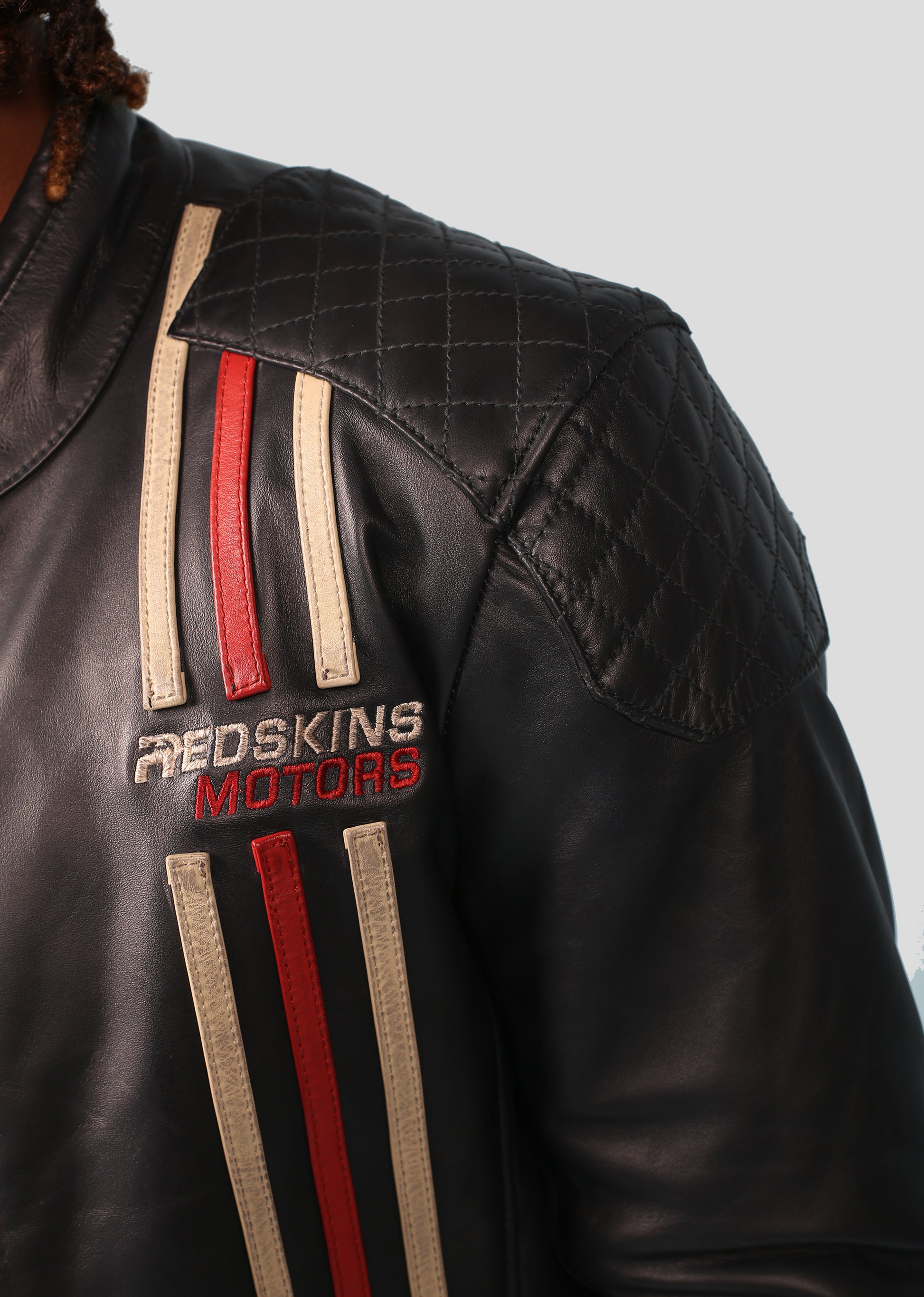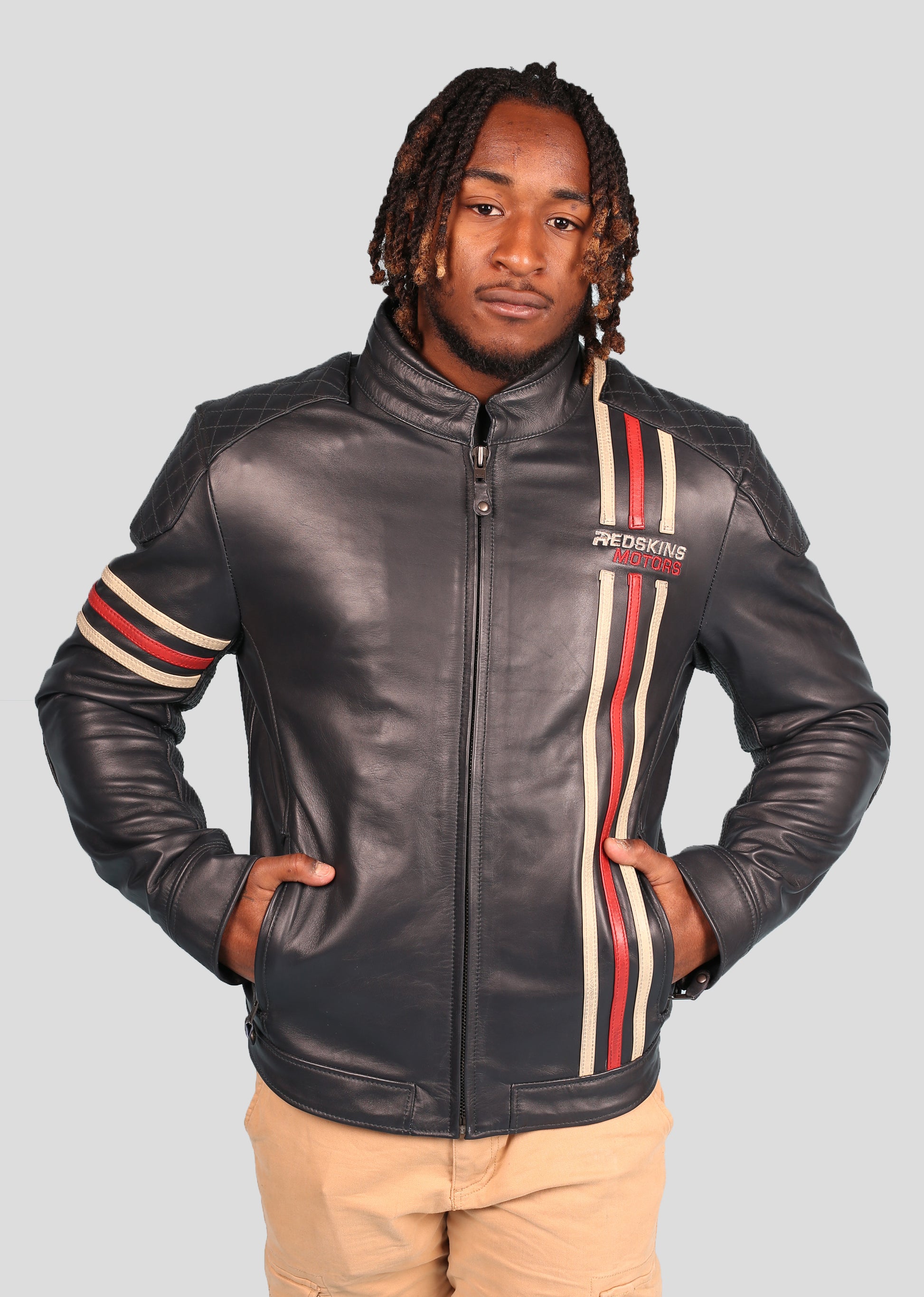 REDSKINS revient en force dans le milieu motard ! Le blouson MARTIN en cuir de vachette possède des coques de protections des coudes et épaules normes CE, intégrées et amovibles. Blouson prédisposé à recevoir une protection dorsale. La doublure est logotée, thermique 100g amovible. On retrouve des repères couleurs dans les manches afin de faciliter la mise en place de la doublure thermique. La coupe est droite et classique. On retrouve des empiècements aux épaules et aux coudes avec des bandes sur le bras droit ainsi que sur le côté gauche avec un logo au niveau du coeur. Des zips pour la fermeture de la pièce, des poches et aux extremités des manches. Un badge REDSKINS MOTORS orne la pièce derrière le col.