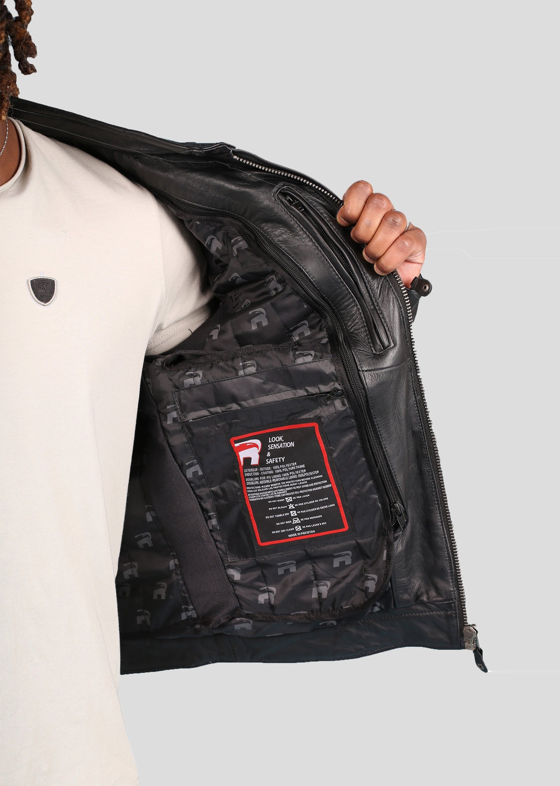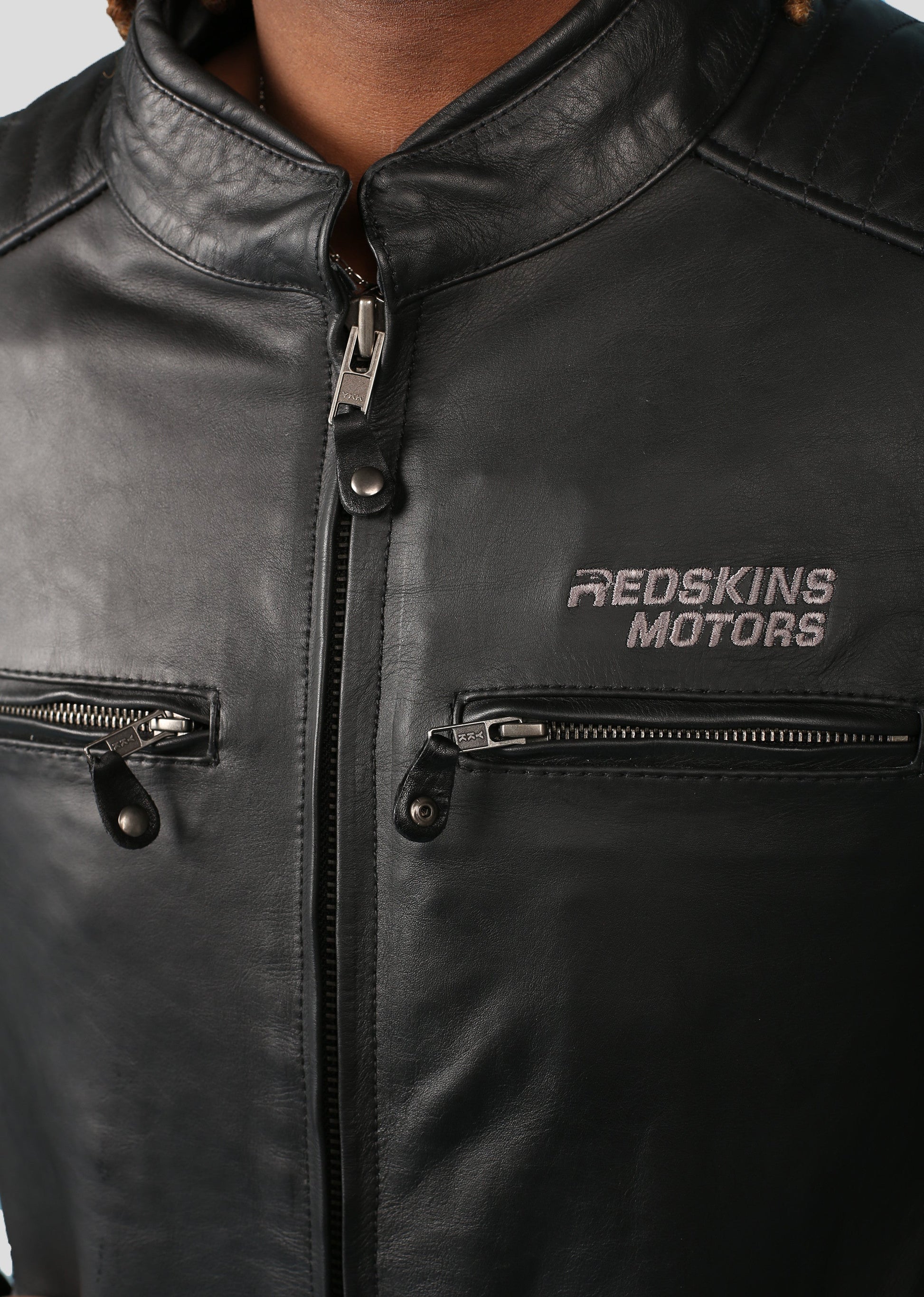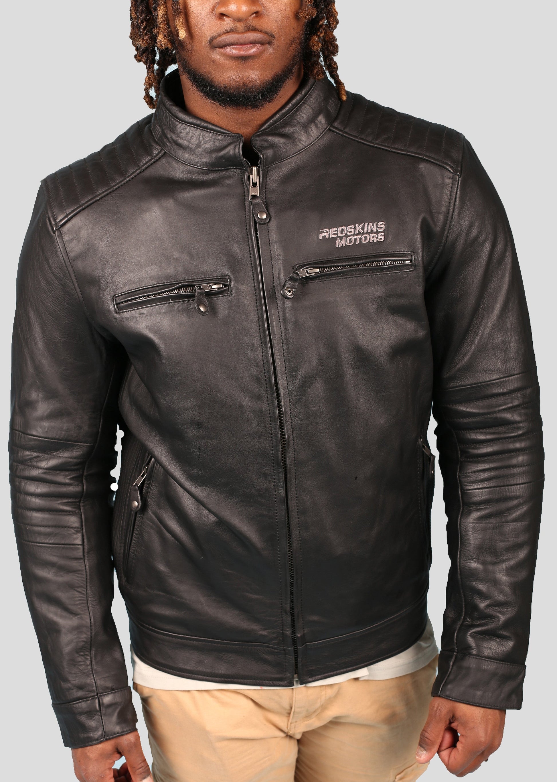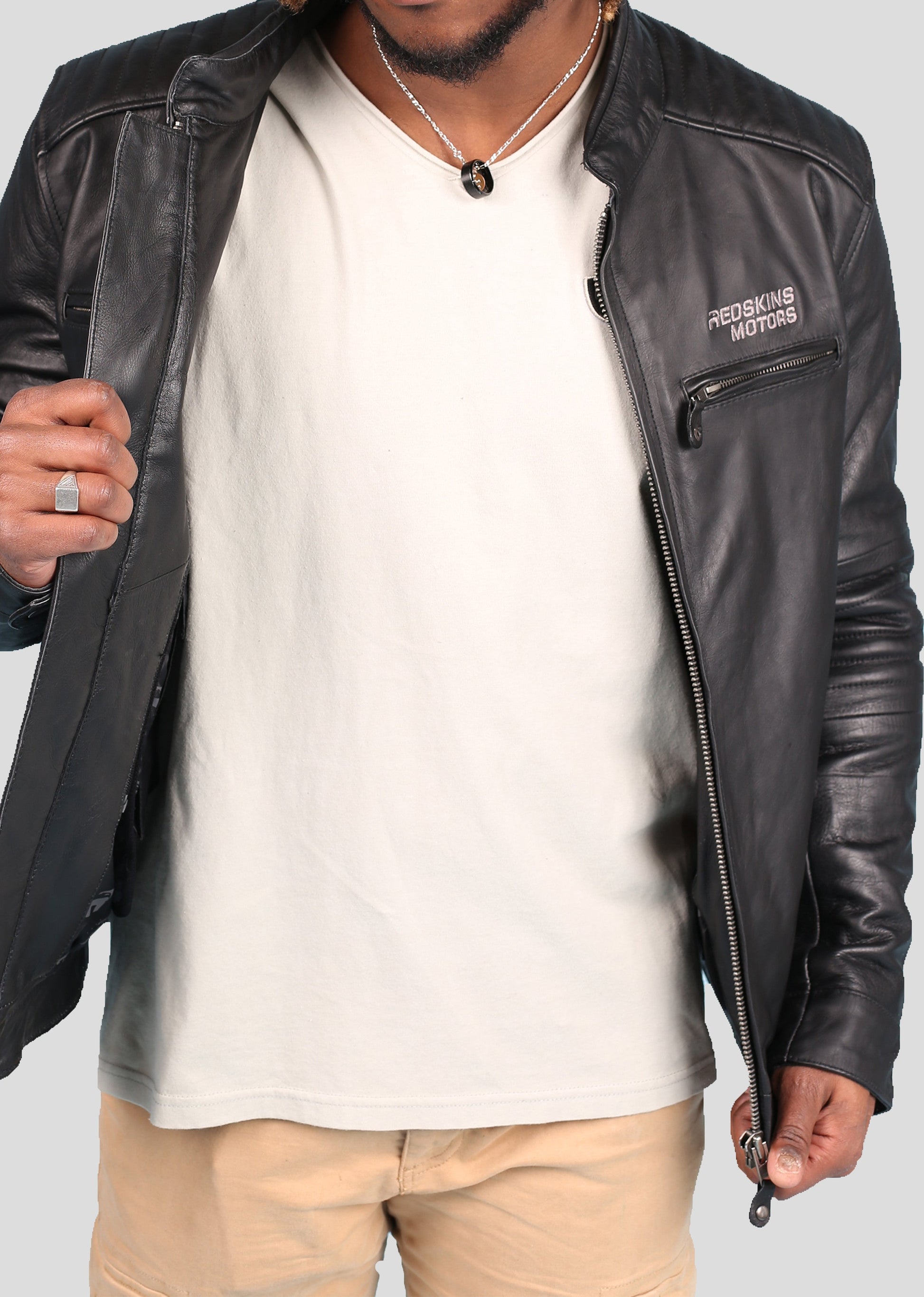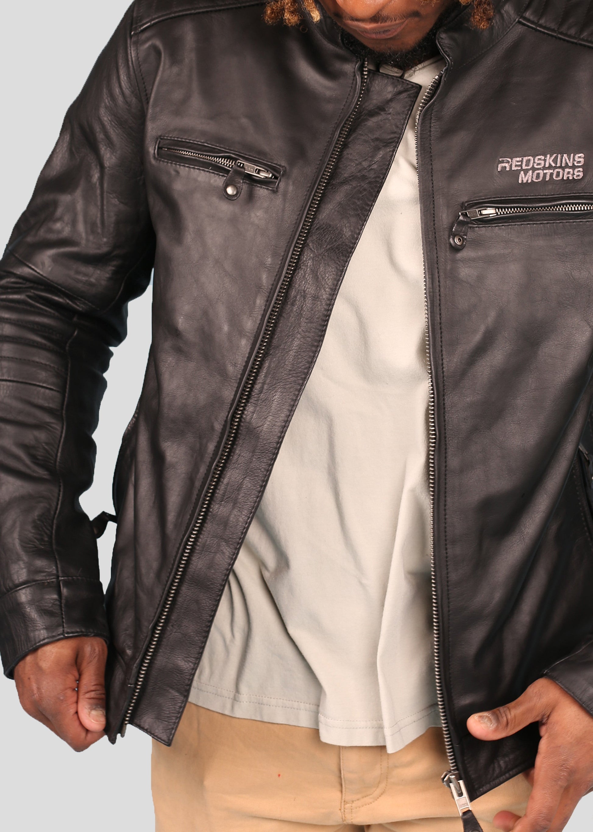REDSKINS revient en force dans le milieu motard ! Aux allures vintages, le blouson OREGON en cuir de vachette possède des coques de protections des coudes et épaules normes CE, intégrées et amovibles. Blouson prédisposé à recevoir une protection dorsale. La doublure est logotée, thermique 100g amovible. On retrouve des repères couleurs dans les manches afin de faciliter la mise en place de la doublure thermique. La coupe est droite et classique. Matelassage au niveau des épaules et des avants-bras, ceinture au niveau de la taille pour ceintrer, écusson au niveau du cou. On trouve une petite inscription REDSKINS MOTORS sur la poitrine côté gauche ainsi que 4 poches zippées sur l'avant.
