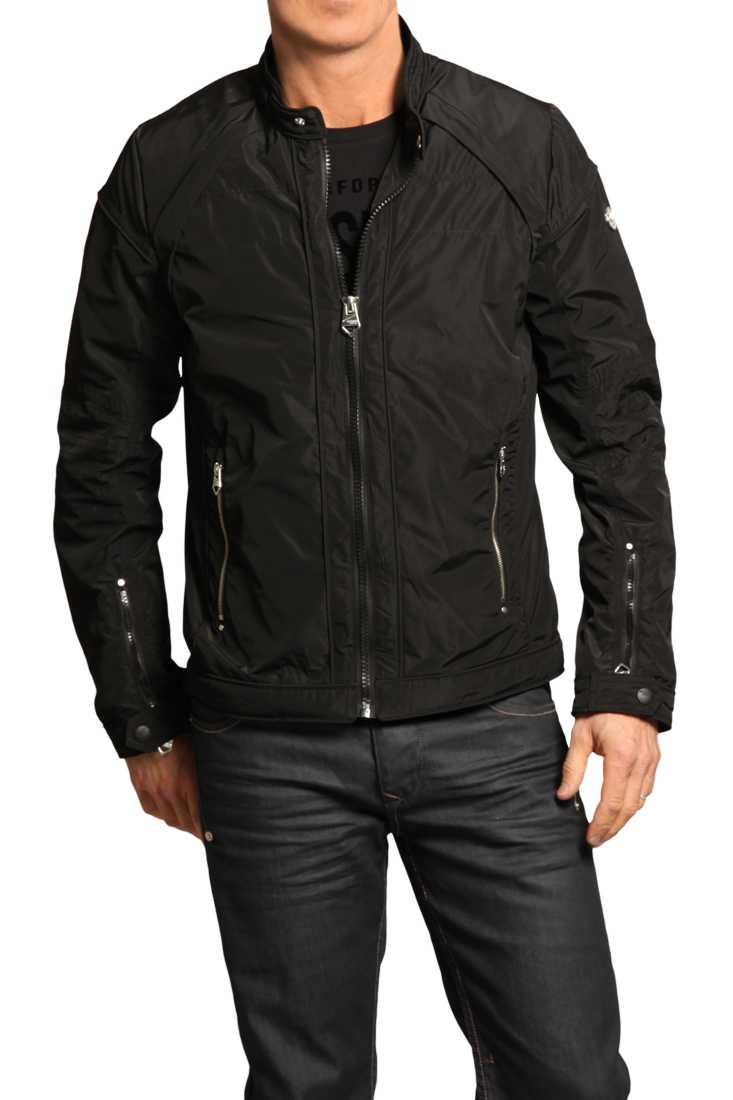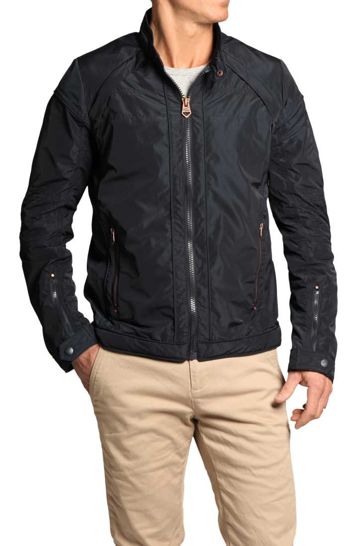 Blouson esprit Moto avec 1 fermeture milieu devant par un zip plastique et col montant fermé par 1 bouton pression - Poignets avec bouton pression + zip et pattes de serrage dans le dos de la ceinture bas de vêtement - 4 poches zippées devant ( 2 sous les empiècements épaule et 2 en bas) - Multiples empiècements et jeux de surpiqûres badge rond en métal "RDS" sur la manche gauche au porté - Doublure filet avec passepoil fantaisie écru – 3 poches (dont une avec zip)