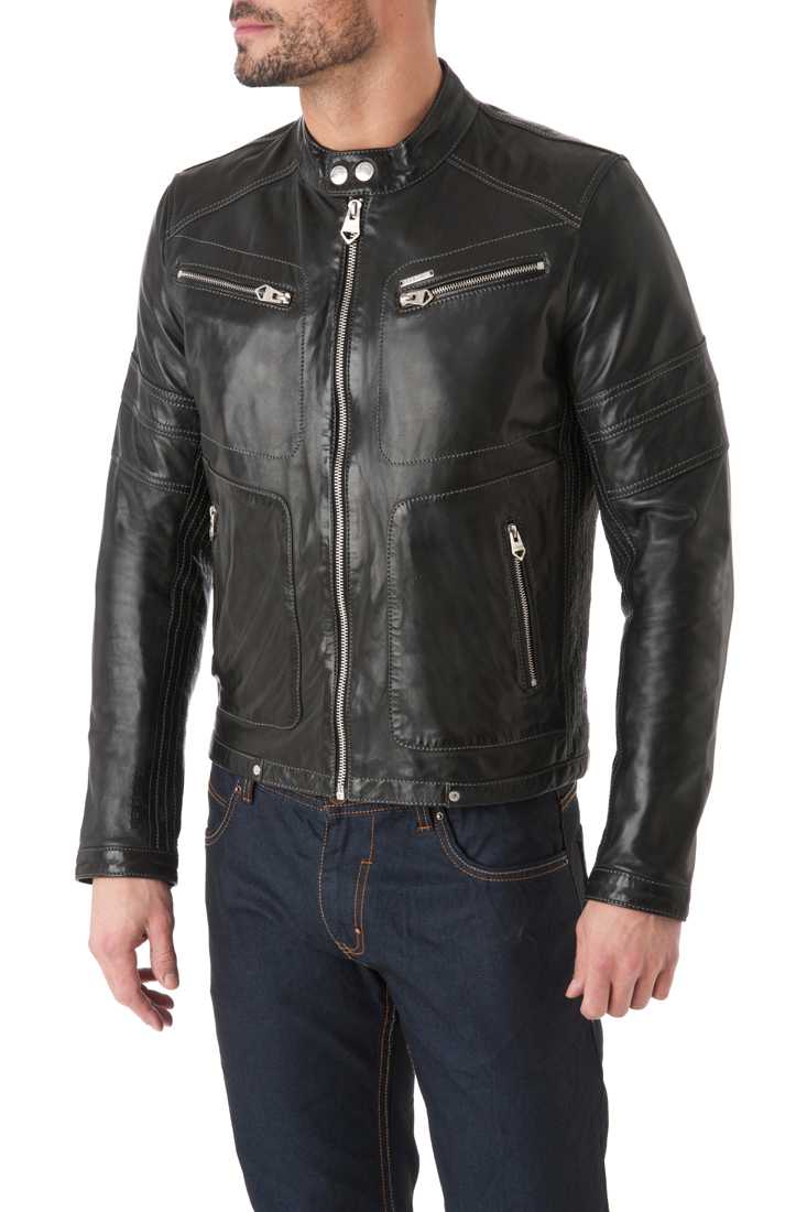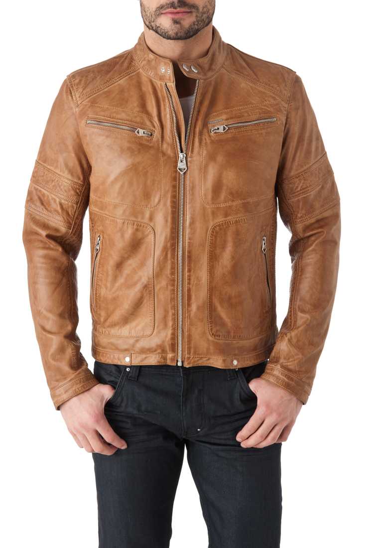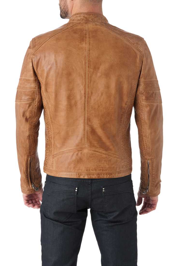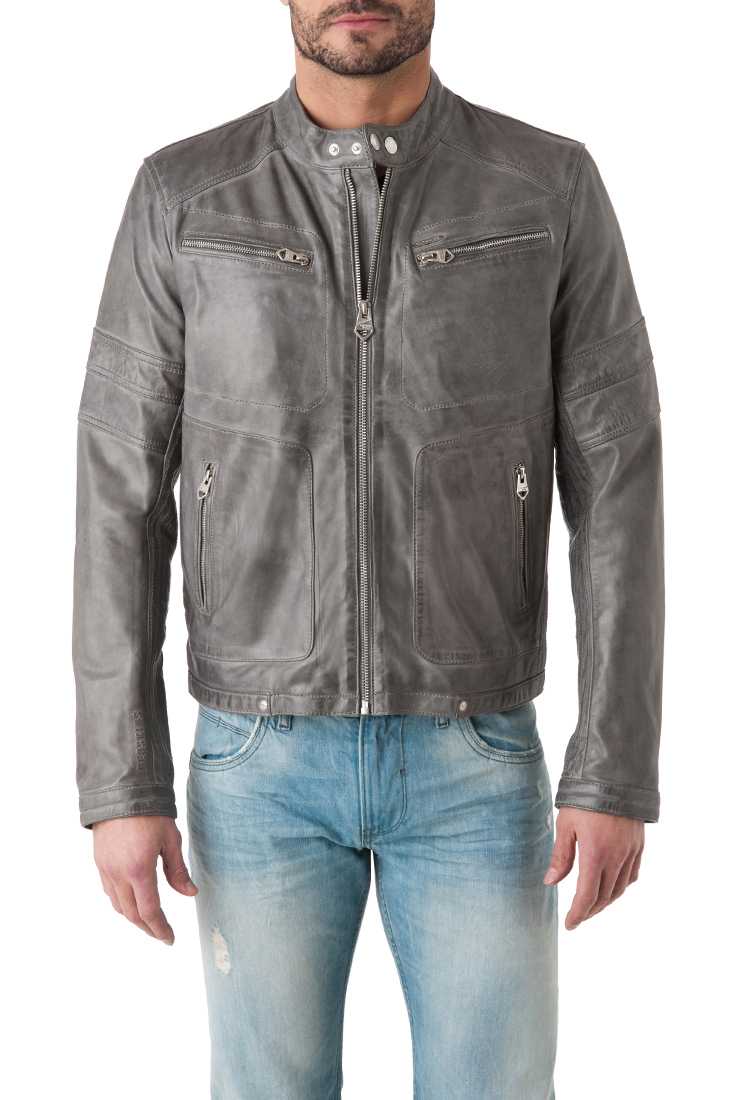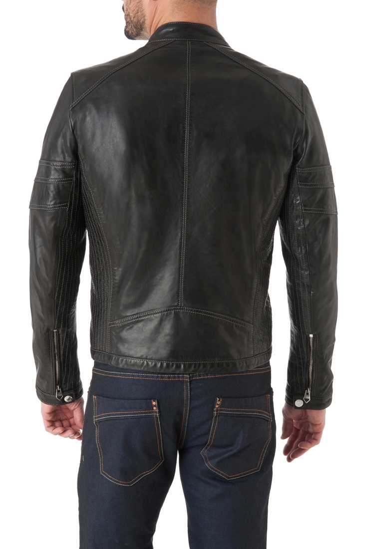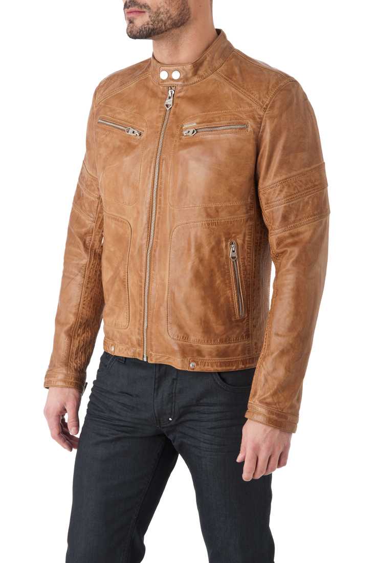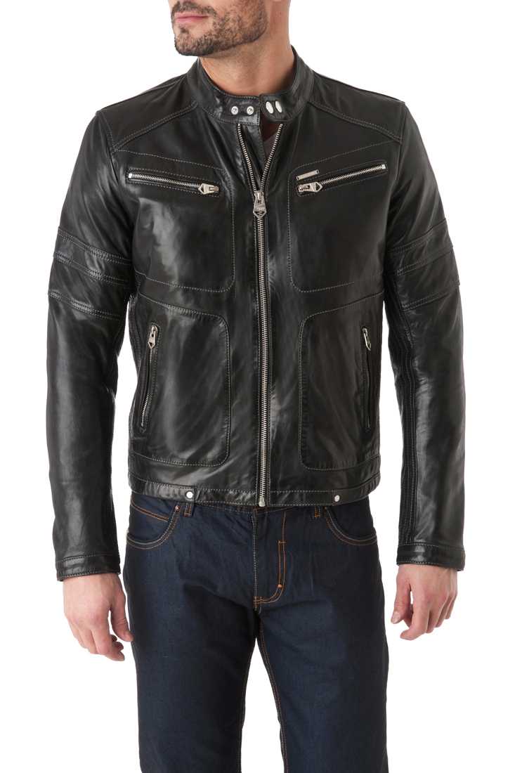 Blouson en cuir de mouton - Fermeture zippée & Col Moto à bouton pression, 2 poches poitrine + 2 poches bas zippées, Zip bas de manches, Poignets à bouton pression, Marquage « Redskins » en relief bas de manche droite, métal placket « Redskins » haut poche poitrine - 2 poches intérieures zippées + 1 poche plaquée - Doublure 100 % Polyester