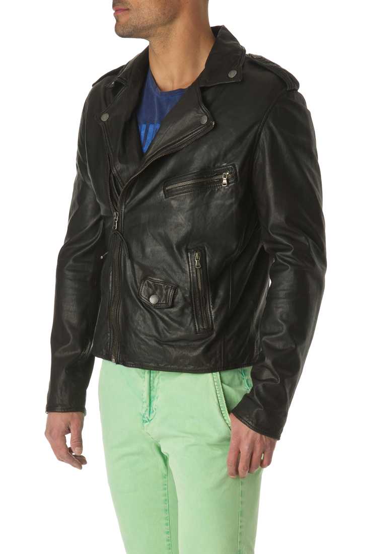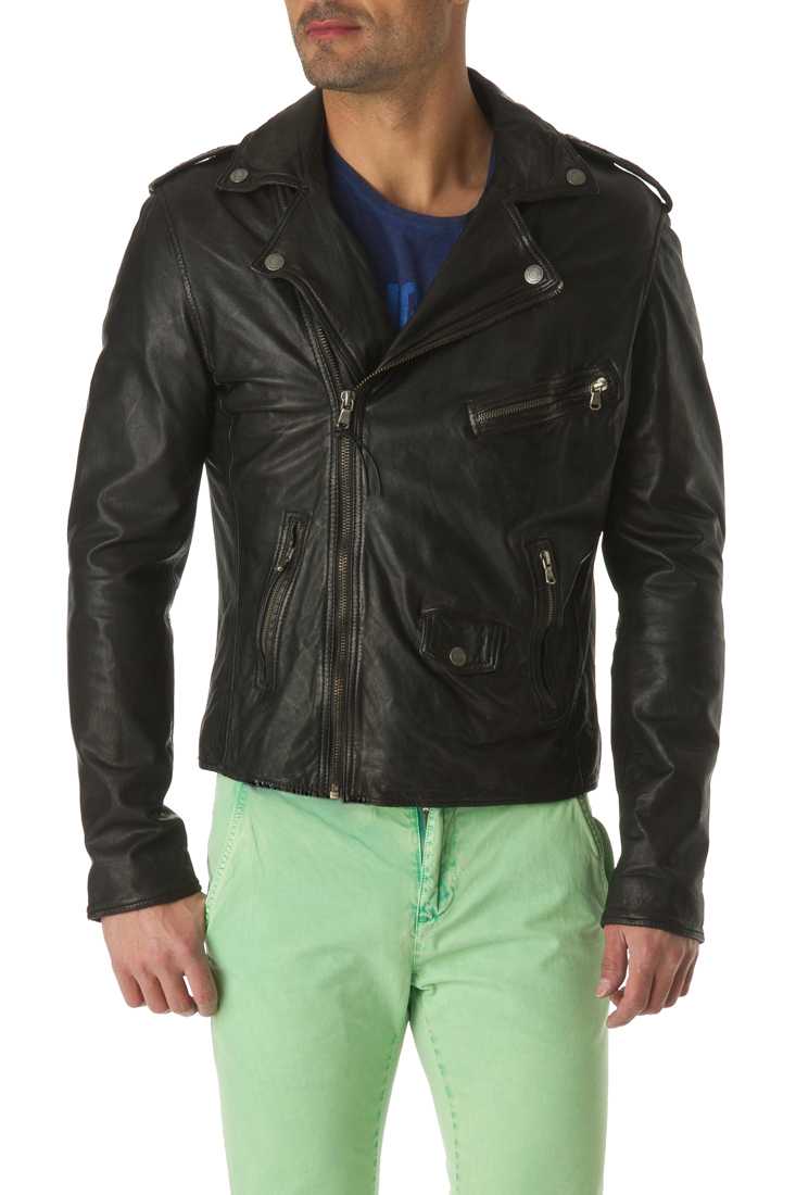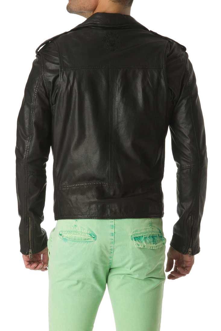 Blouson « rocker » en cuir de mouton, zip en biais - 1 poche zippée poitrine - 2 poches bas zippées + 1 poche à rabat pression - Bas de manches zippées - Pattes épaule à pression - Broderie « Redskins » haut milieu dos - 2 poches zippées intérieures - Doublure 100 % Coton