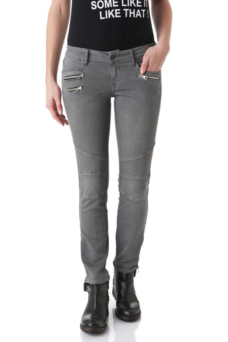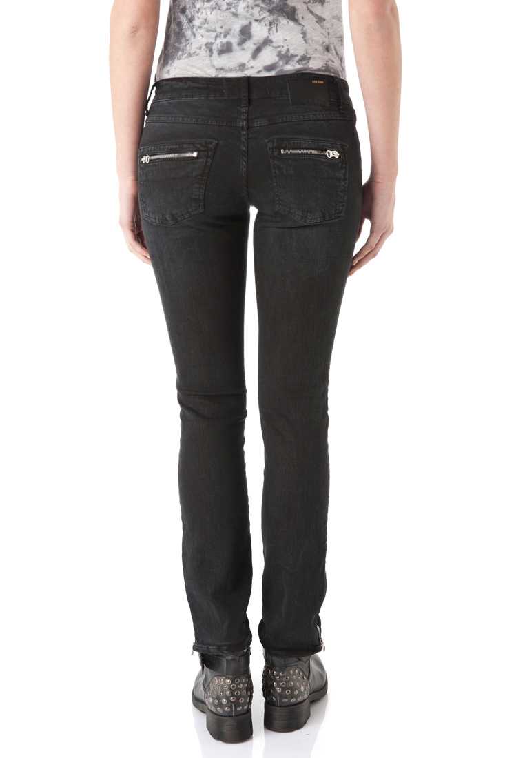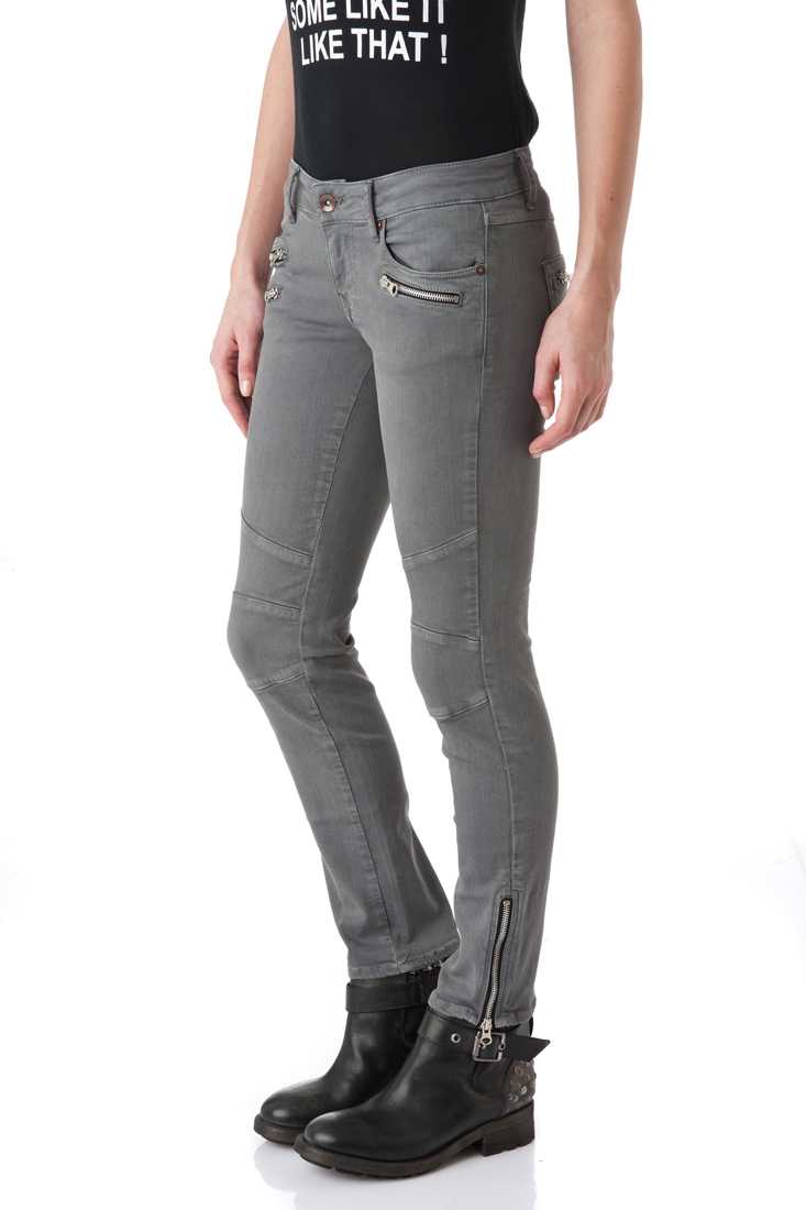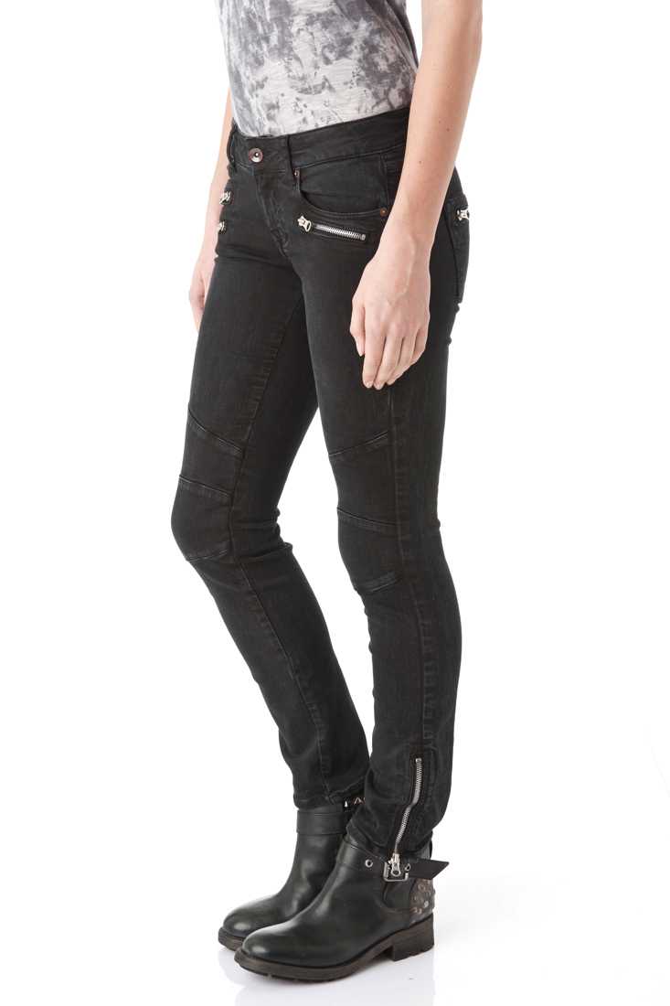 Jeans en coton élasthanne, Coupe Skinny, Poches zippées devant avec une découpe et surpiqûres aux genoux.