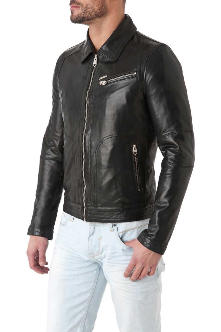 Blouson en cuir de mouton - Fermeture zippée Col chemise - 1 poche poitrine et 2 poches bas zippées - Métal placket "Redskins" haut poche poitrine - 2 poches zippées + 1 poche plaquée intérieure - Manche zippée et à pression - Doublure 100 % Polyester