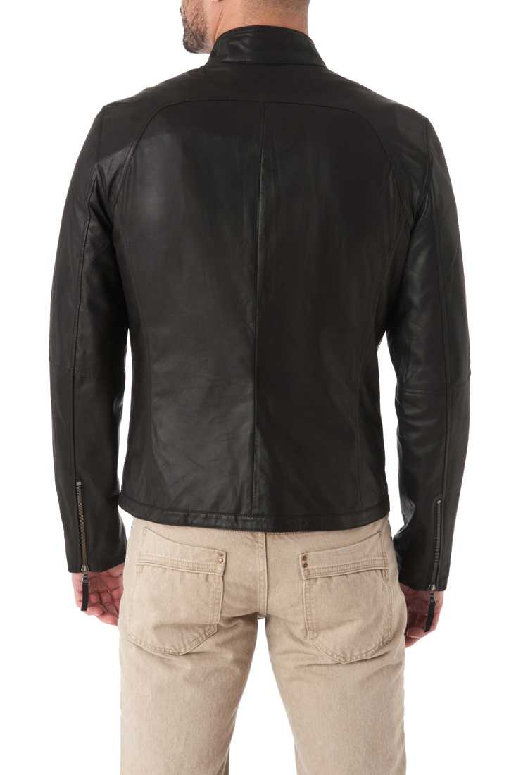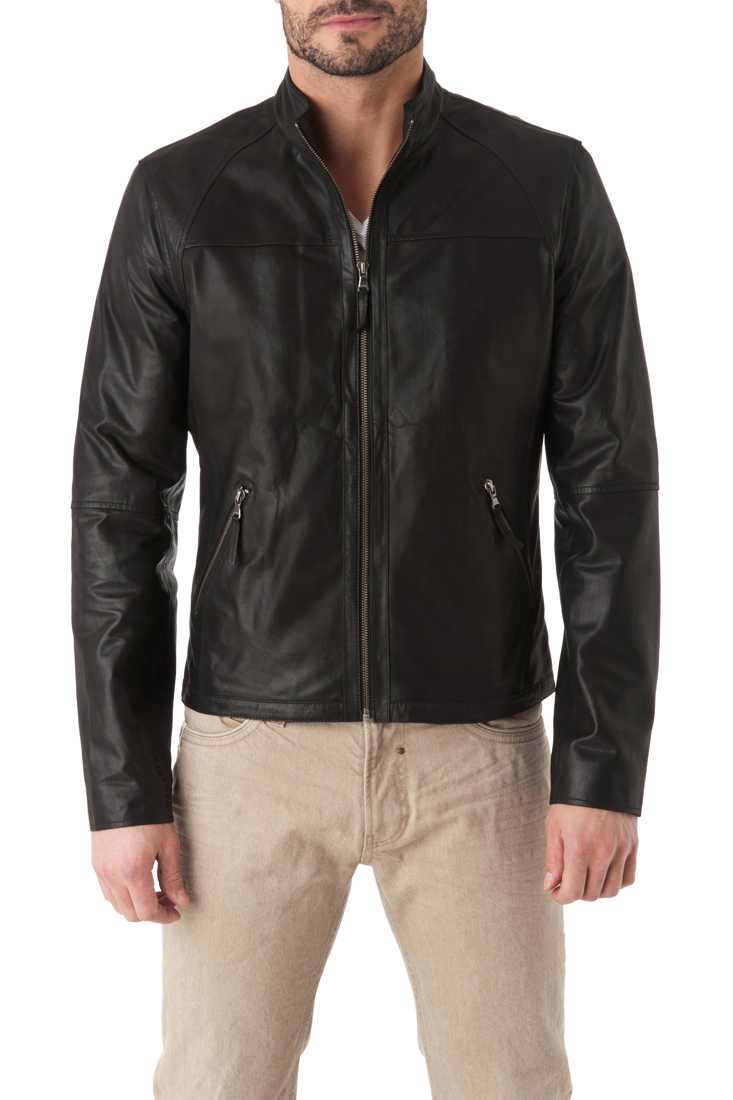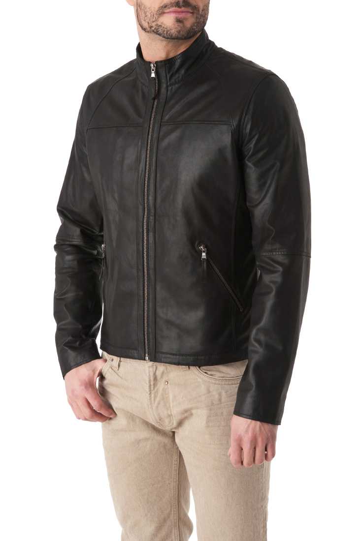 Blouson en cuir de chèvre, fermeture zippée - Col montant, 2 poches bas zippées, Broderie « Redskins » bas de manche - 2 poches intérieures zippées + 1 poche plaquée, Doublure Coton