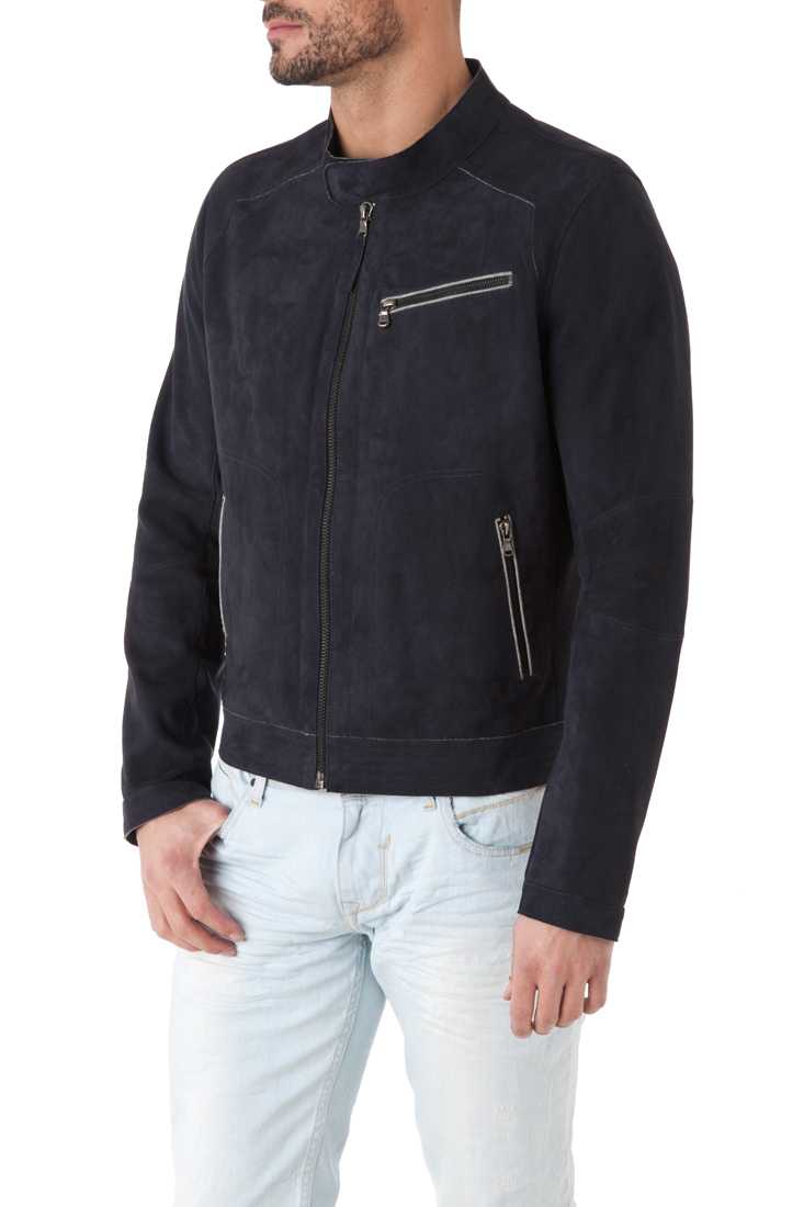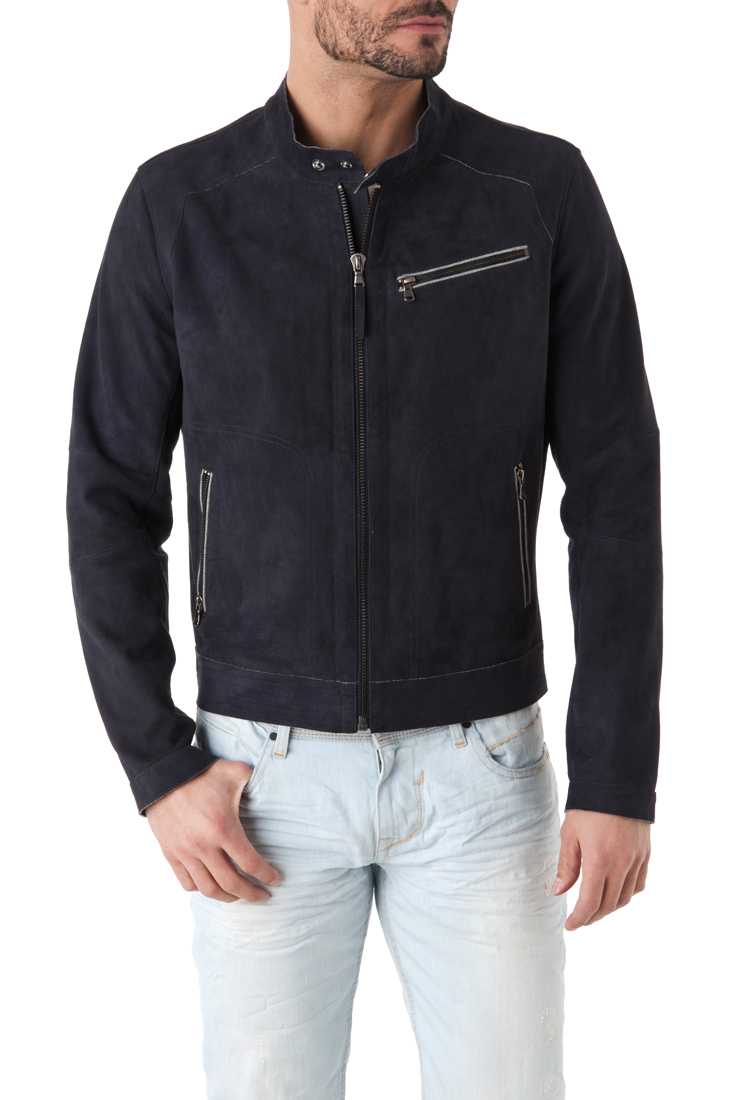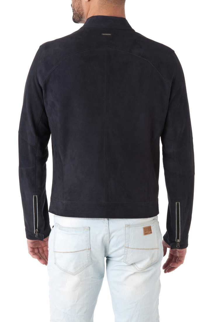 Blouson en cuir de chèvre - Fermeture zippée - Col Moto à pression, 1 poche poitrine + 2 poches bas zippées, Zip bas de manches, Poignets pressions, Métal placket "Redskins" haut dos - 3 poches intérieures + 1 poche zippée, Doublure Jersey