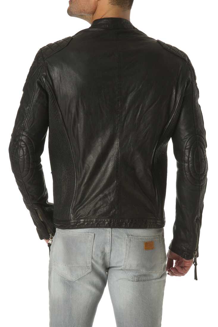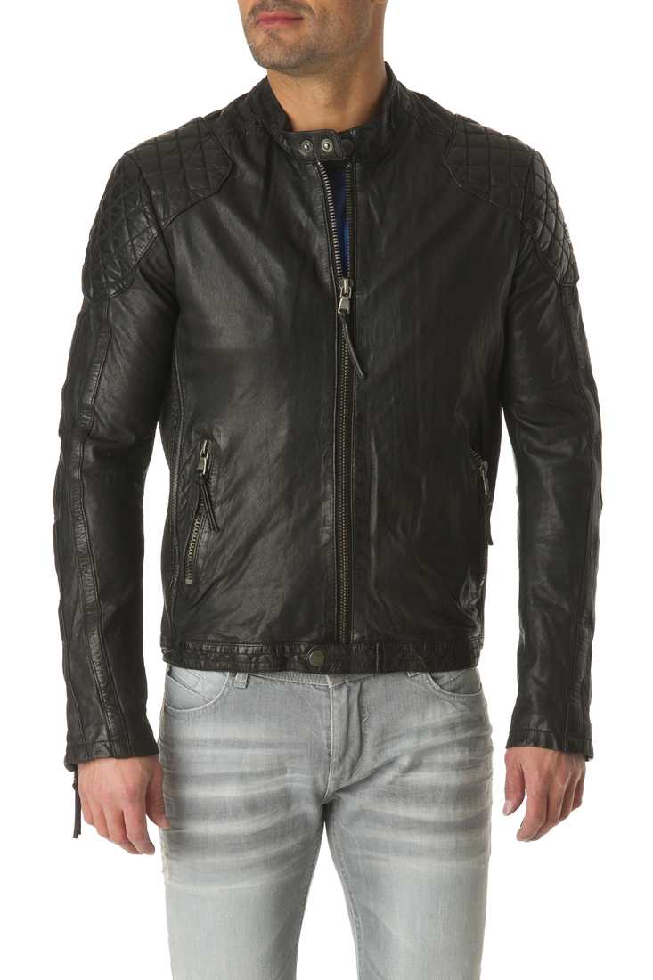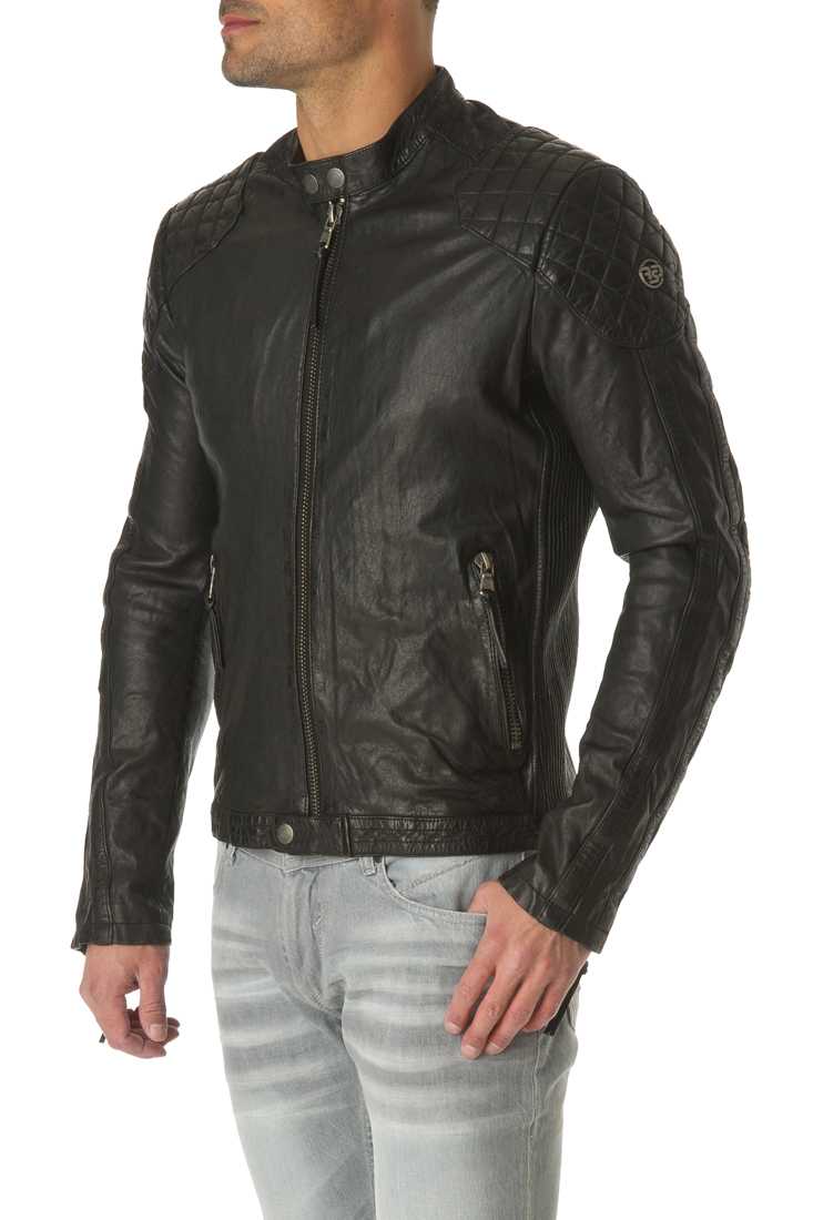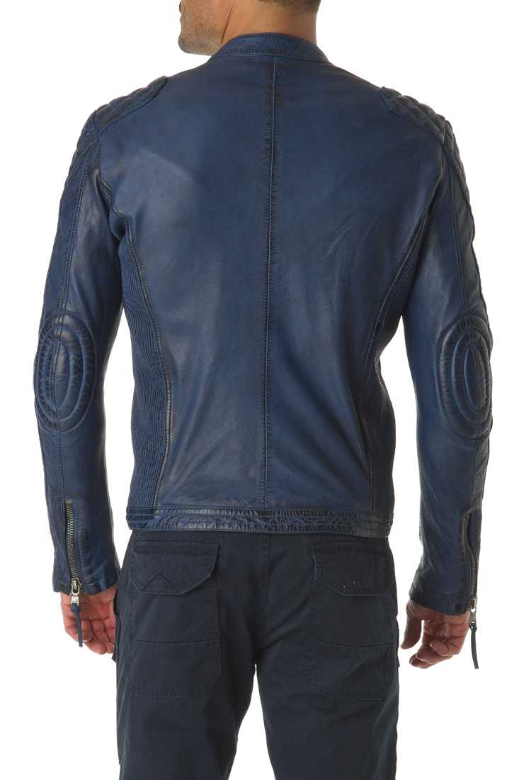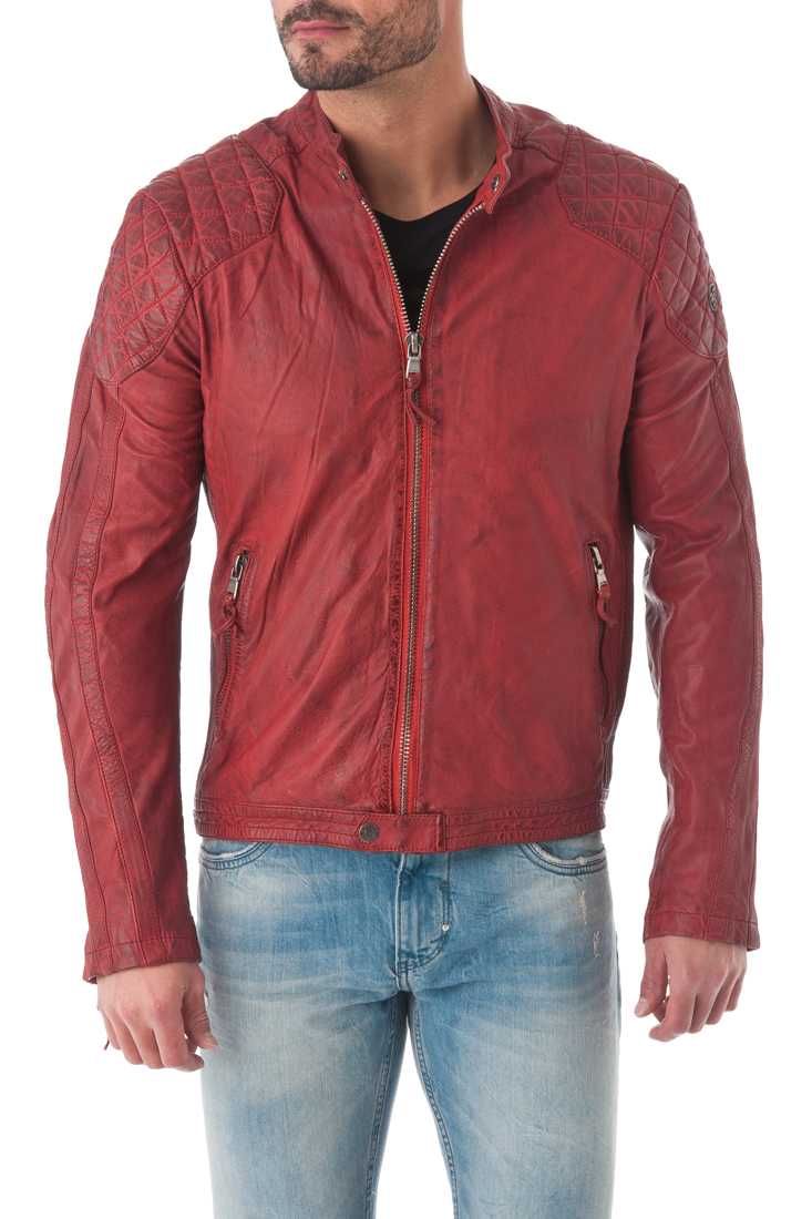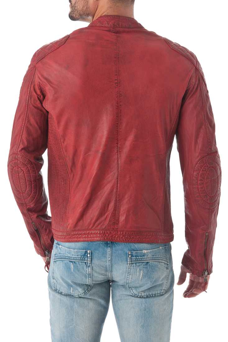 Blouson en cuir de mouton - Fermeture zippée - Col Mao à pression - Zip métal - 2 poches bas + 2 poches bas zippées - Métal placket "Redskins" haut manche gauche - 1 poche plaquée + 1 poche plaquée zippée - Doublure Coton, Polyester.