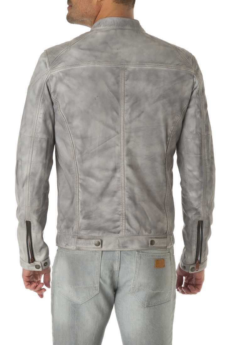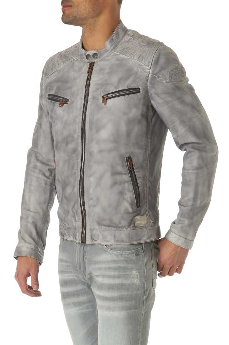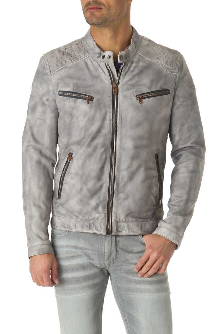 Blouson en cuir de mouton - Fermeture zippée - Col Moto à pression, 2 poches poitrine + 2 poches bas zippées, Zip bas de manches, Poignets pressions, Marquage « Redskins » en relief haut de manche, 2 poches intérieures zippées + 1 poche plaquée, Doublure 100 % Coton