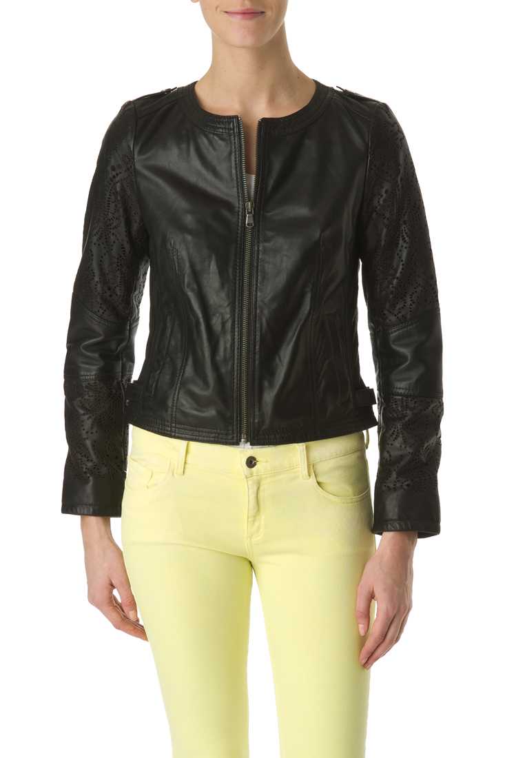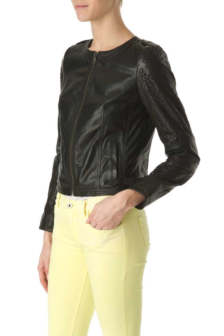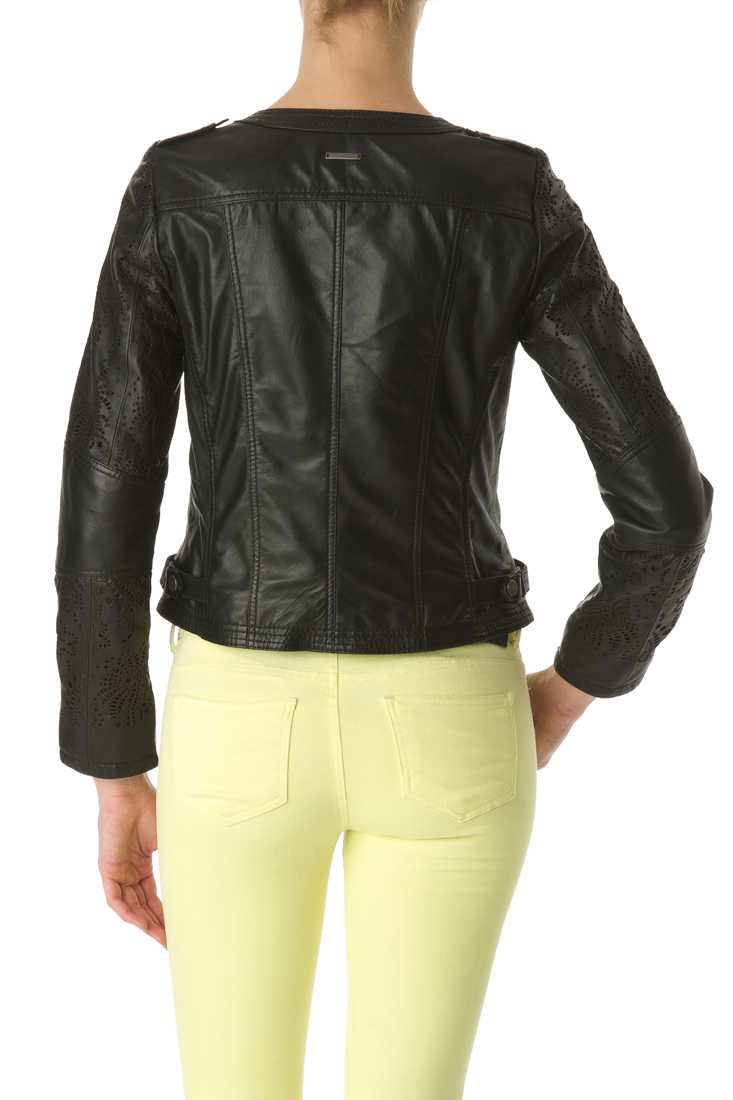 Blouson en cuir de mouton, Sans col - Manches perforées - Fermeture zip milieu devant - Poches bas passepoilées - Pattes épaule et bas de blouson avec pressions - Plaque métal encolure dos - Doublure imprimée "Redskins" en 100 % viscose.