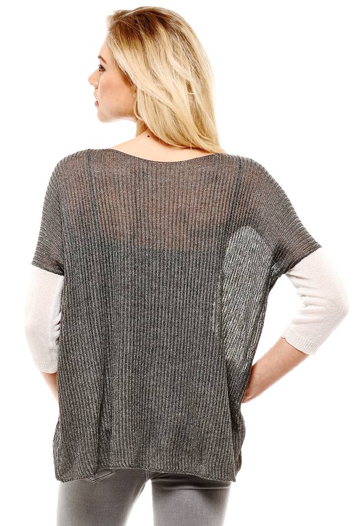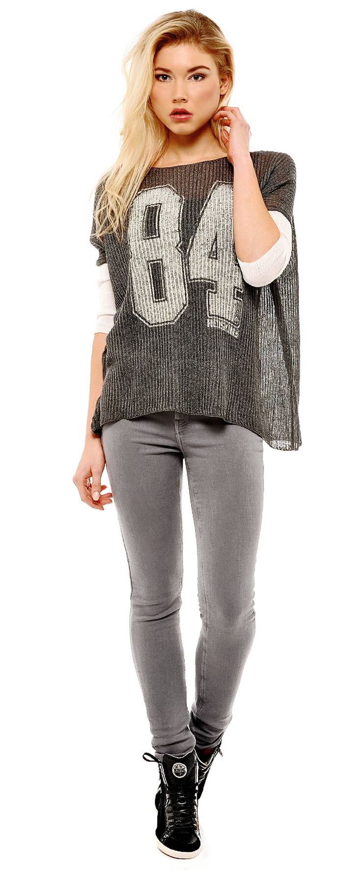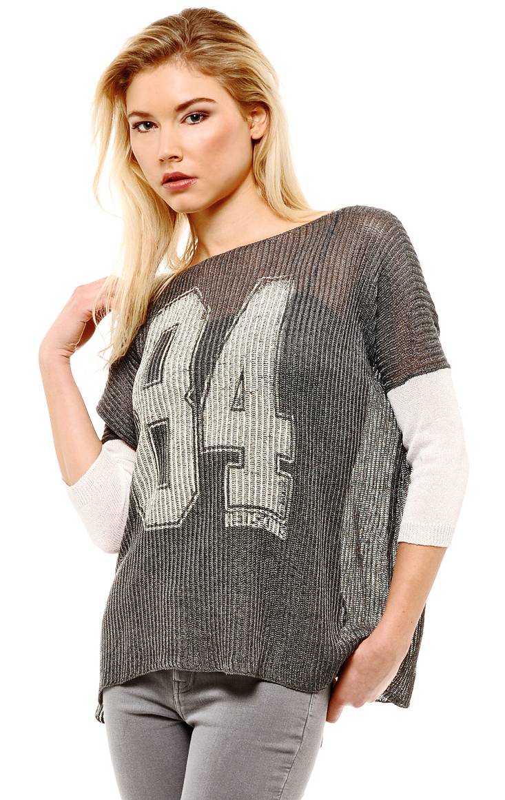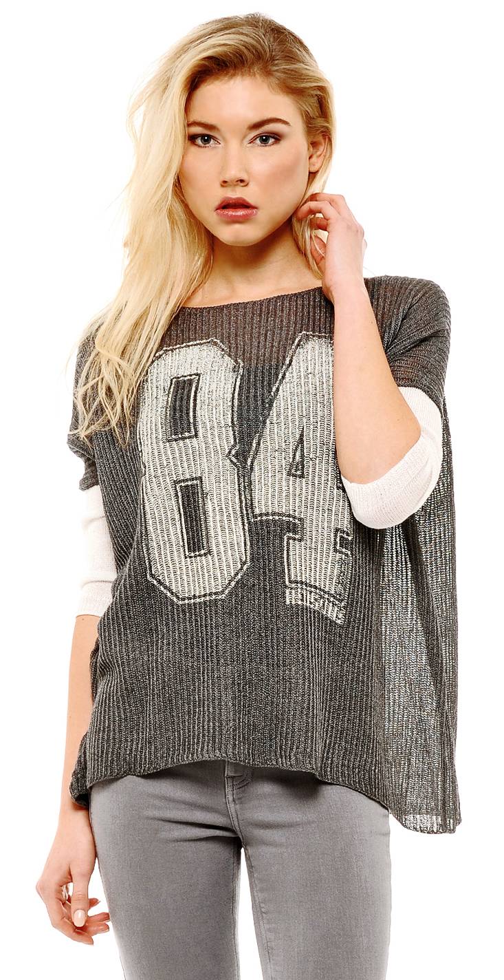 Pull-over en viscose nylon, Manches chauve souris ¾ - Encolure ronde bateau - Print devant "84" contrasté.