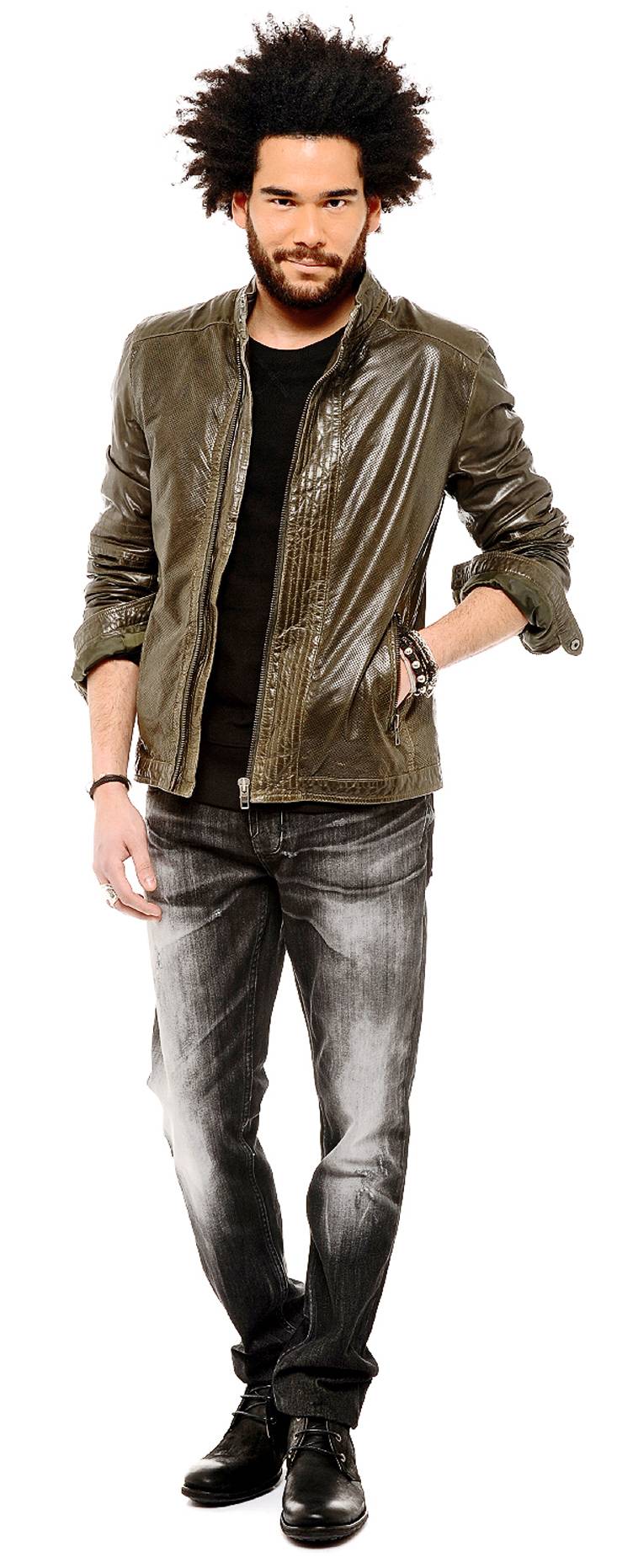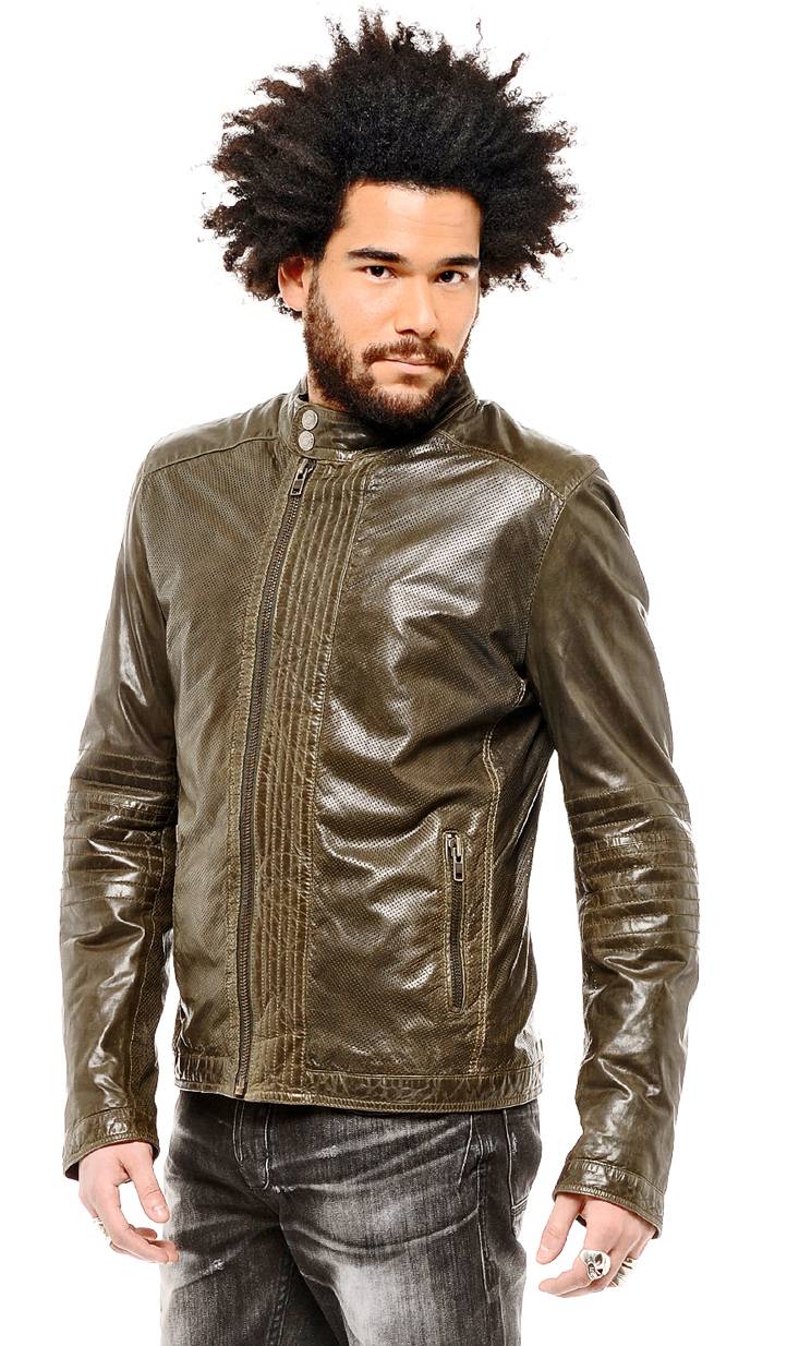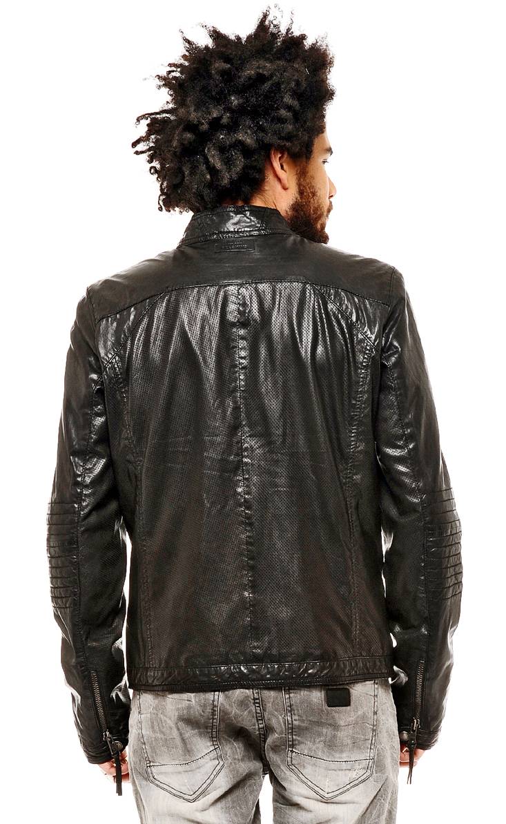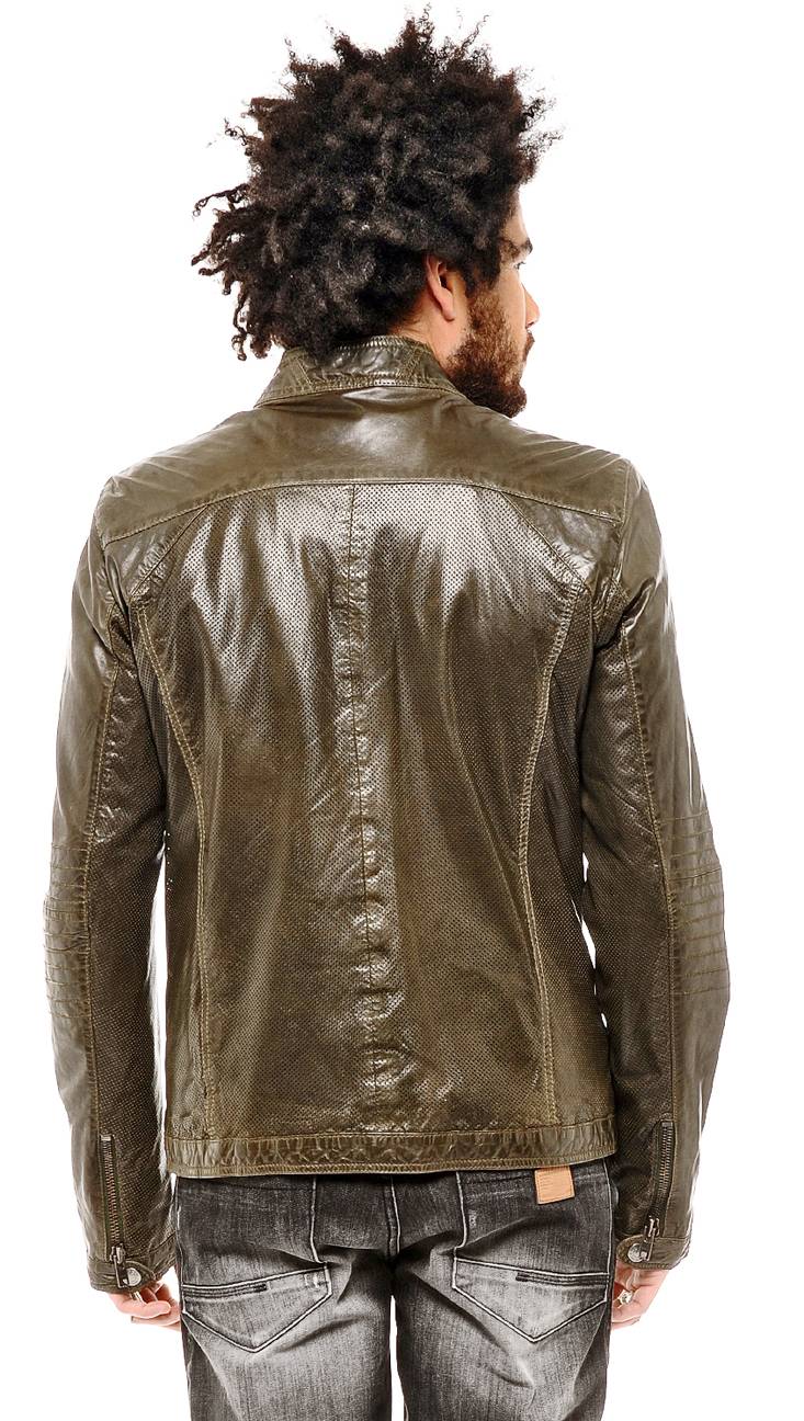 Blouson en cuir de mouton - Fermeture zippée - Col montant à pression - 2 poches bas zippées - Bas de manches zippées et à pression - Badge « Redskins » en haut milieu dos - 2 poches intérieures zippées - Doublure 100 % Coton.