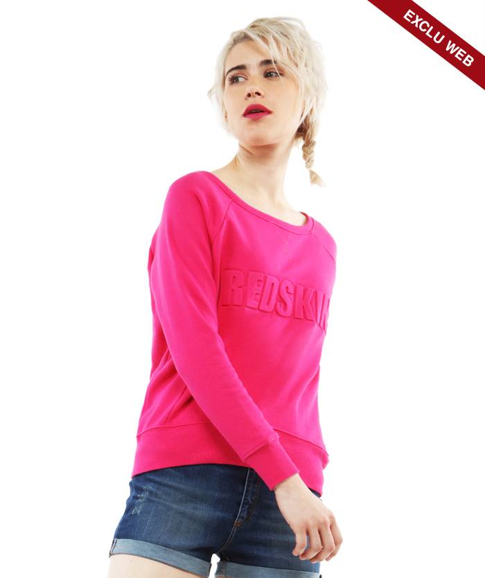 Sweat sport rose avec surimprsion "Redskins" sur le torse, poches zipps latales