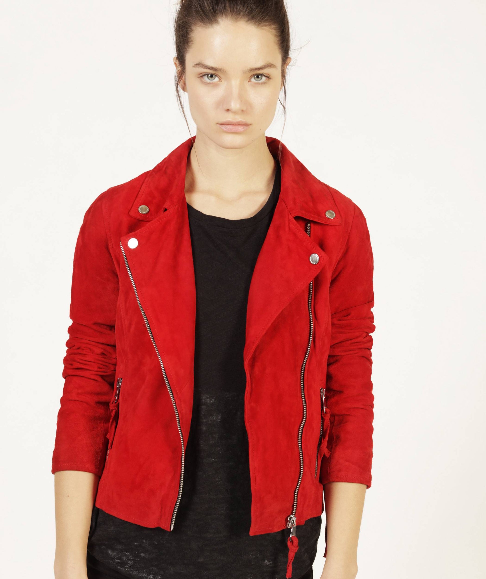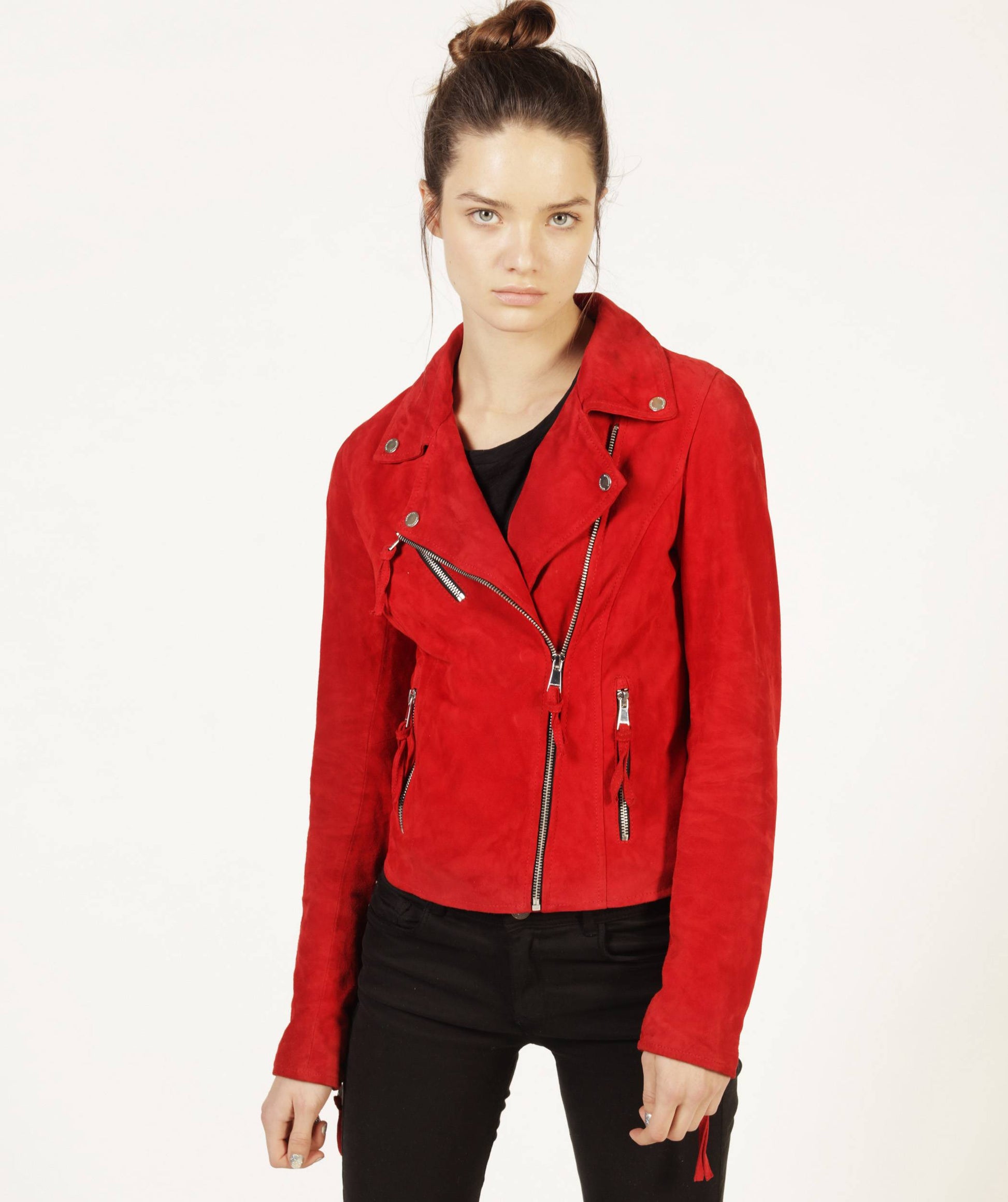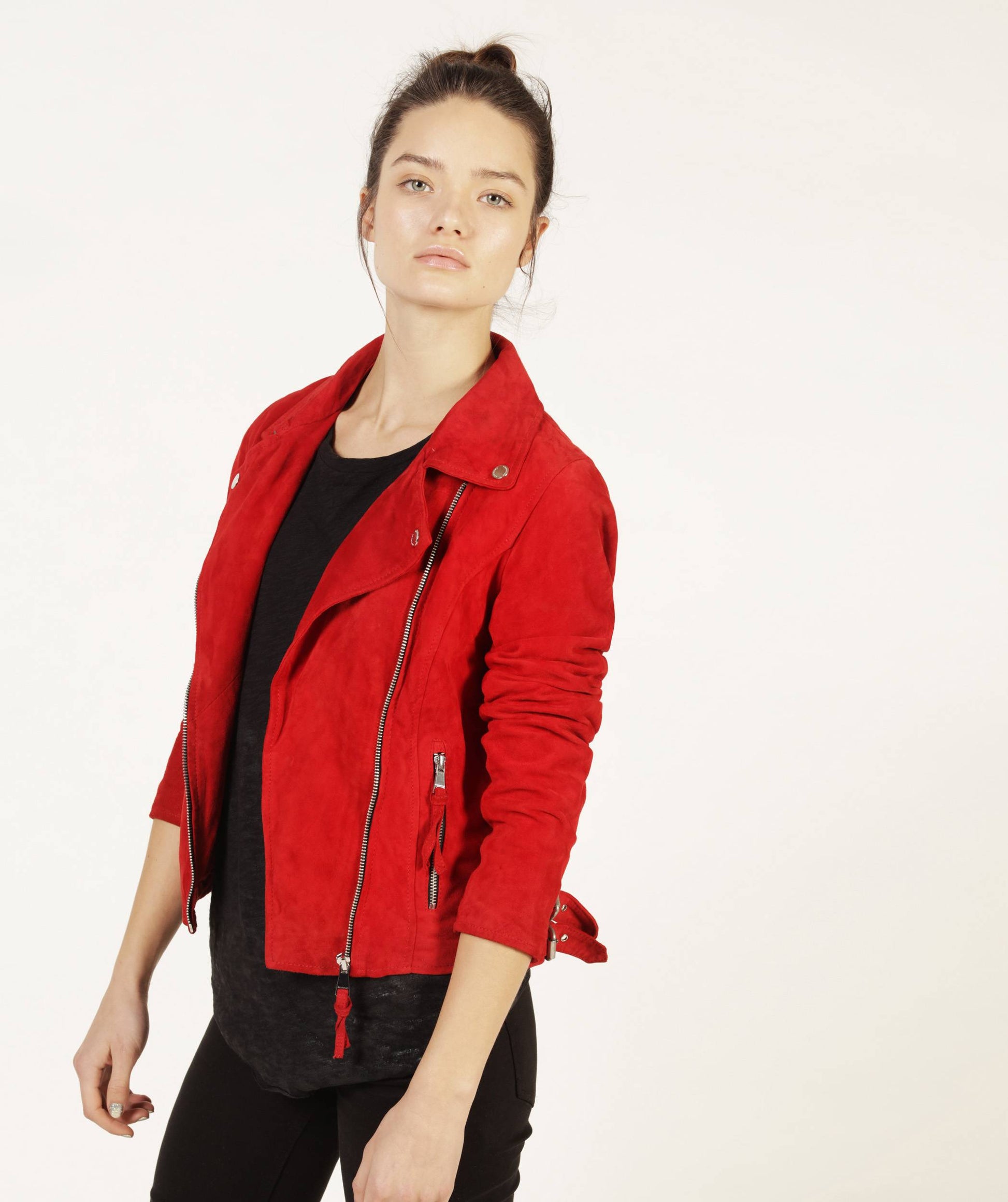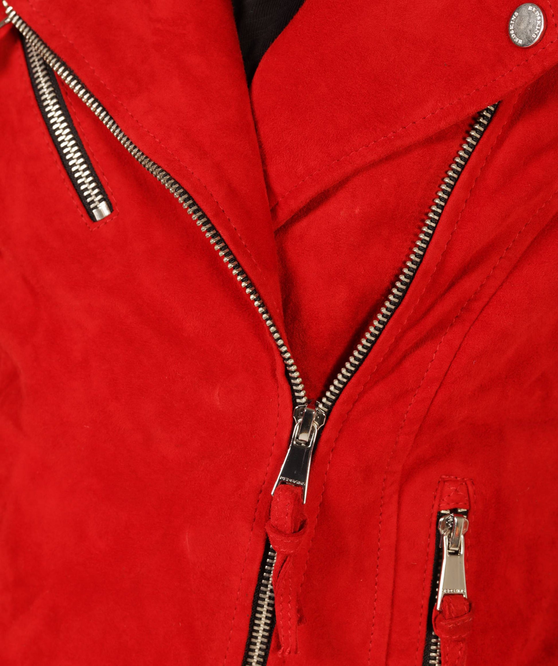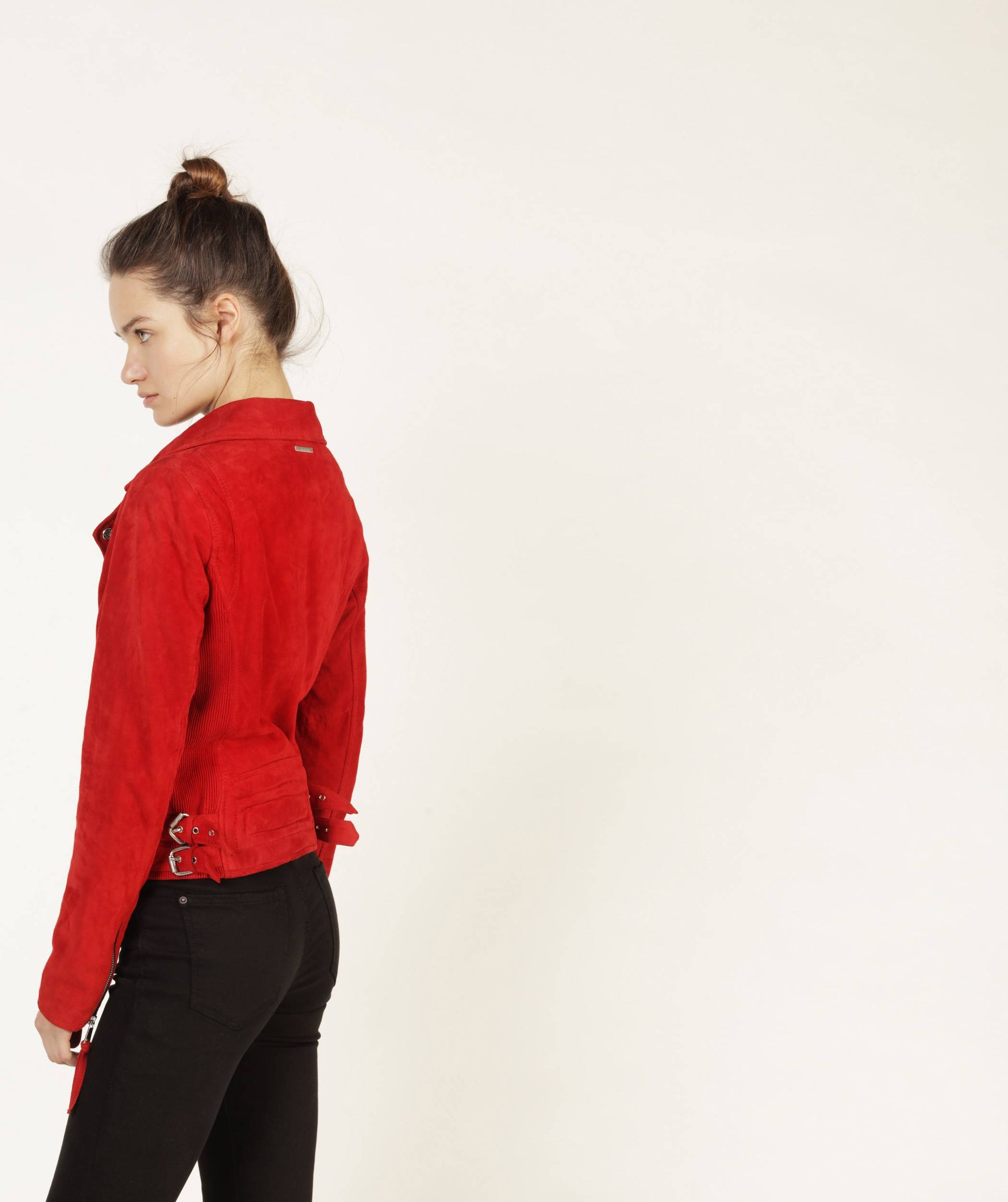 Blouson en cuir de chèvre type motard -Poches poitrine et bas de vetement zippees- zip bas de manches-Pattes de serrage aux cotés-Cotés smockés-Doublure signature redskins 100% polyester-Plaque metal a l'encolure dos