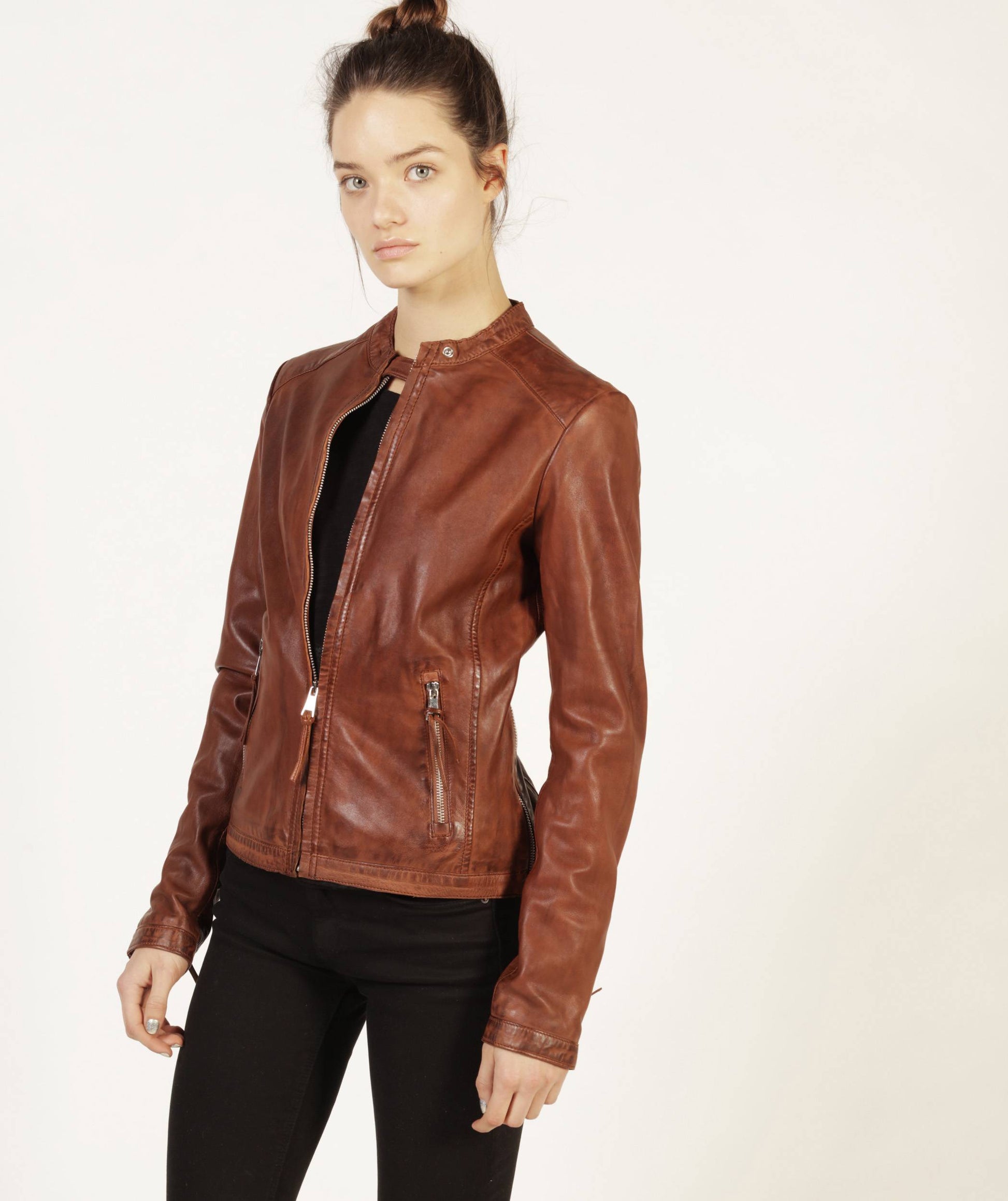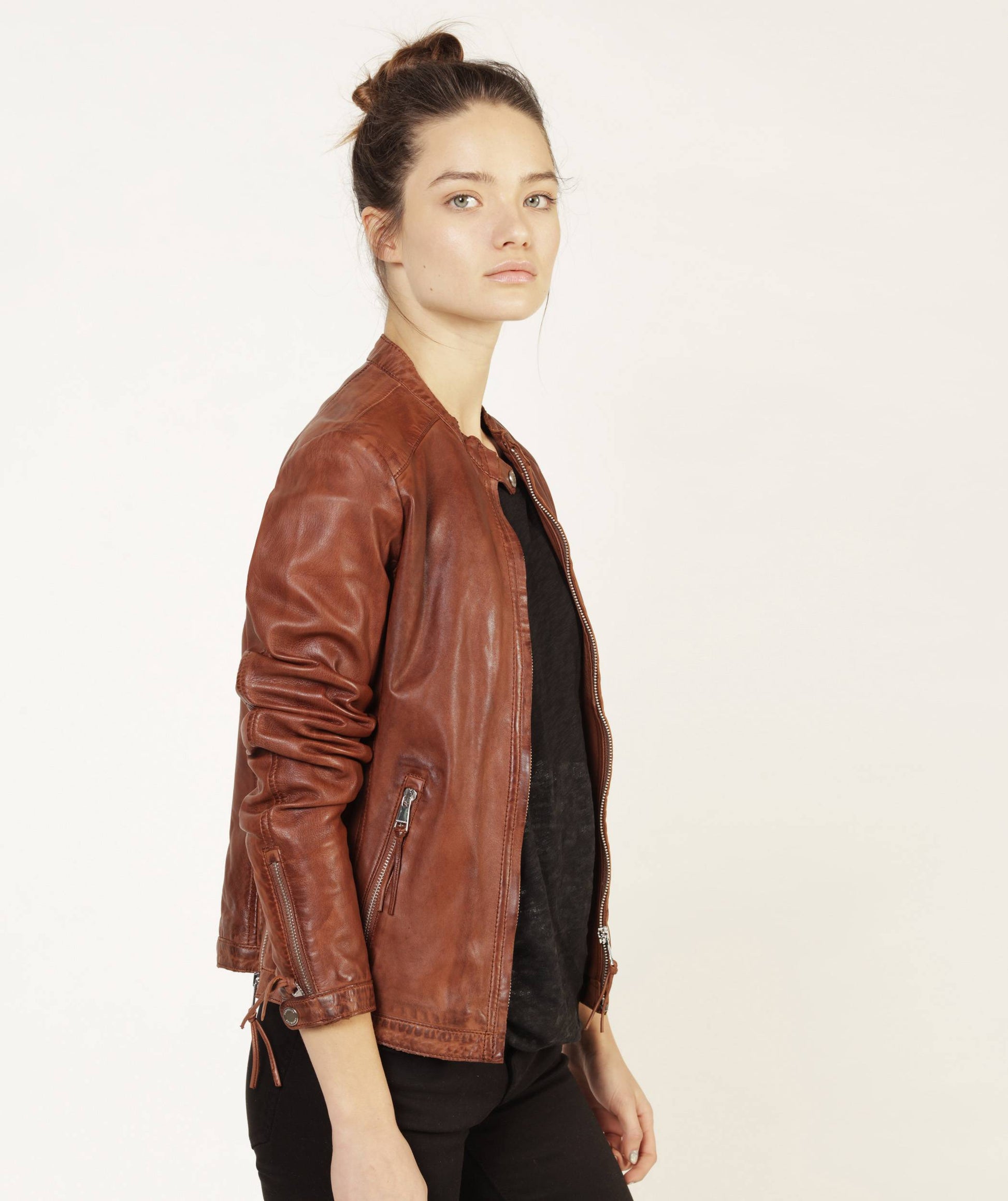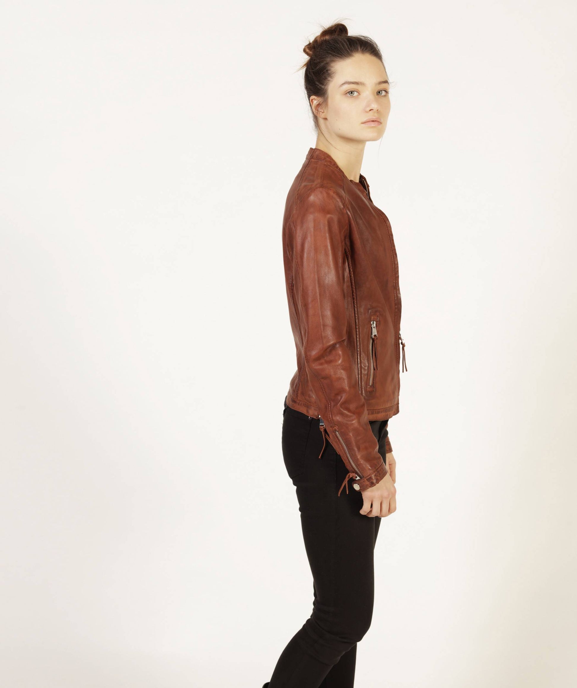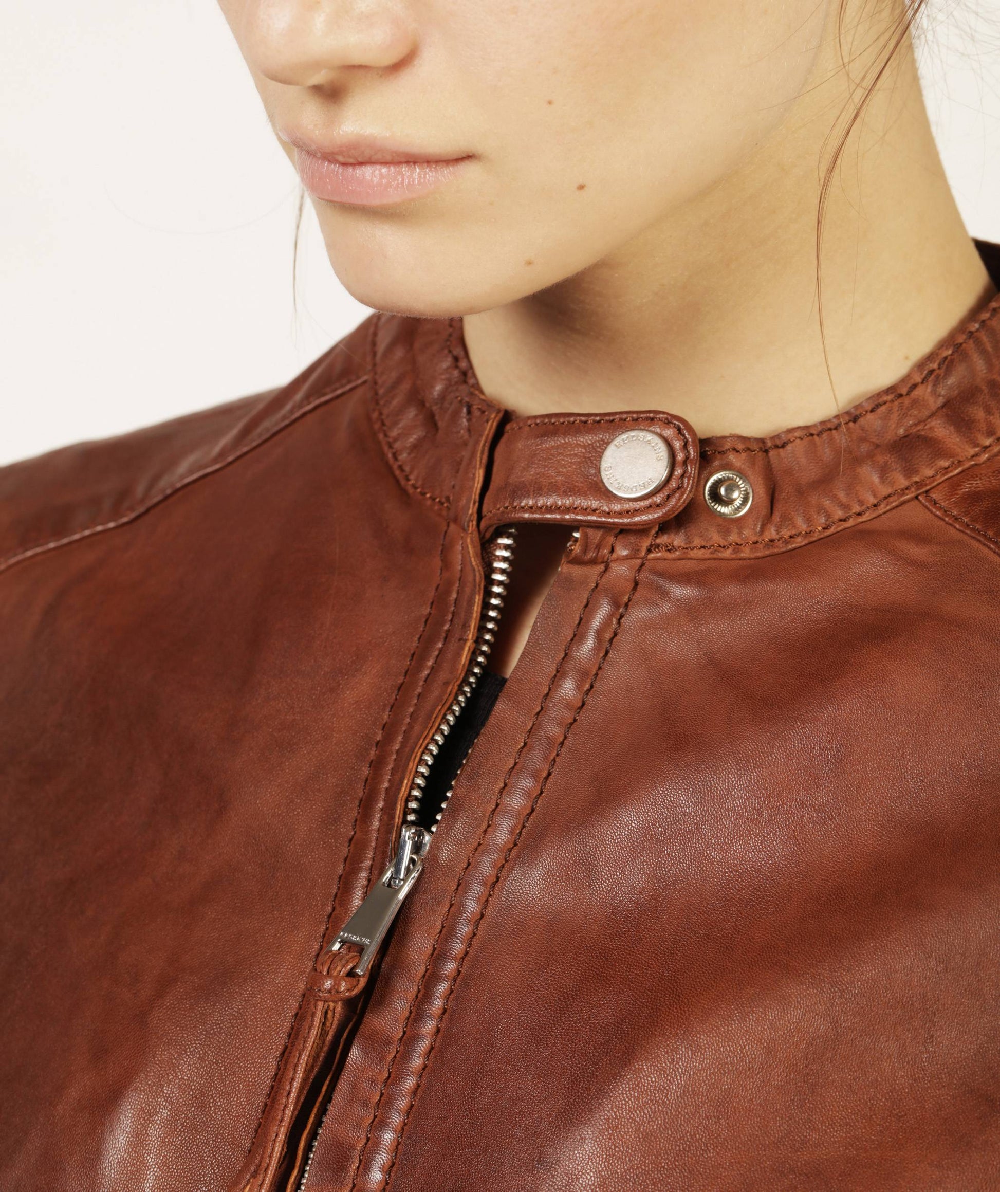Le blouson en cuir très souple NOIDA RIVOLI épouse les épaules avec délicatesse et savoir-faire. Coupé à la façon d’une seconde peau, il porte le col montant, les poches basses et les manches remontées par des finitions zip et pression. La fermeture à glissière en métal apporte une touche de lumière sur cette peau à l’effet brut et authentique.
