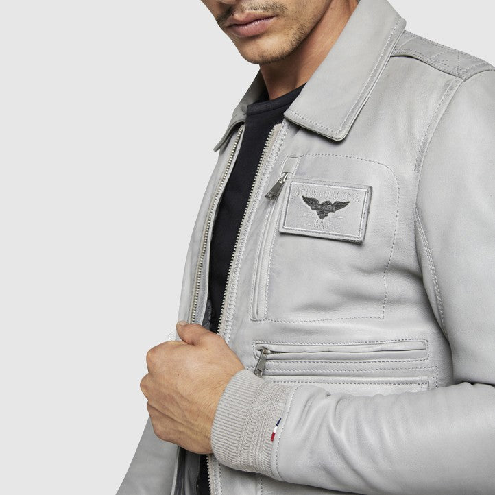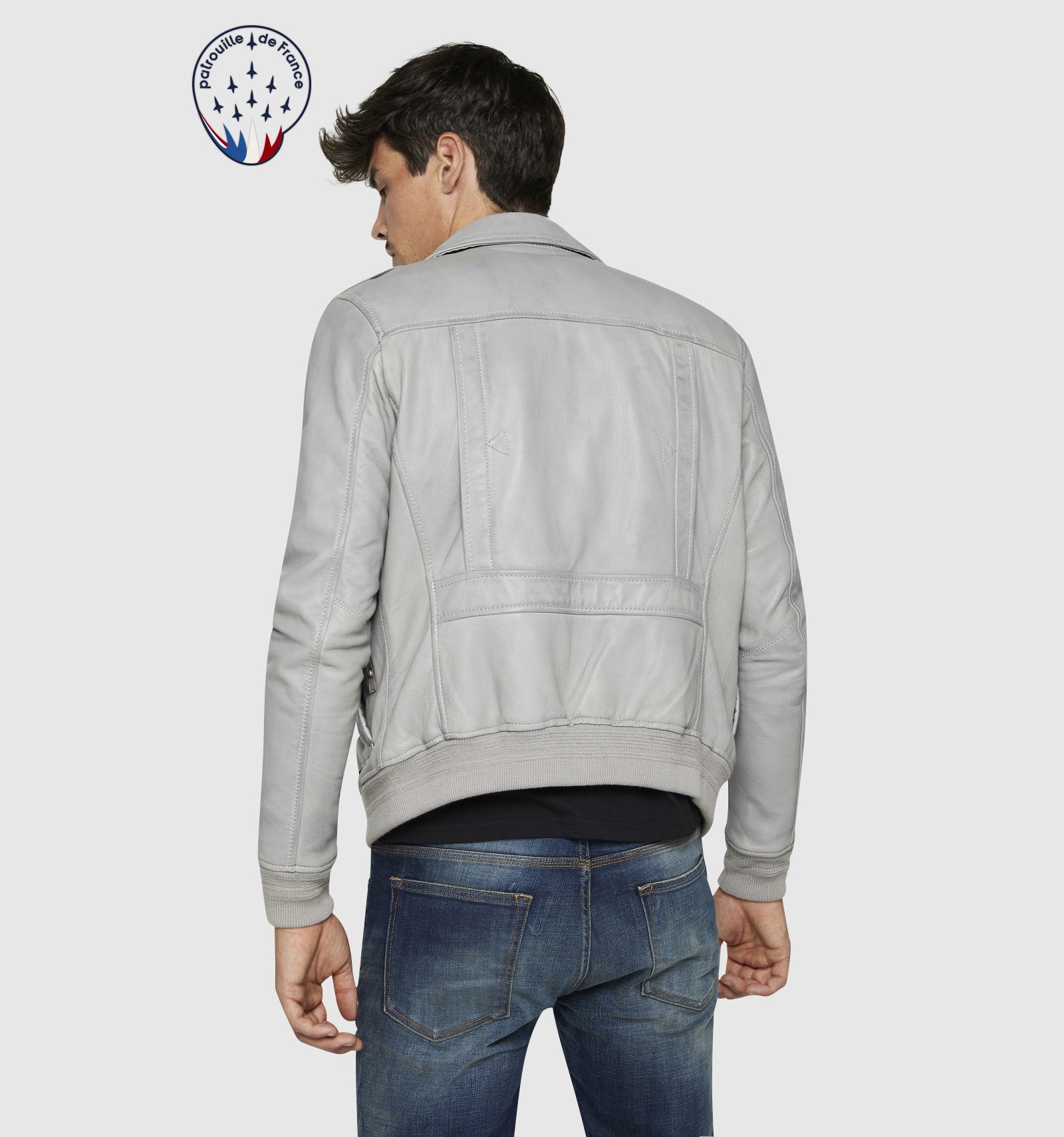 Le blouson en cuir lisse ATLANTIS CASTING s'intègre à la Patrouille de France. Orné de zips métalliques, d'un col chemise, de poches à rabats, de surpiqûres et de finitions en bord-côte, l'écusson brodé à son bras lui rappelle à quelle unité il appartient.