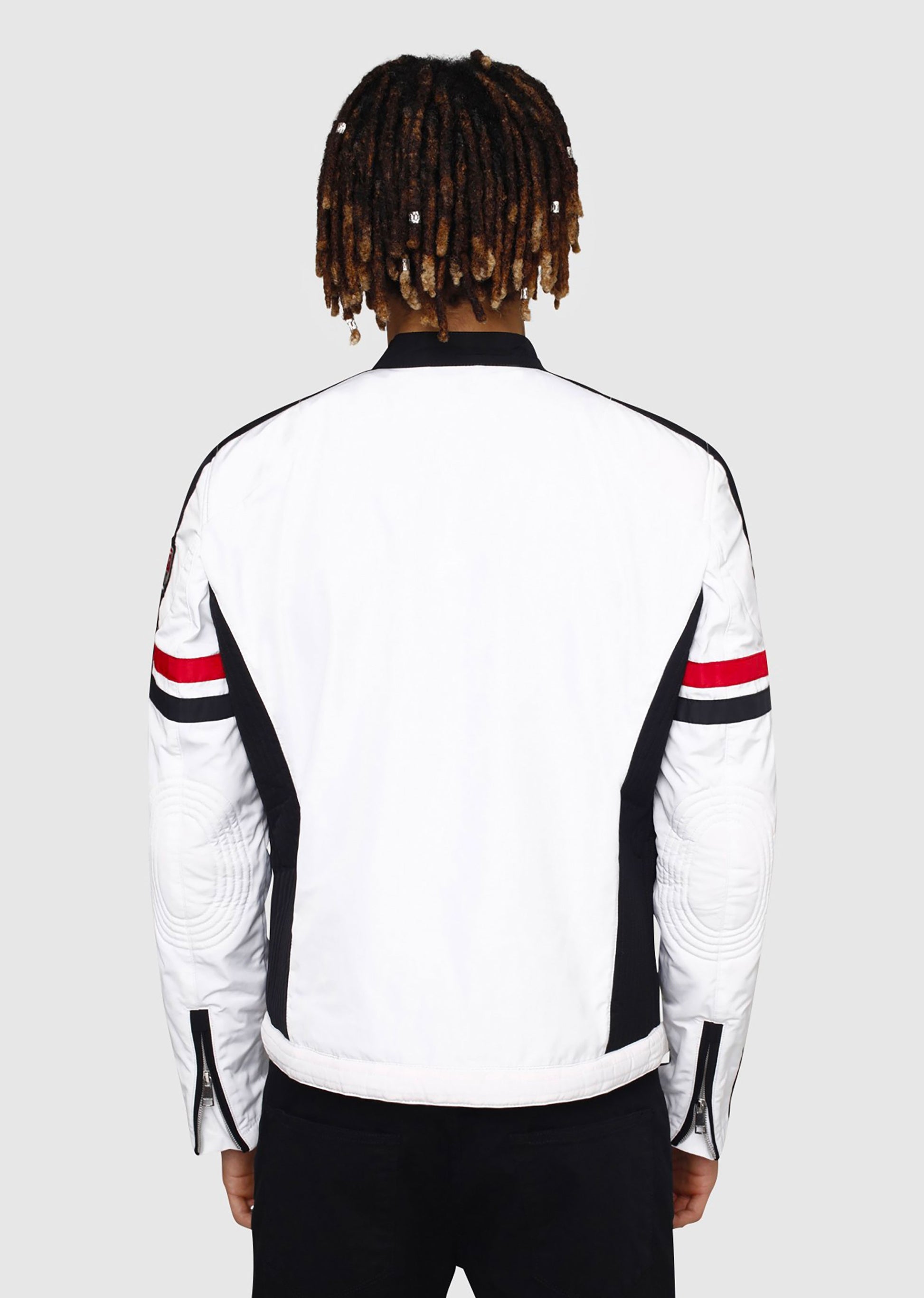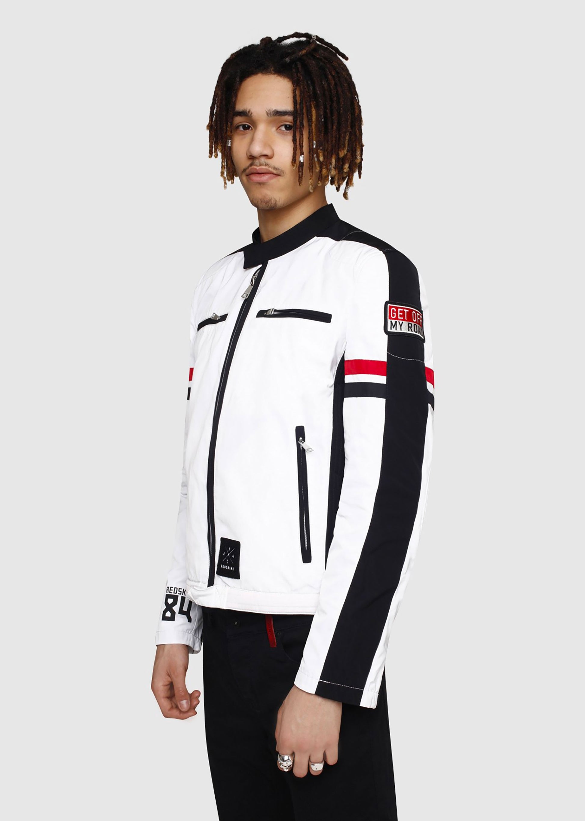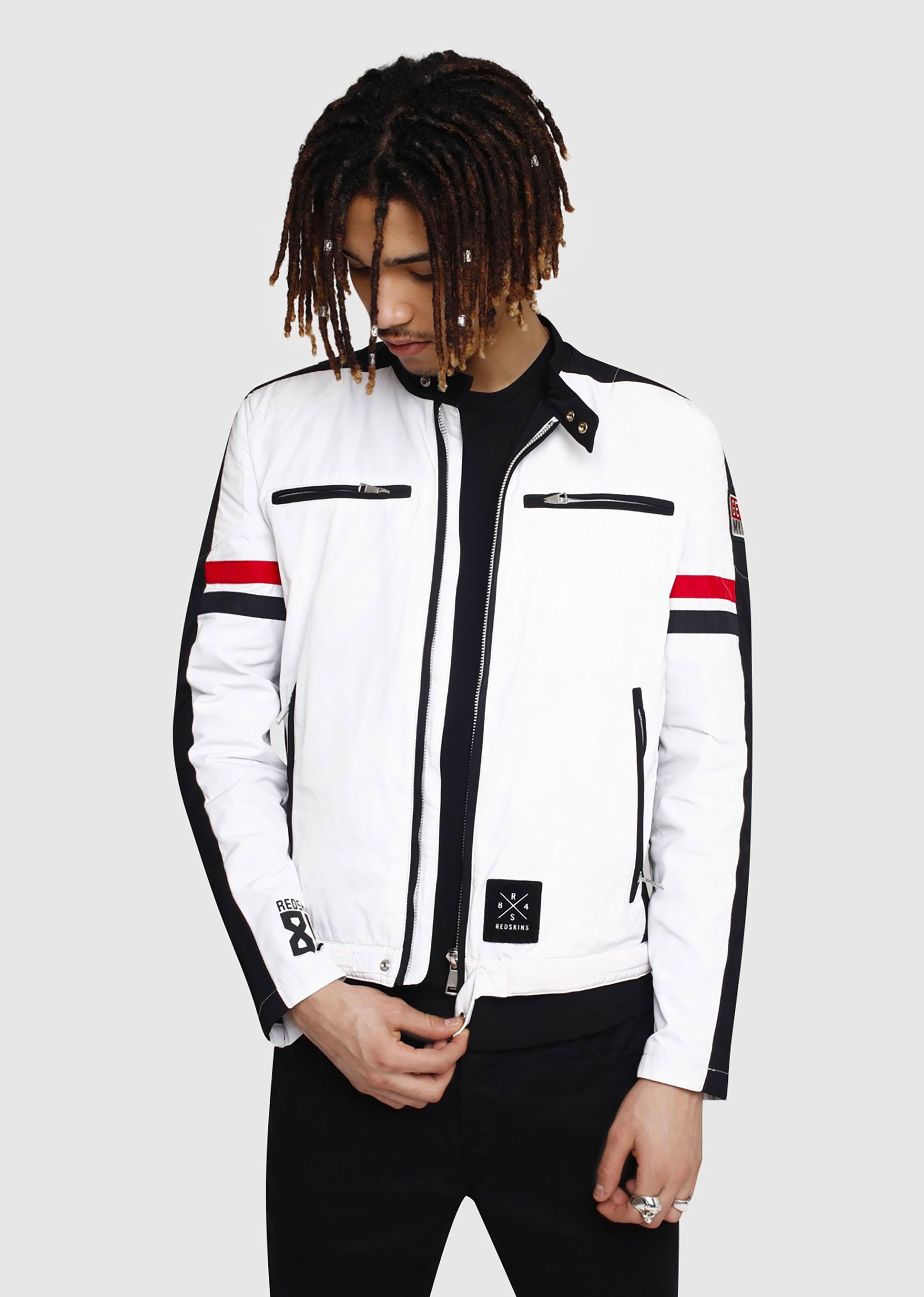 En provenance des circuits, le blouson MANNING DRAX est une pièce aux nombreux détails: des écussons brodés, des bandes de cuir et , un col Mao à pression et ses poches zippées. A l'intérieur, la signature REDSKINS apparait comme le nom de son écurie.