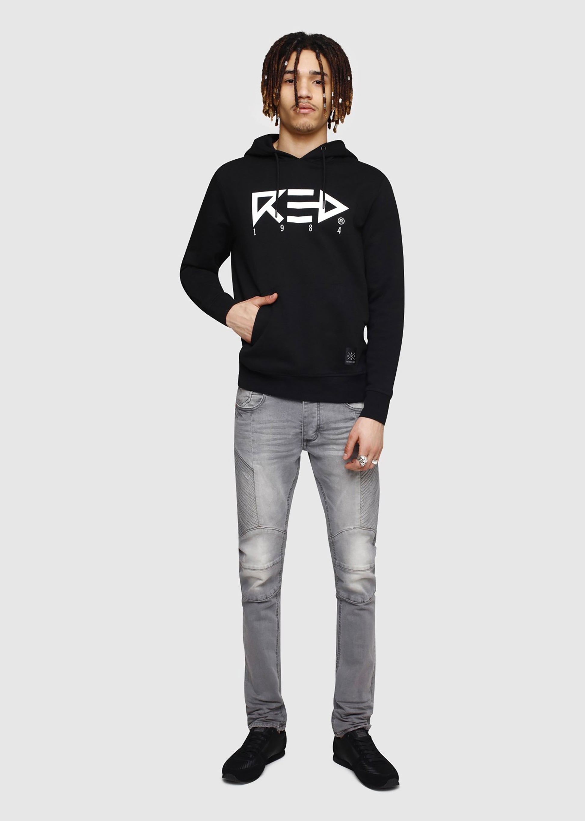 Au style streetwear mais à l'allure distinguée, le sweat à capuche en molleton RED84 SPINNER se veut confortable et apprêté: cordon de serrage, bord-côte aux poignets et à la taille, poche sur le devant et une impression graphique à la poitrine et sur la capuche.