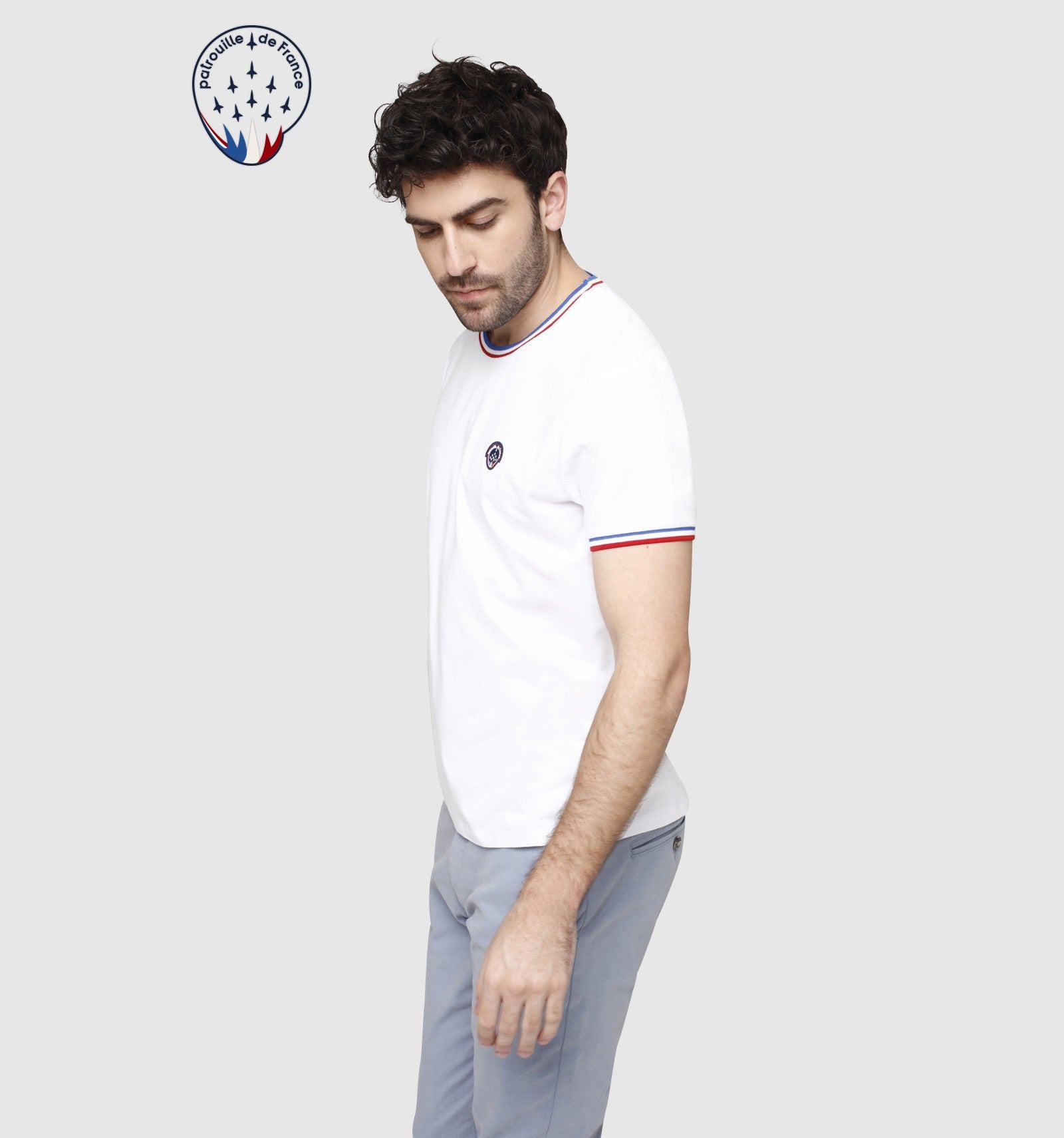 L'inconditionnel t-shirt en coton SOLO CALDER arbore le drapeau tricolore de la Patrouille de France avec style et audace. Sa coupe est près du corps, et les finitions au col et aux manches rappellent l'unité d'élite dont l'écusson est brodé à la poitrine.