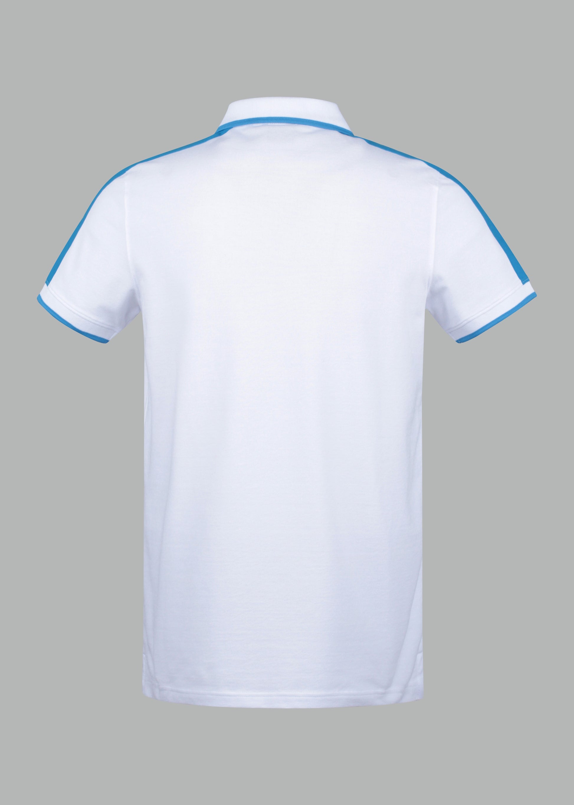 Polo BHEME MEW, en piqué stretch, col classique avec fermeture 3 boutons, contraste sur les bords du col, les manches courtes et les épaules. Logo sur torse en haut à gauche.
