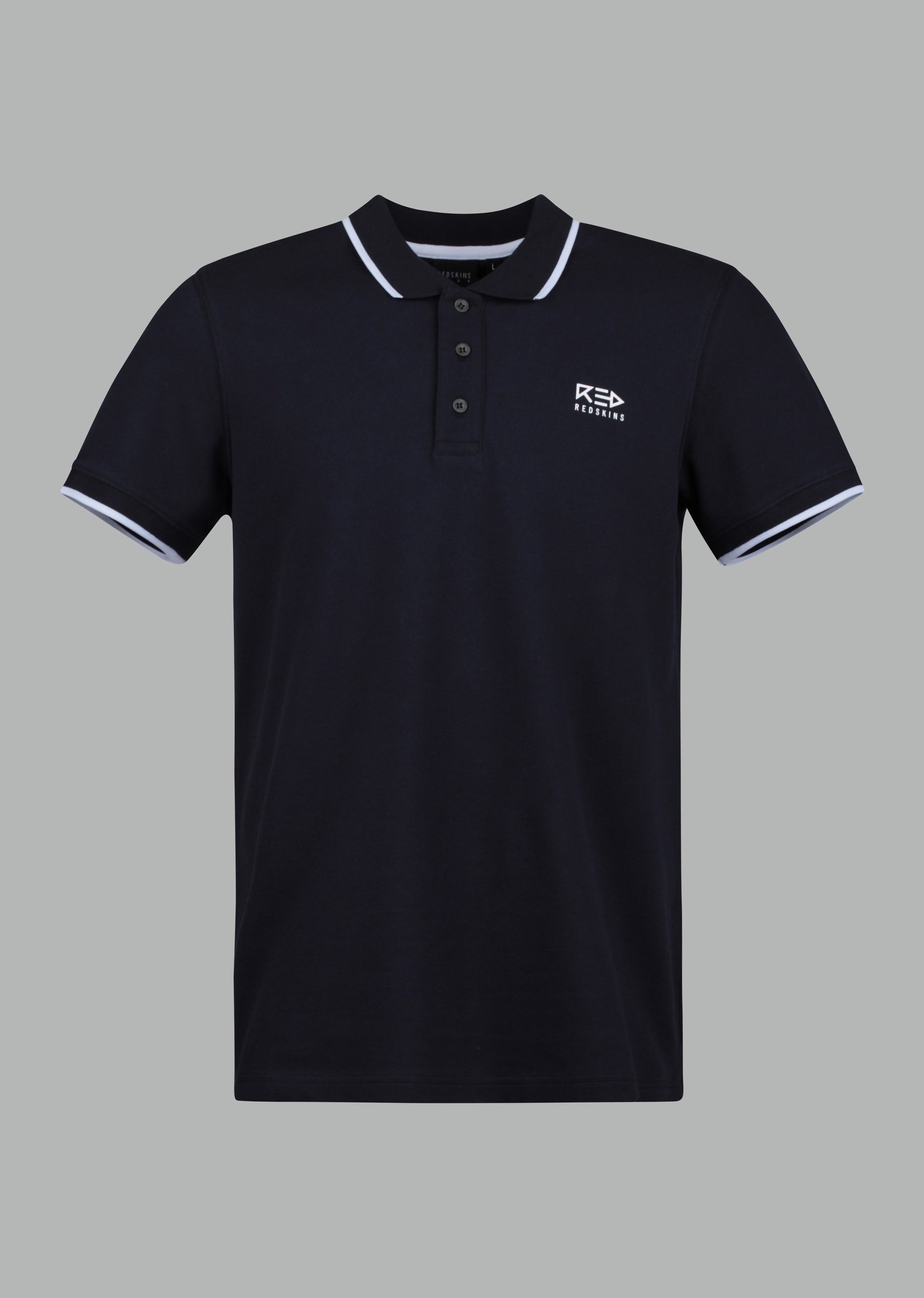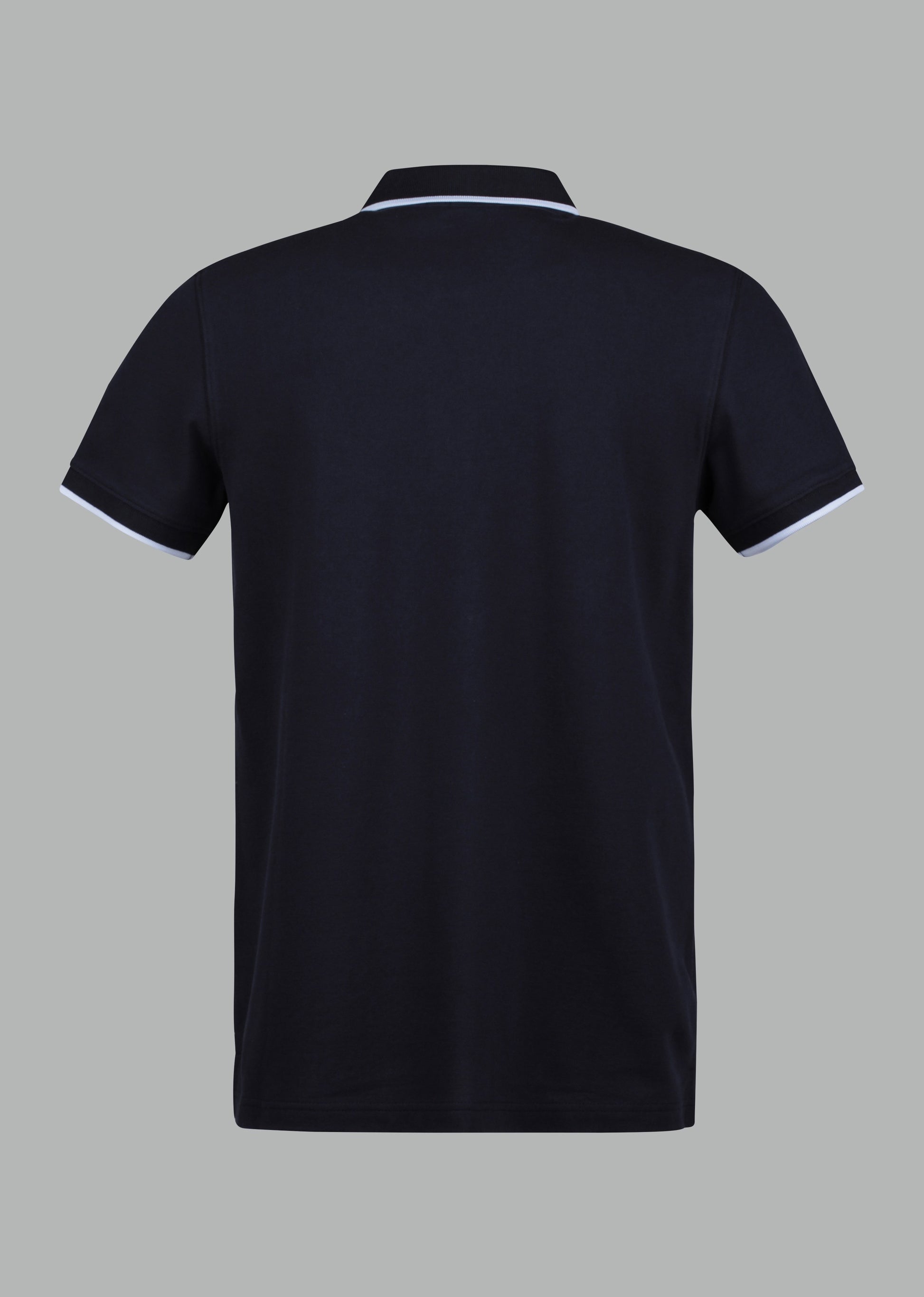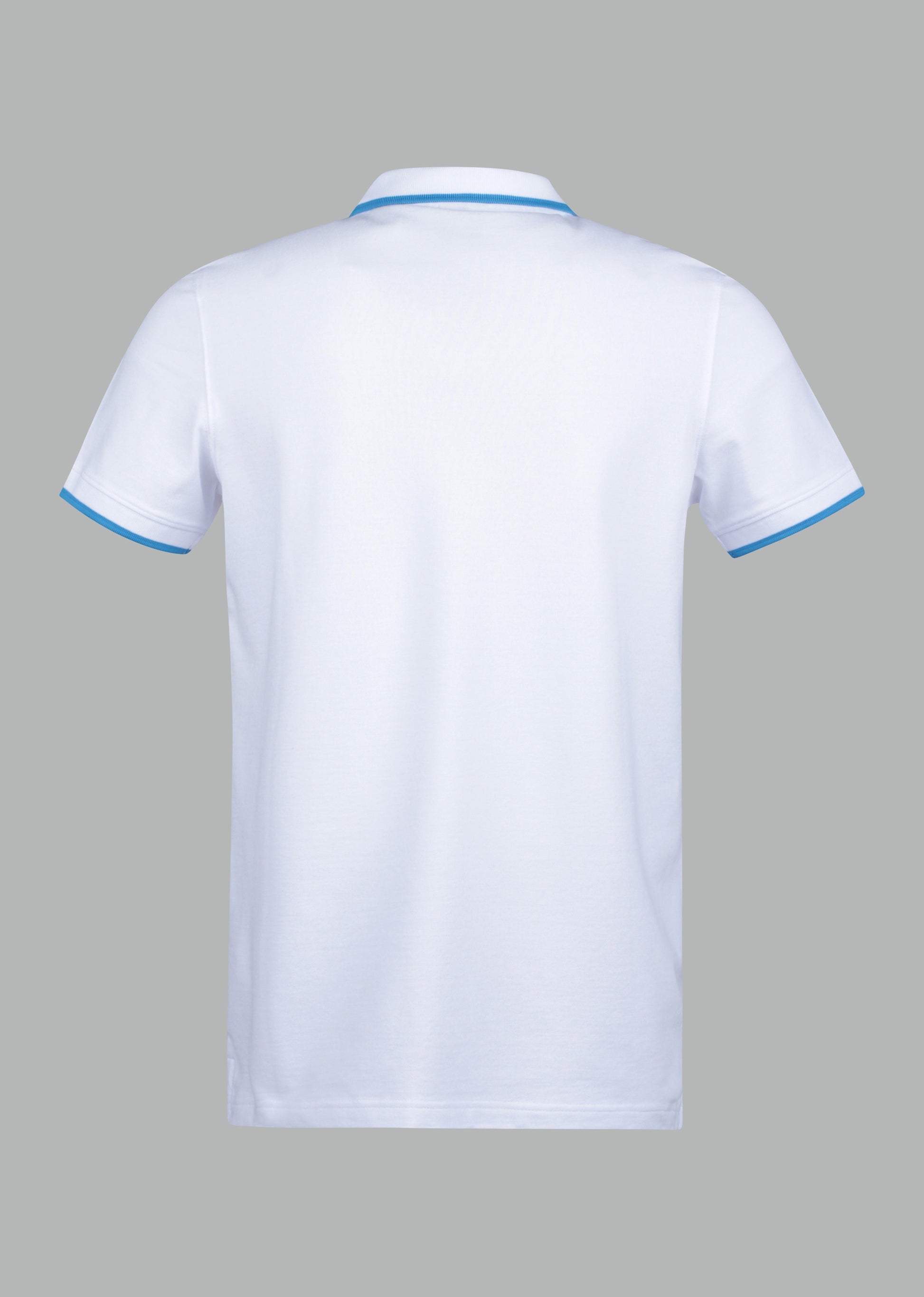 Polo CORTEX 2 MEW, col classique, fermeture à 3 boutons, bandes contrastantes sur les manches courtes et le col, logo sur le torse à droite.