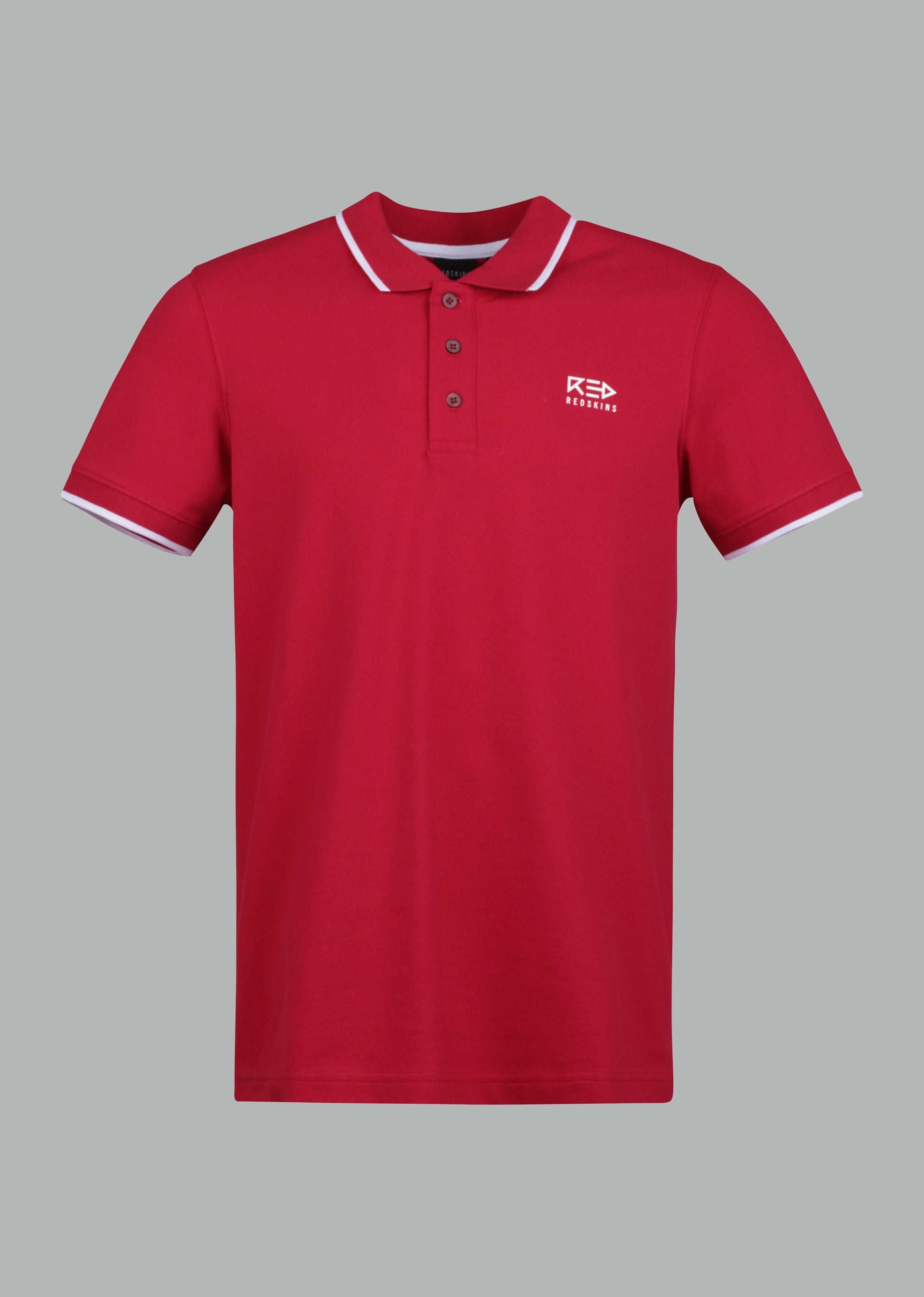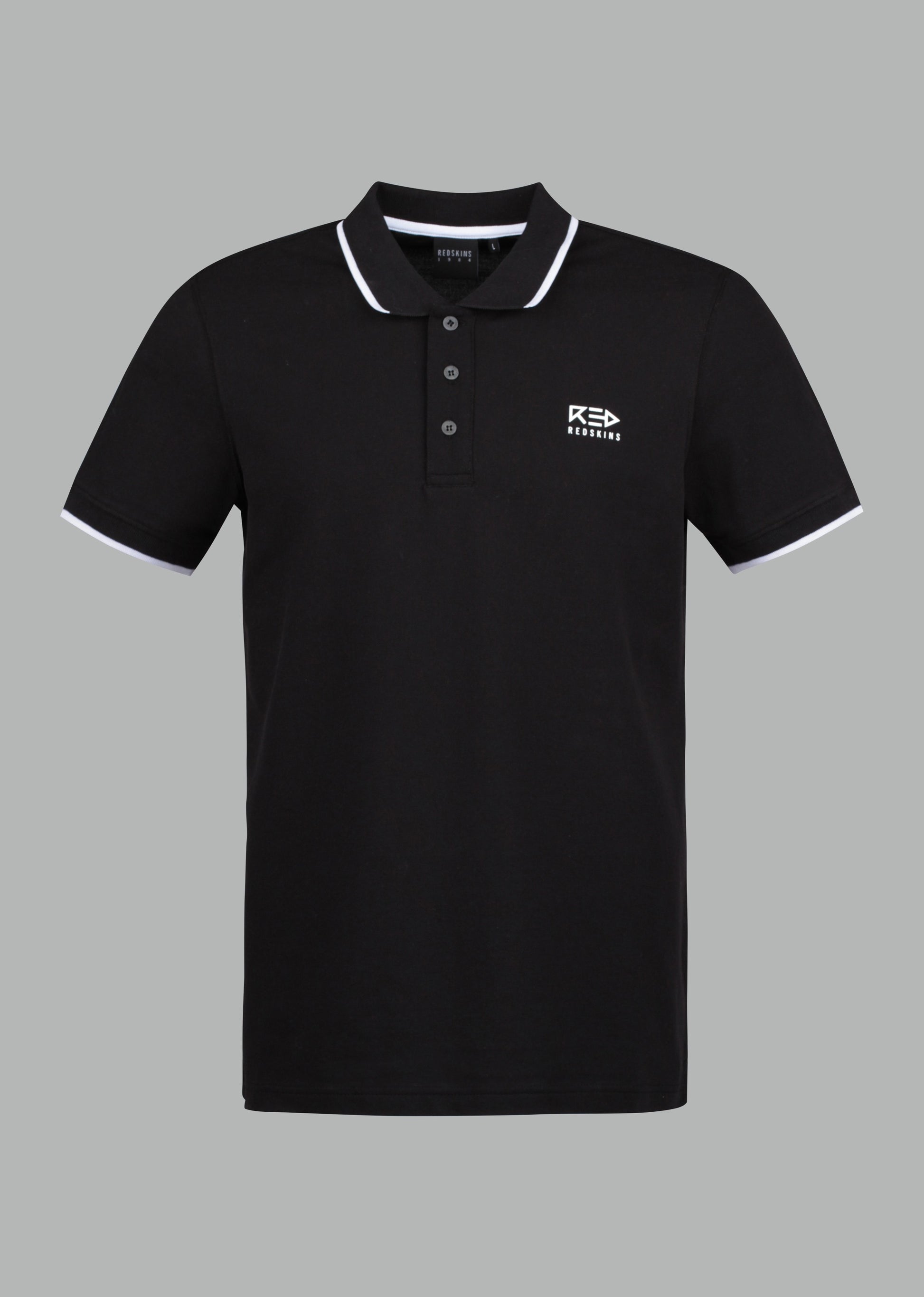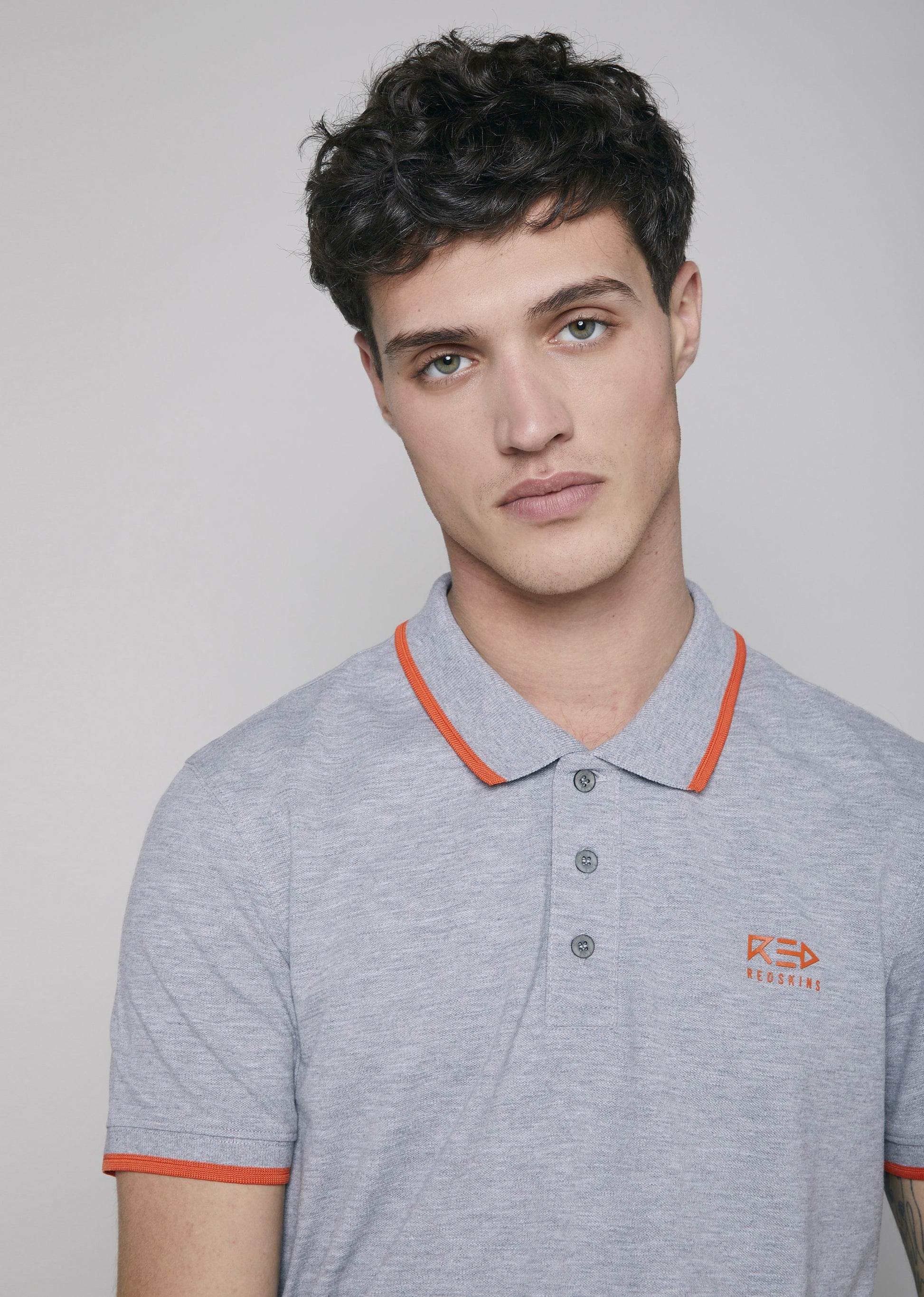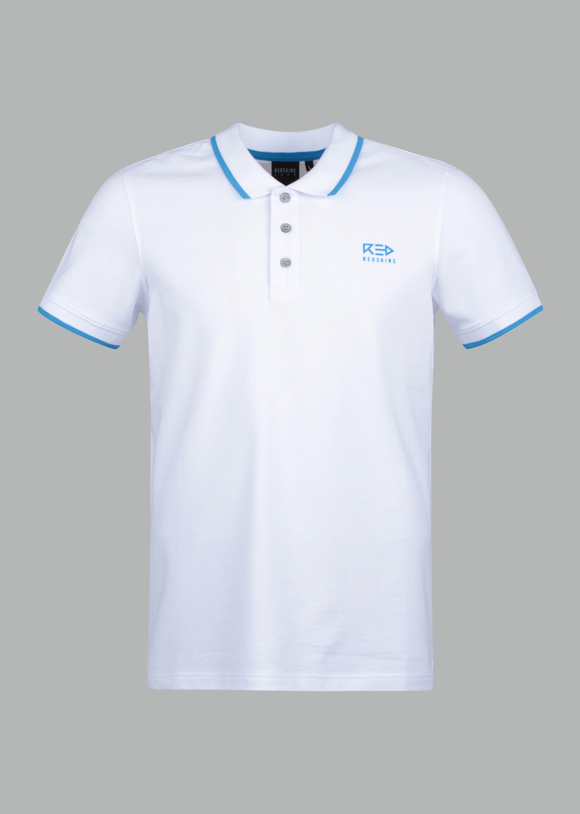 Polo CORTEX 2 MEW, col classique, fermeture à 3 boutons, bandes contrastantes sur les manches courtes et le col, logo sur le torse à droite.
