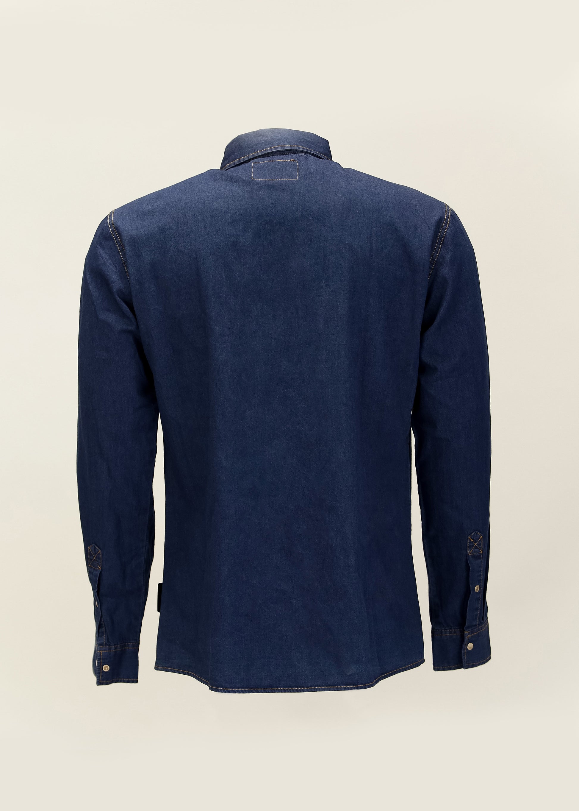 Chemise en coton EXECUTE HALF,col classique, manches langues, couleur DENIM, fermeture à pressions.Composition : 100 % Coton