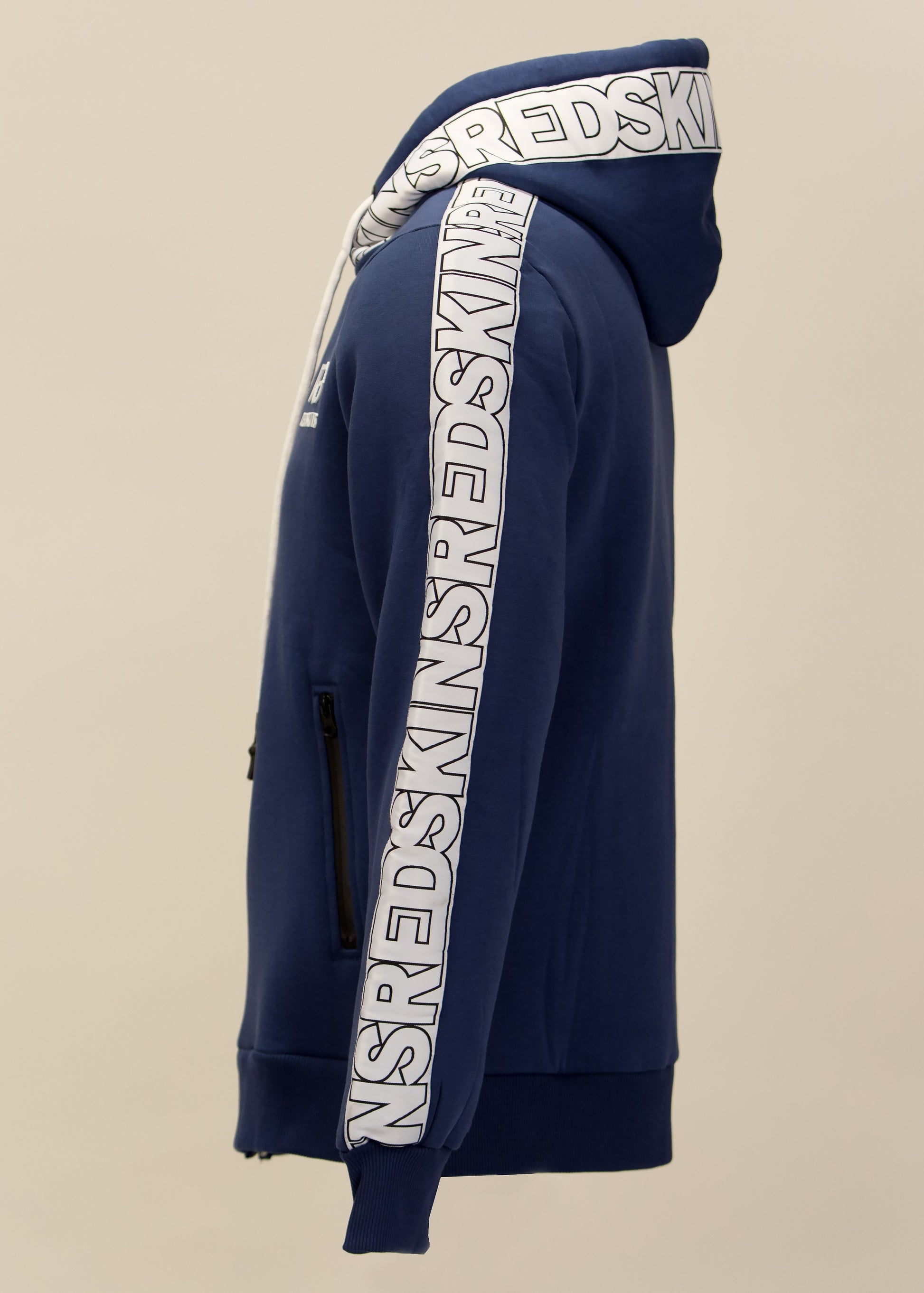 Gilet FLEXY POSTER à capuche avec lien de serrage, 2 poches zippées, logo sur la poitrine côté gauche, inscriptions REDSKINS traversant les manches en passant par la capuche. Composition : 65 % Coton - 35 % Polyester