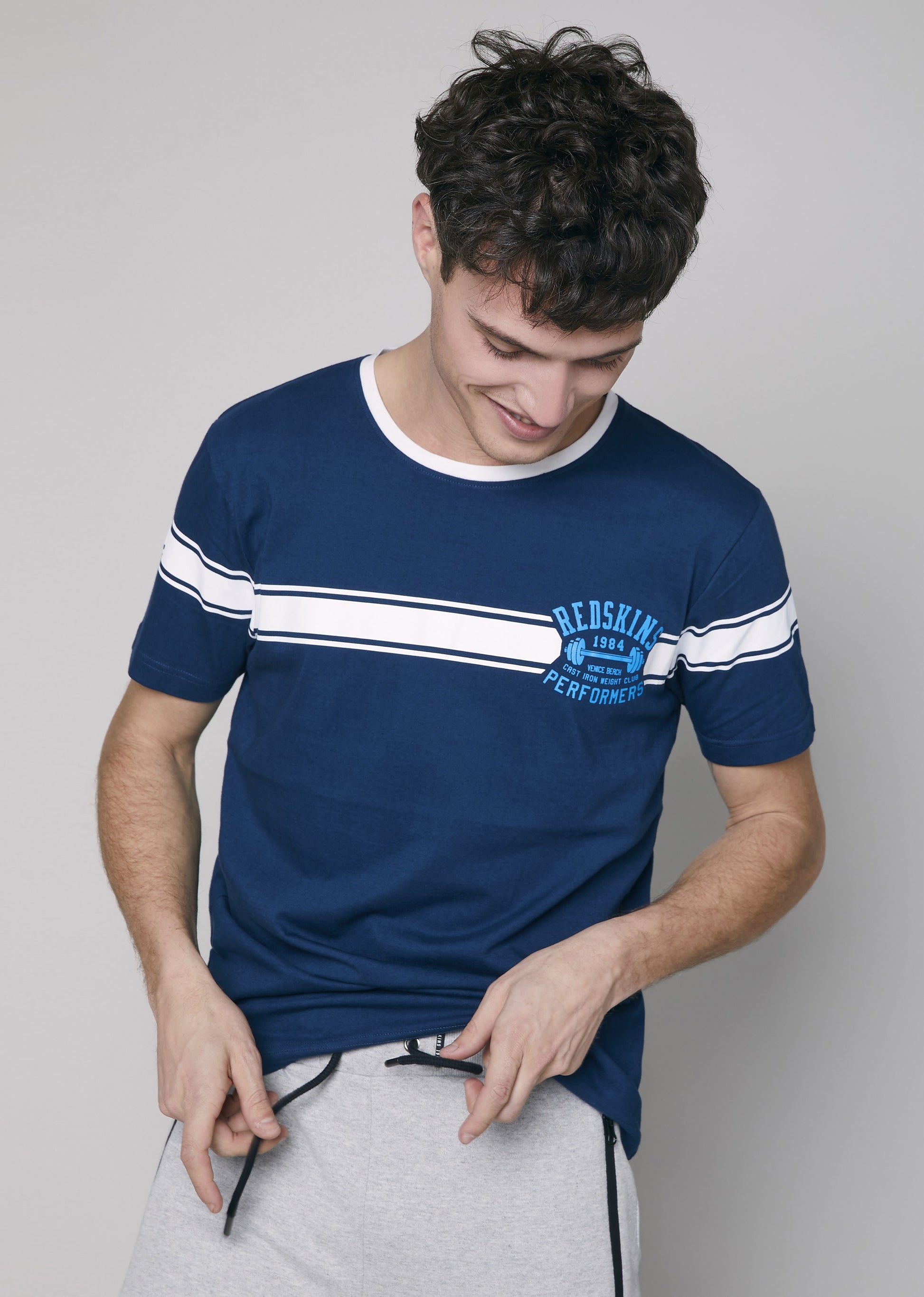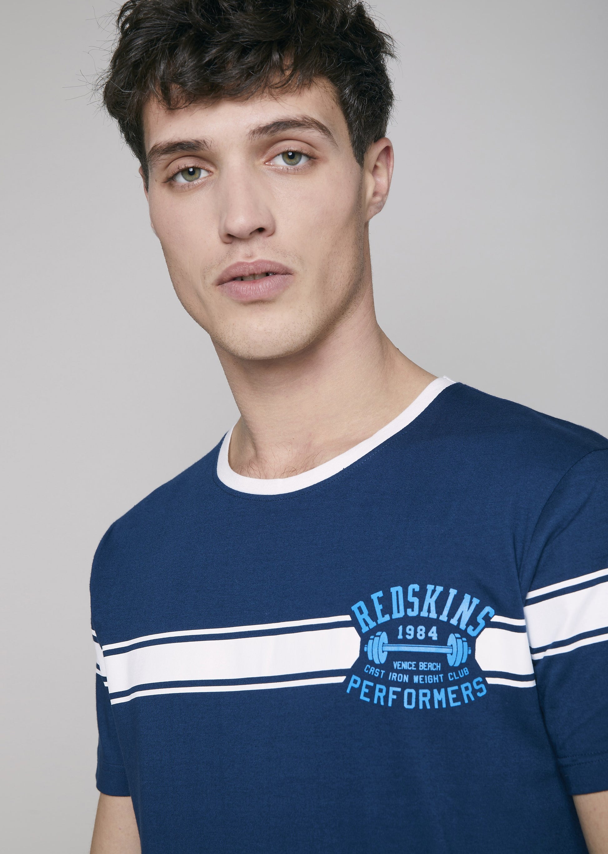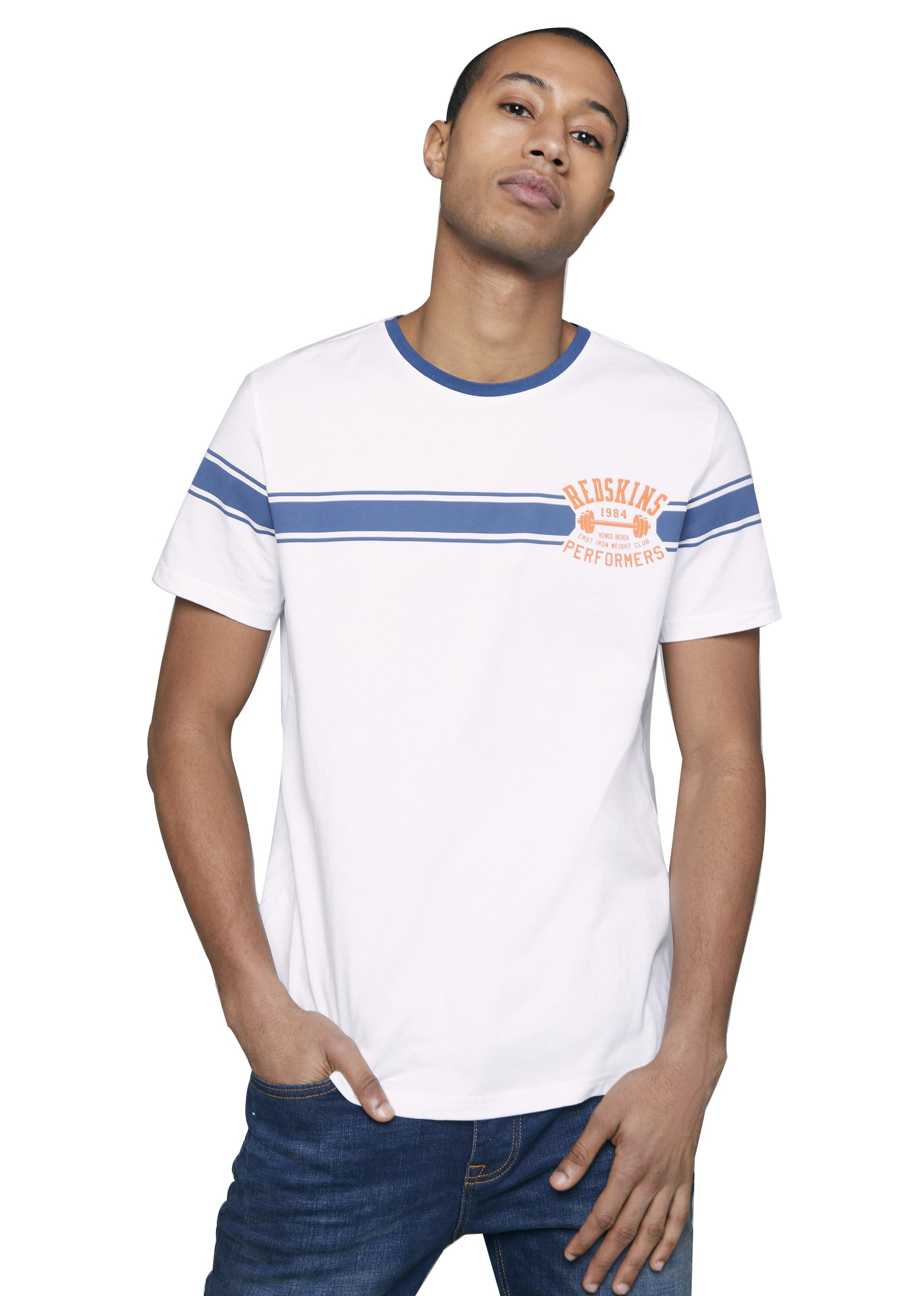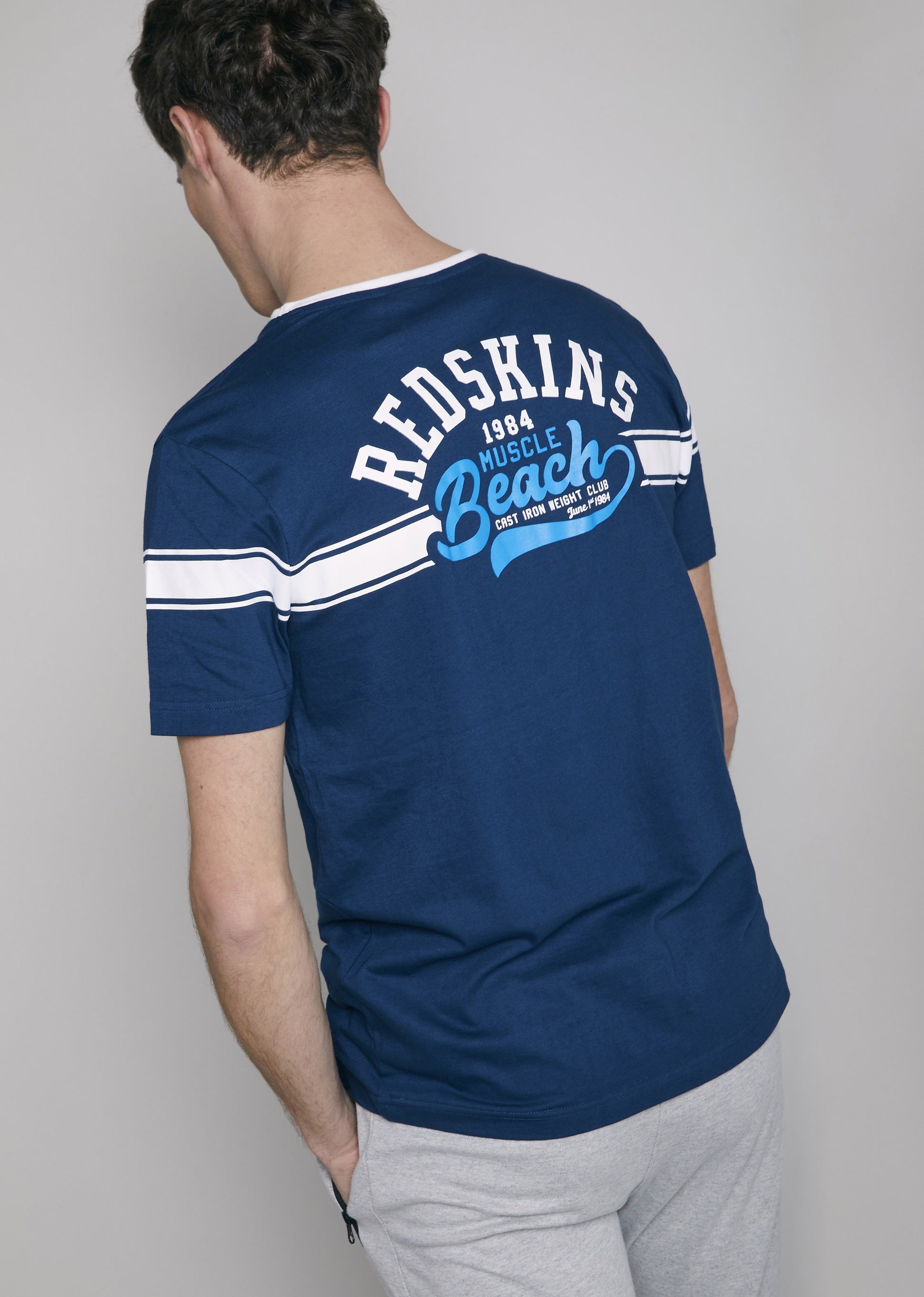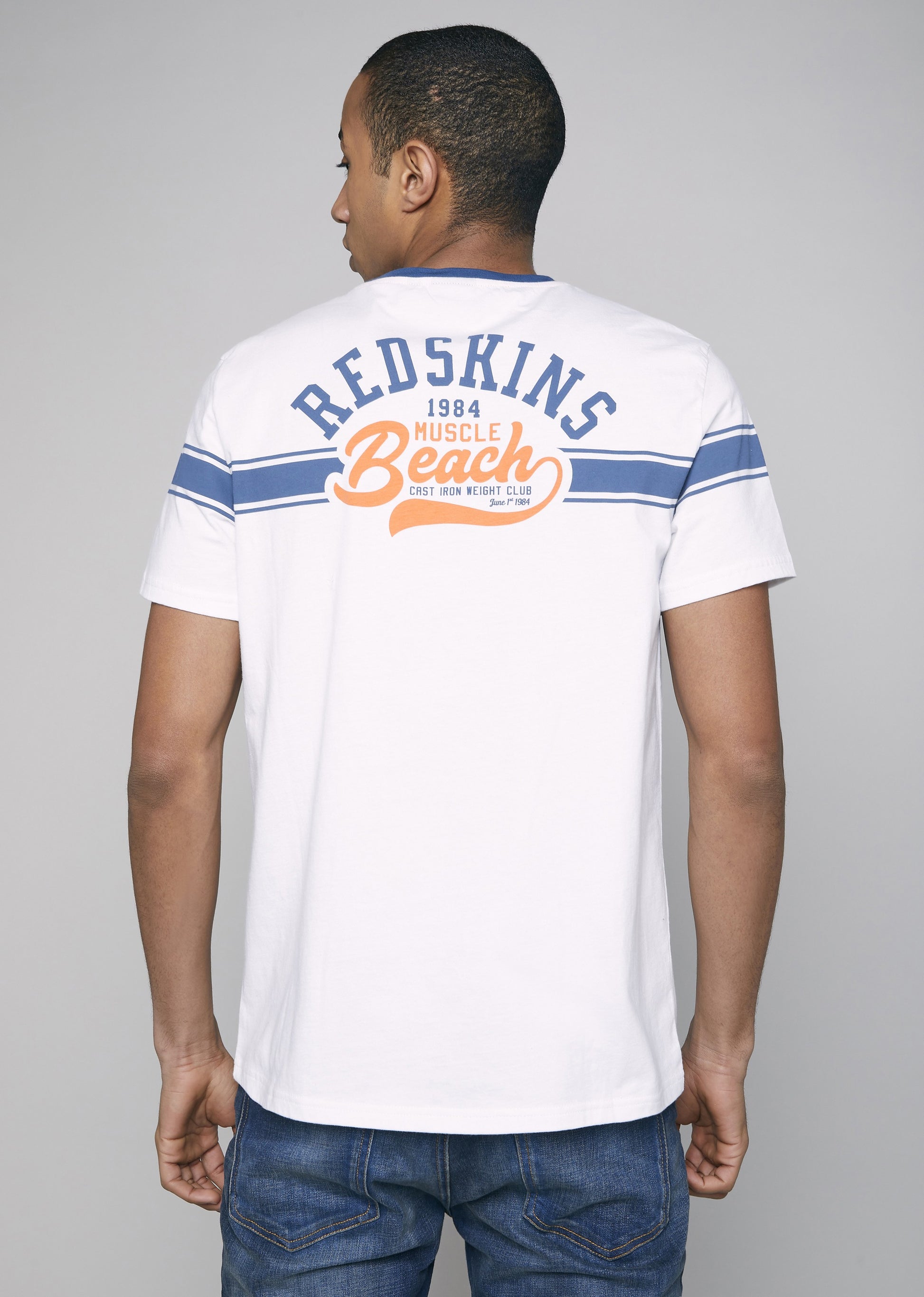 Le t-shirt MUSCLE HONDA reprend les codes du thème de cette saison estivale, Venice Beach et Muscle Beach. Il dispose d'un col rond, de manches courtes et un d'un imprimé Redskins discret à l'avant repris au dos, de manière plus marquée.