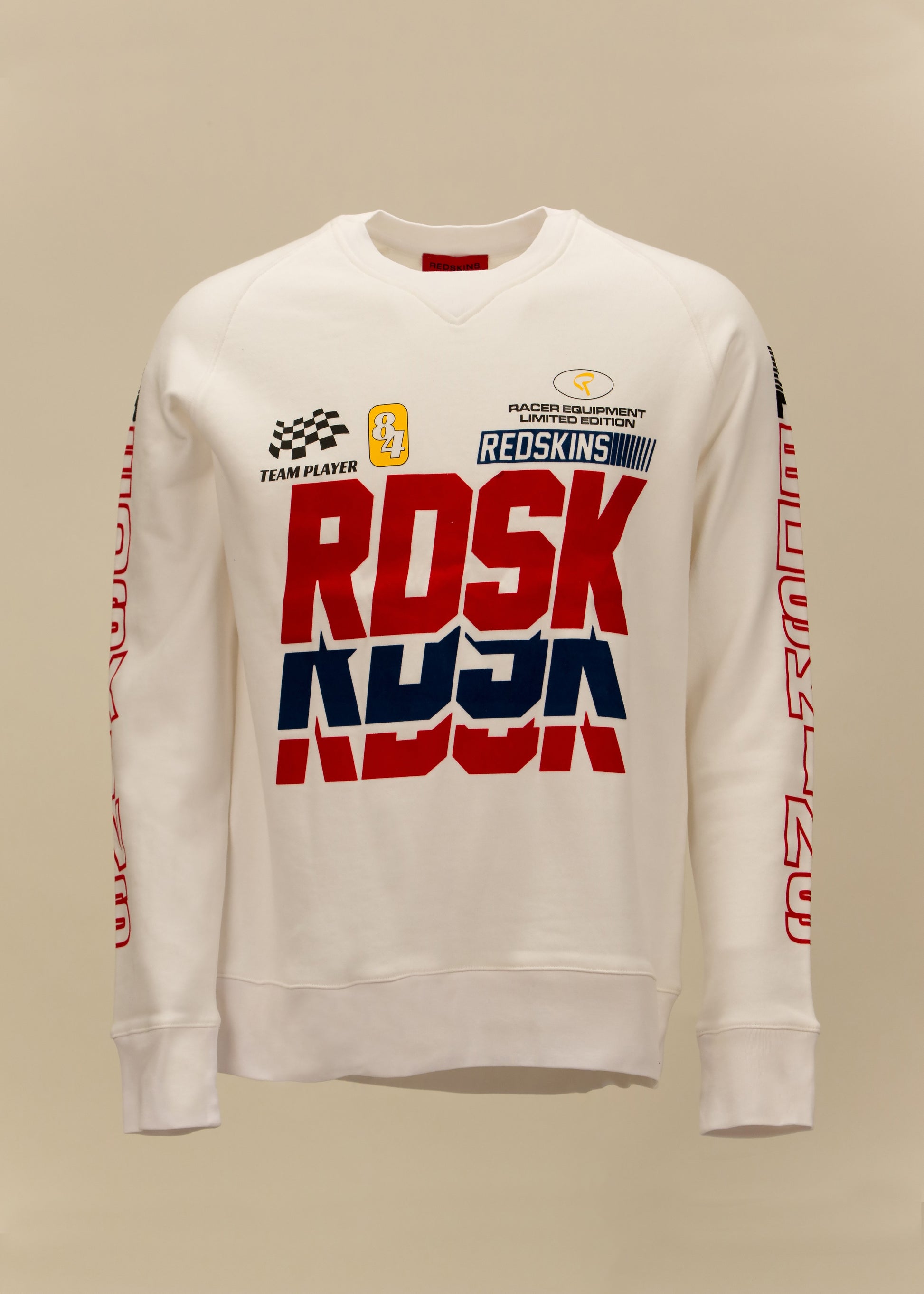 Sweat manches longues, PLAYER FRENCH, col rond, inscription RDSK sur la face avant, thème racing, et inscriptions REDSKINS sur les manches. Composition : 100 % Coton