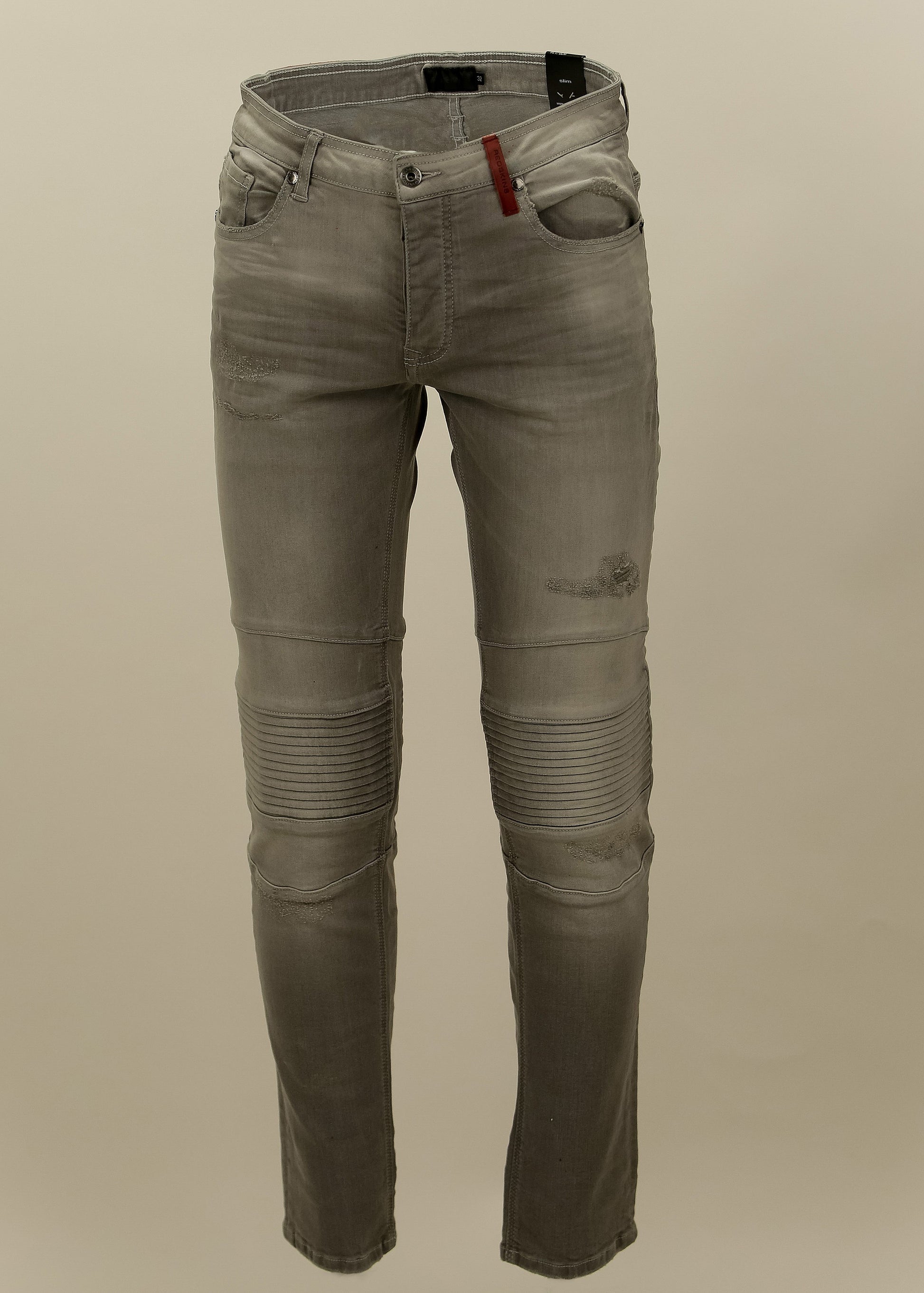 Jean en coton POSKA SILEX, effet strié sur les genoux, effet destroy sur la jambe gauche, 2 poches à l'avant et 2 à l'arrière.Composition : 98 % Coton - 2 % Elasthanne