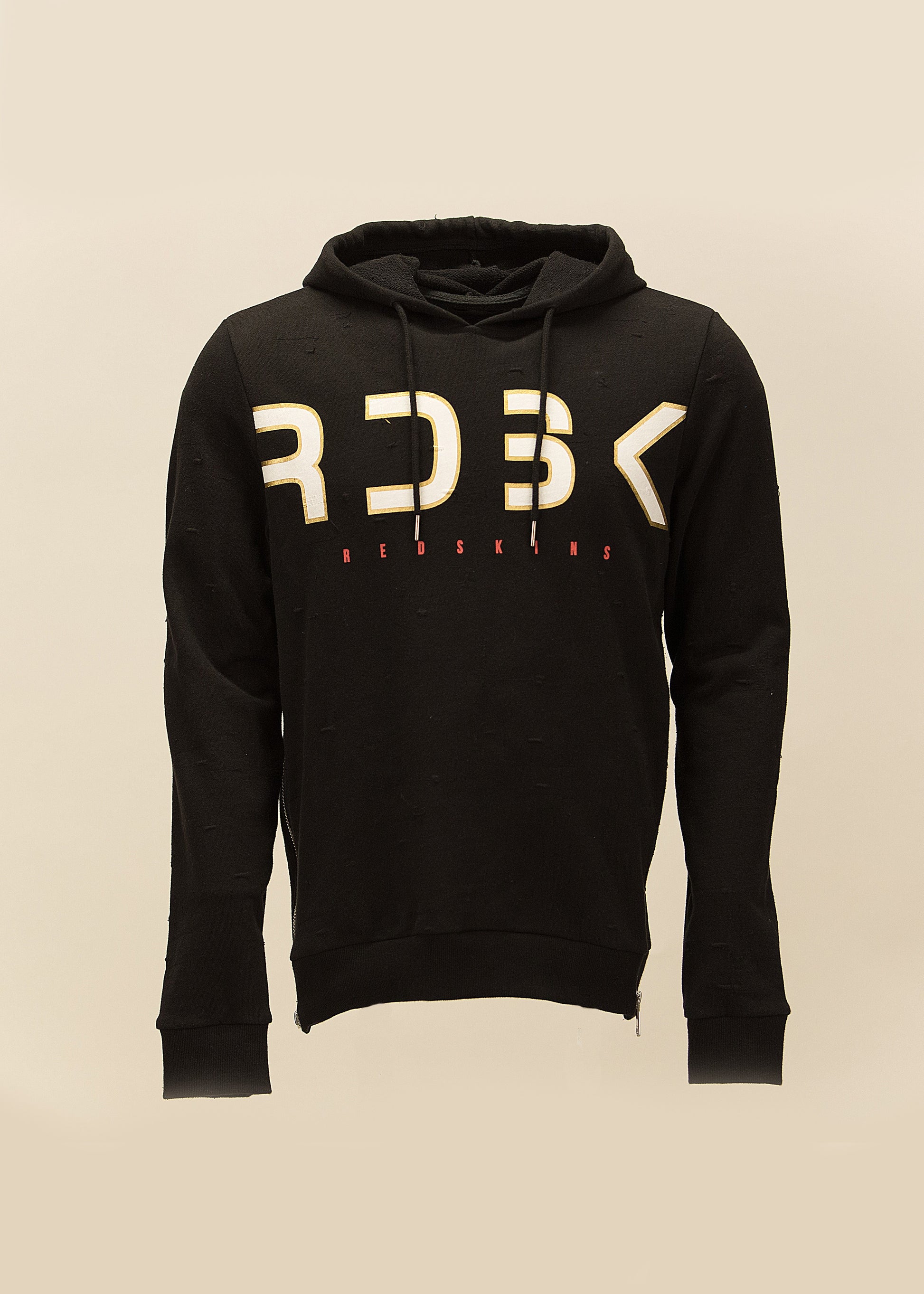 Gilet à manches longues SYLVESTER WOOM, capuche avec liens de serrage, inscription REDSKINS sur la poitrine, façon Destroy. Zip sur les côtés du sweat.