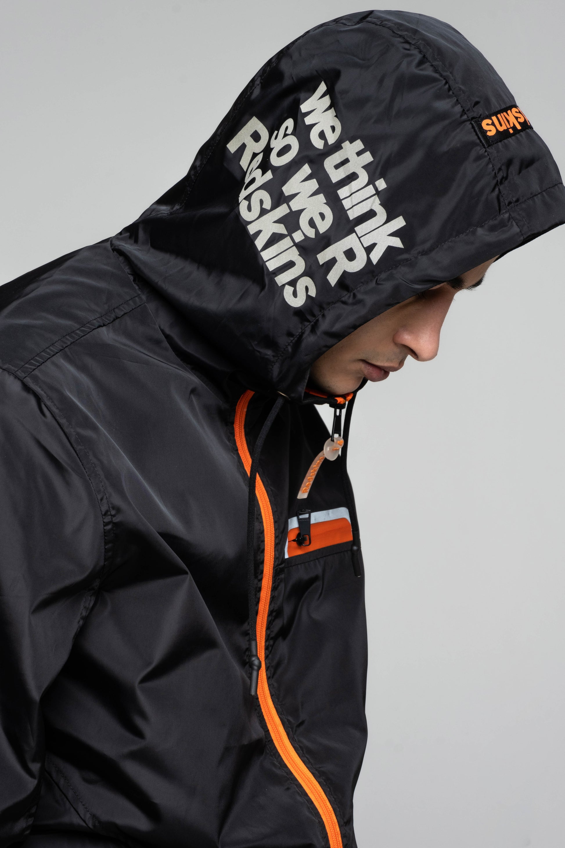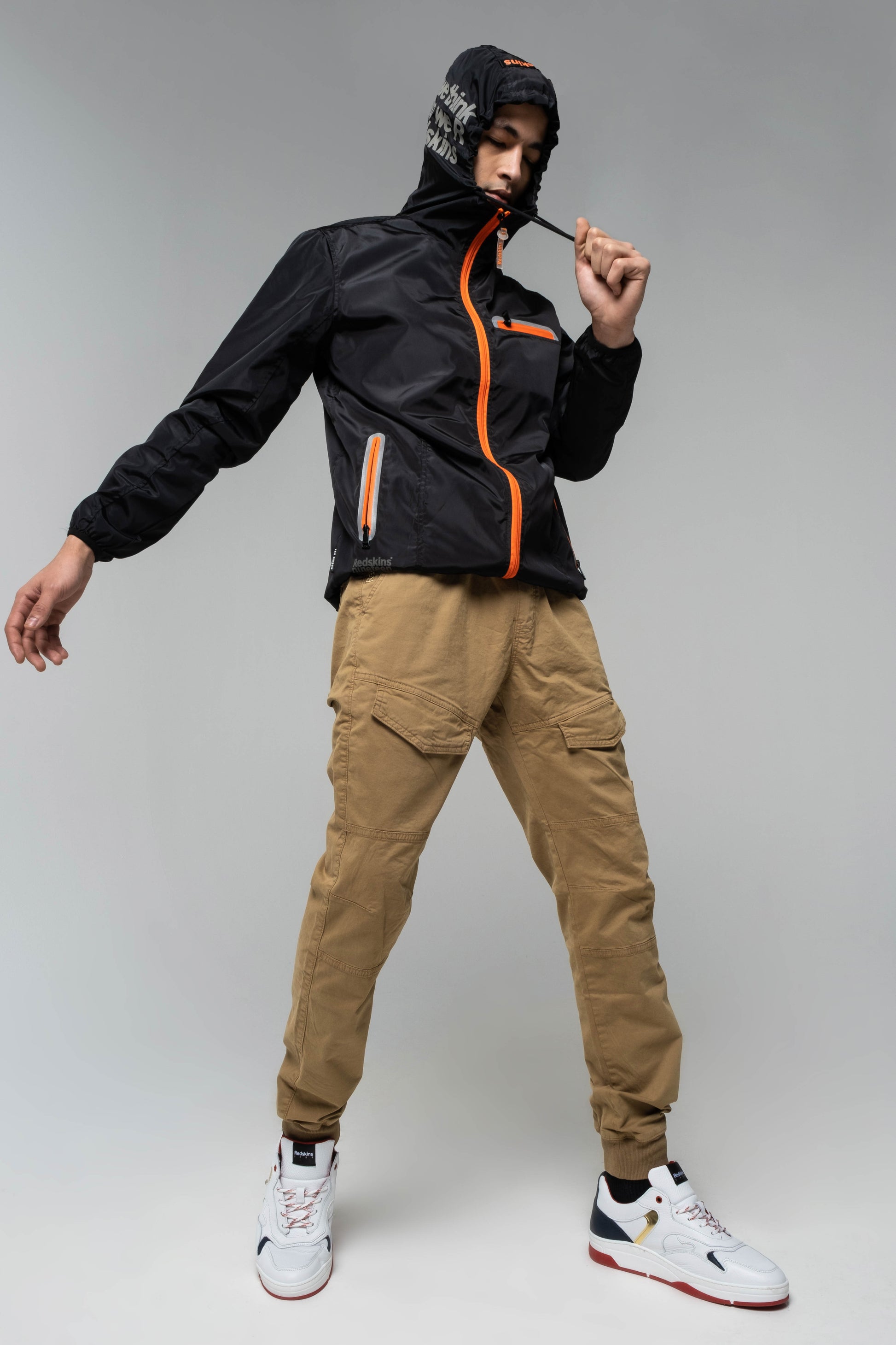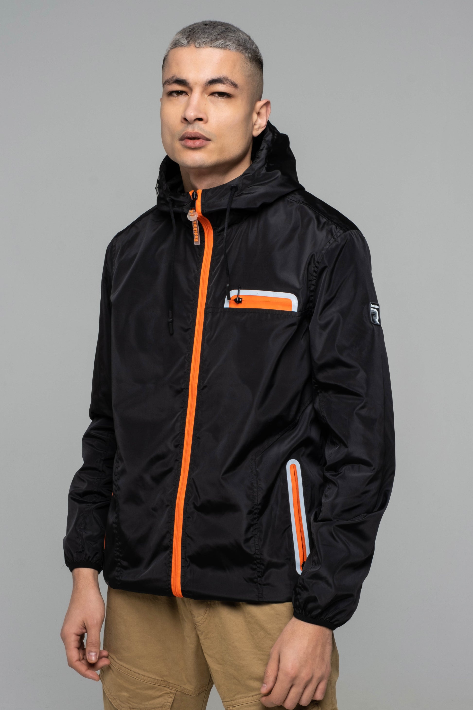 Le coupe-vent bicolore LUST PEPPERS dispose d'une capuche imprimée et d'une fermeture zippée orange ainsi que de poches zippées à l'avant. Composition : 100% Polyester
