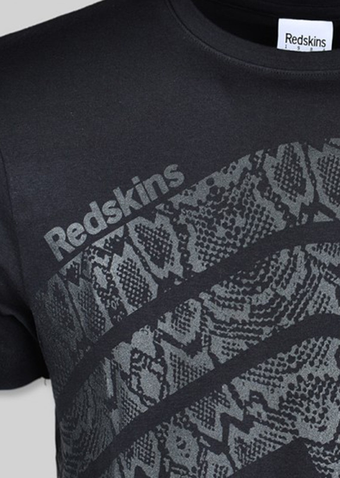 Le t-shirt PERTH CALDER est en coton, à manches courtes et disponible en col rond. En impression sur tout le torse on découvre le R de la marque REDSKINS façon python. Composition : 95% COTON - 5% ELASTHANNE