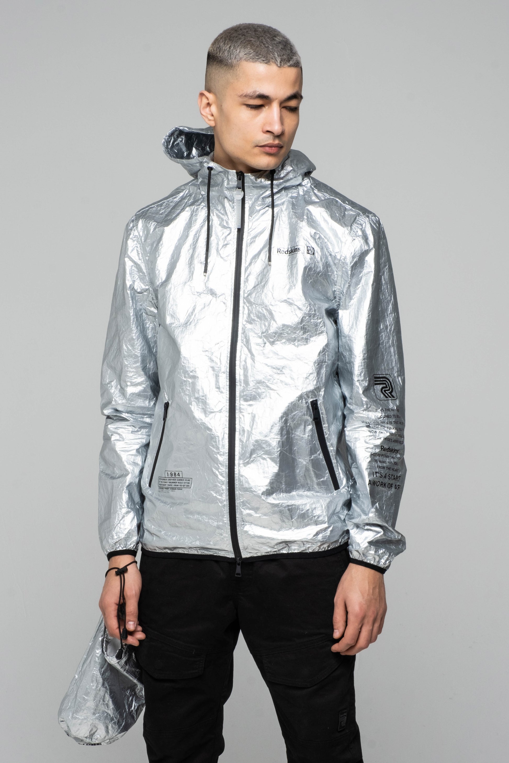 Le coupe-vent PUMP WHINE est confectionné dans une toile froissée, dispose d'une capuch, d'une fermeture zippée contrastante ainsi que de poches zippées à l'avant. Il est orné d'une inscription le long du bras. Composition : 100% Polyester
