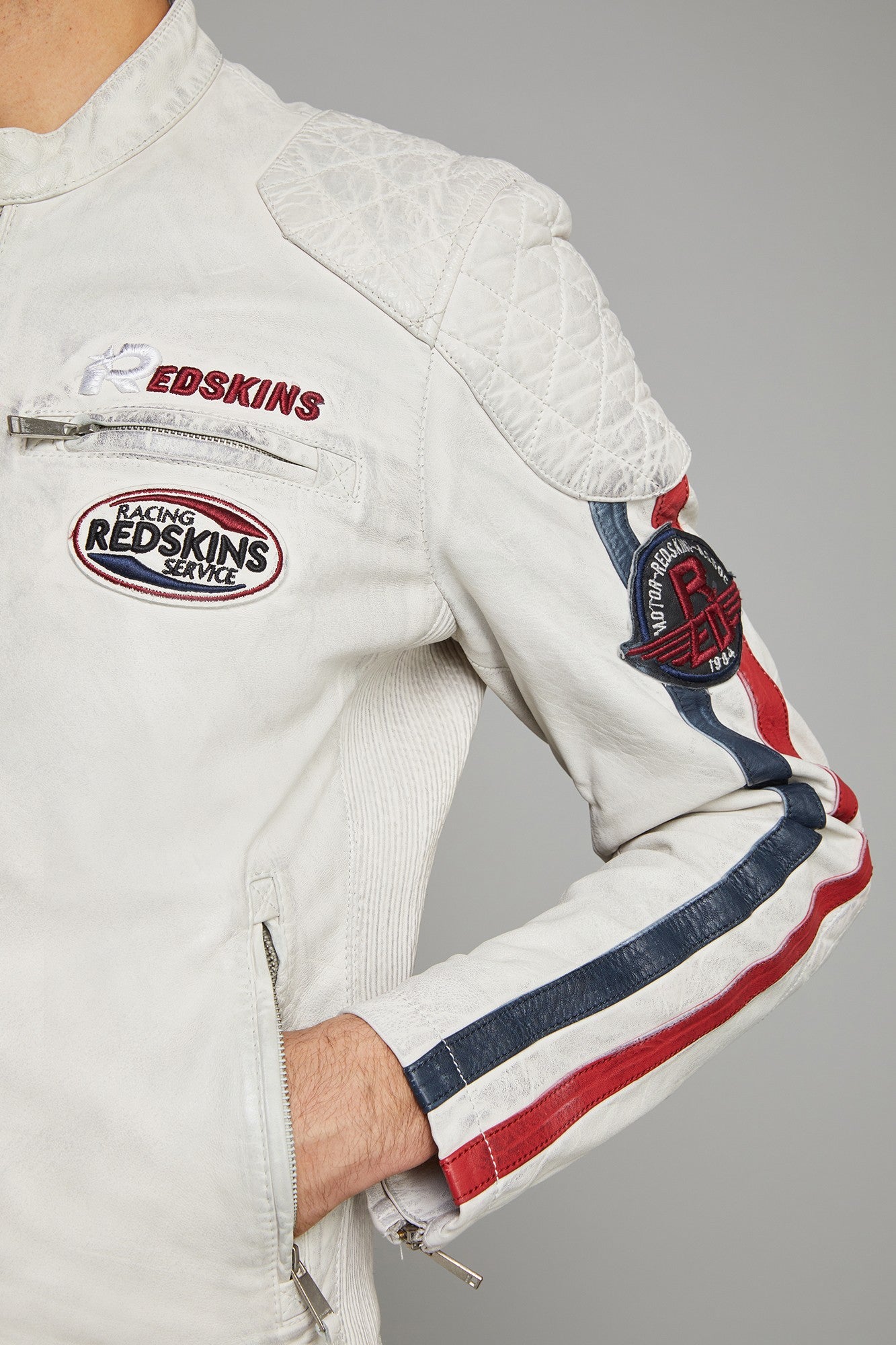 Le blouson en cuir RAFTER CALISTA est né sur les circuits de course. Sa carrure est soulignée par des bandes qui longent les manches et des empiècements matelassés. Un zip métallique complètent le style singulier et des broderies REDSKINS à la poitrine rappelle l'identité de cette pièce pleine de caractère. Composition : Cuir de mouton