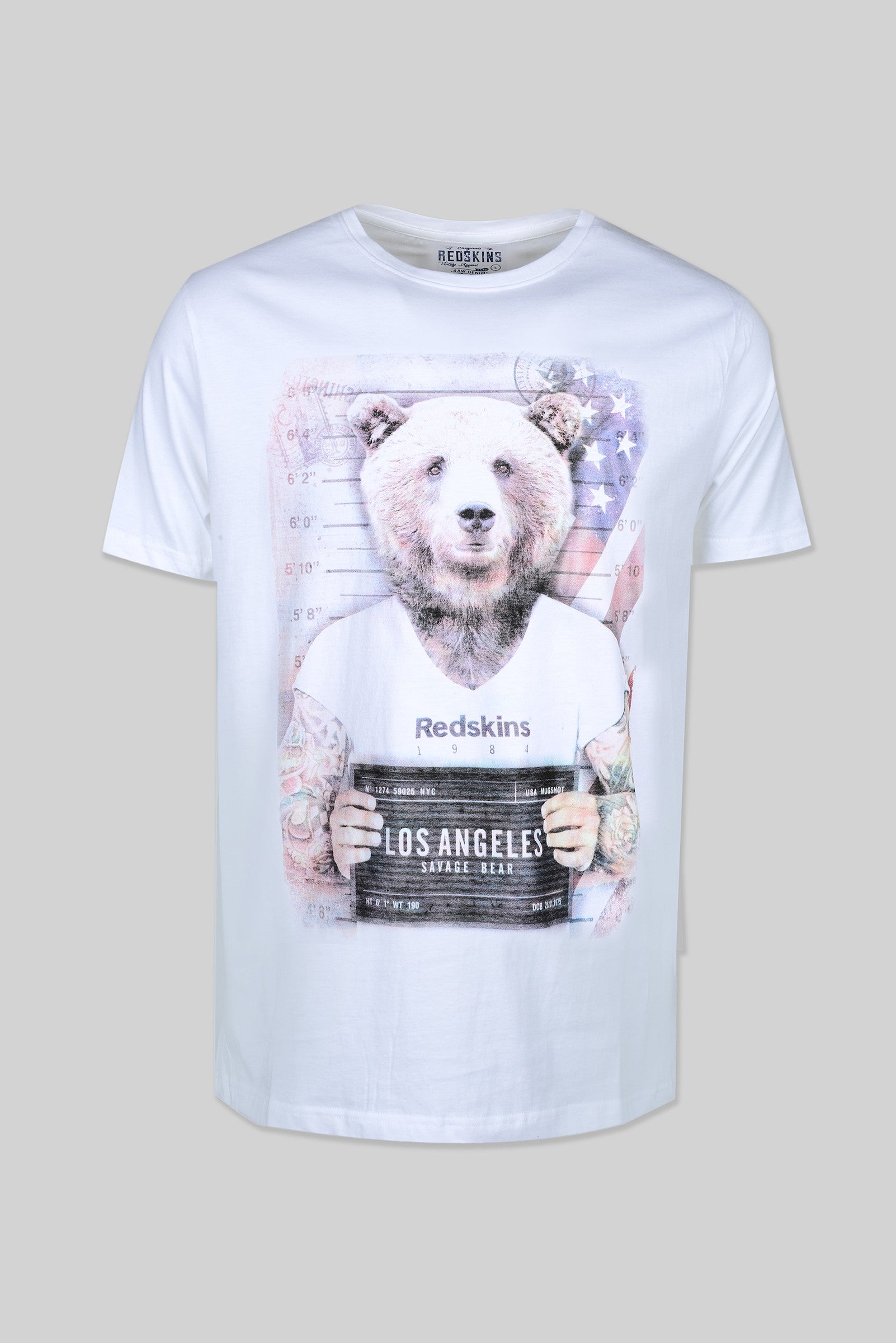 Le t-shirt 100 % coton RUBBEN HONDA est inspiré des tendances de Los Angeles, avec son image d'ours bad boy. Il est disponible en col rond et manches courtes.