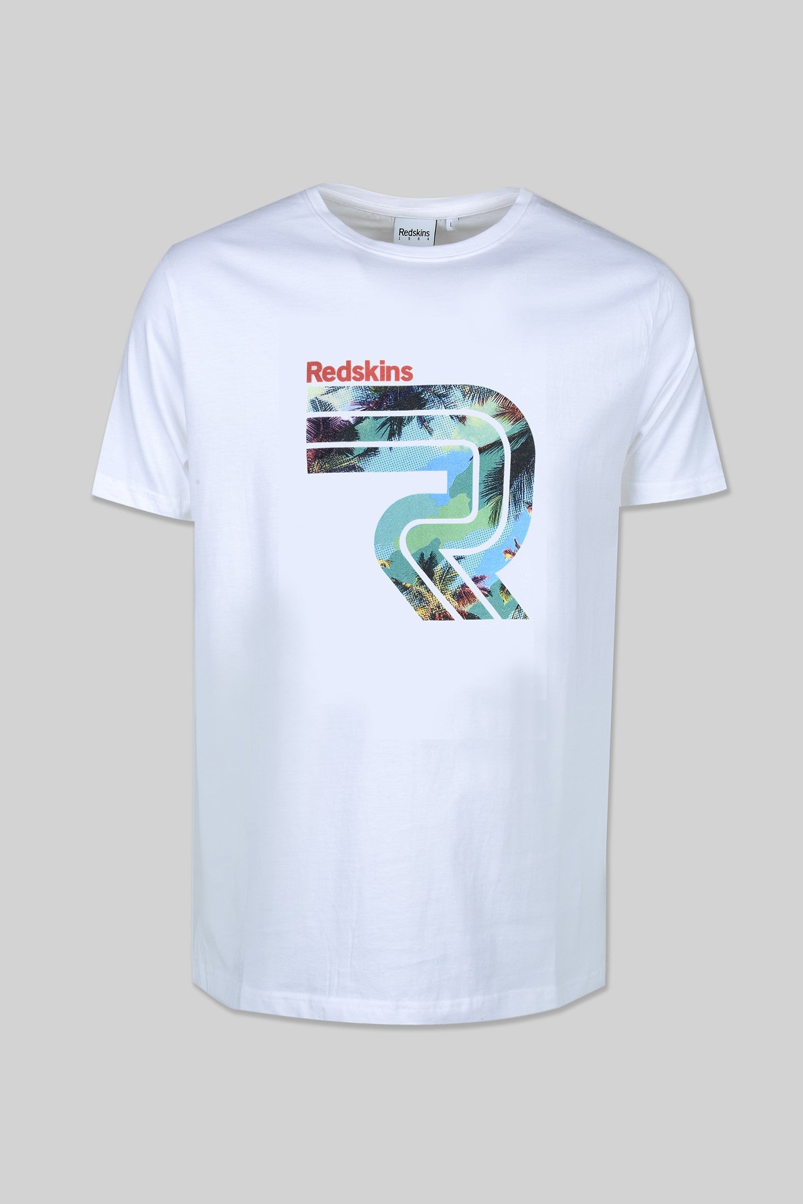 Le t-shirt en coton, col rond et manches courtes SPANGLER CALDER est orné du logo de la marque REDSKINS, réalisé aux couleurs estivales, le voyage près des palmiers n'a jamais été aussi près. La coupe est près du corps. Composition : 95% COTON - 5% ELASTHANNE