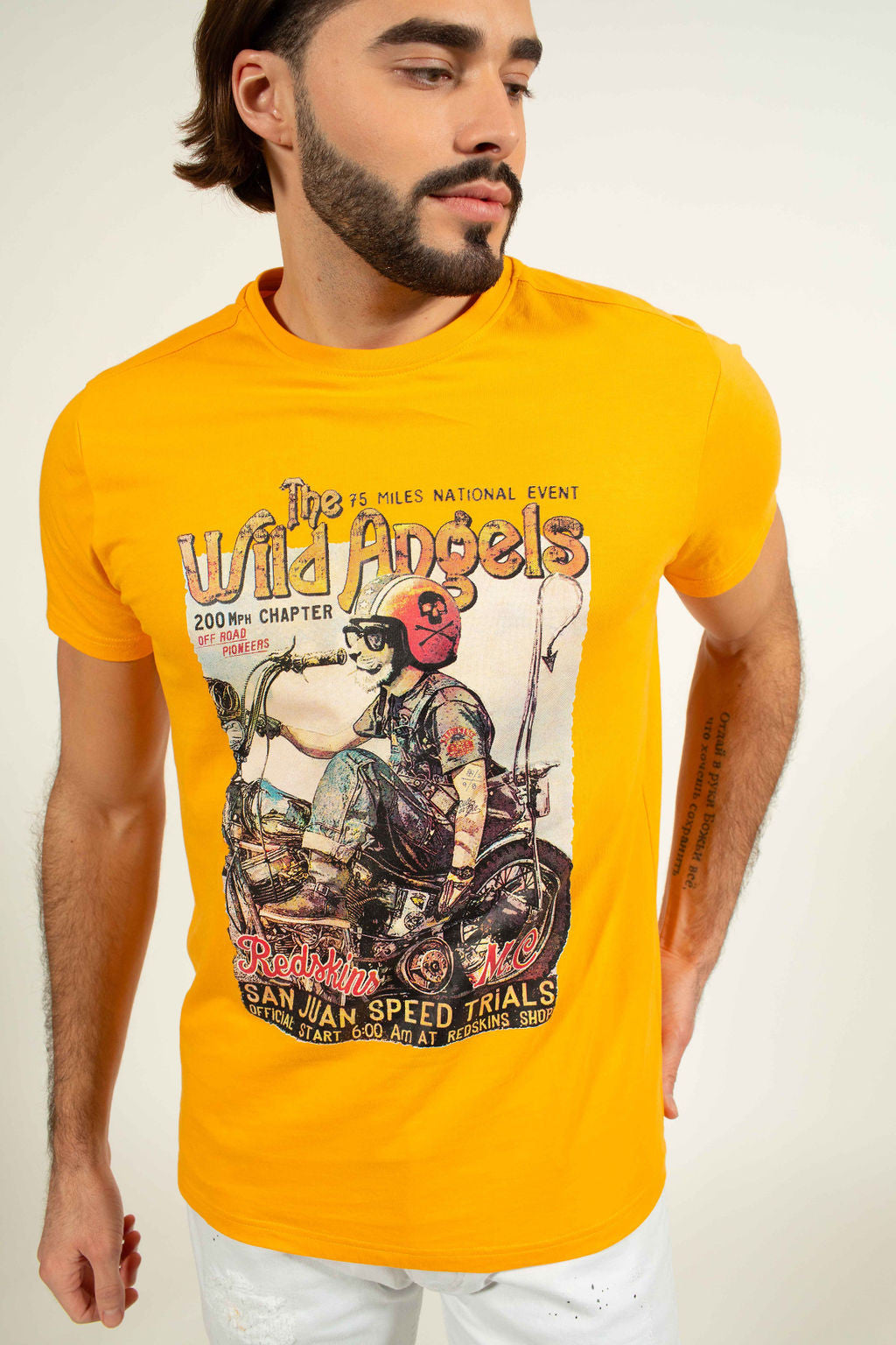 Le t-shirt ANGELS EASY présente un dessin d'animal motard sur la face avant. aux inspirations de SAN JUAN, il donne une tonalité estivale à la pièce, elle est à manches courtes et col rond. 100 % Coton
