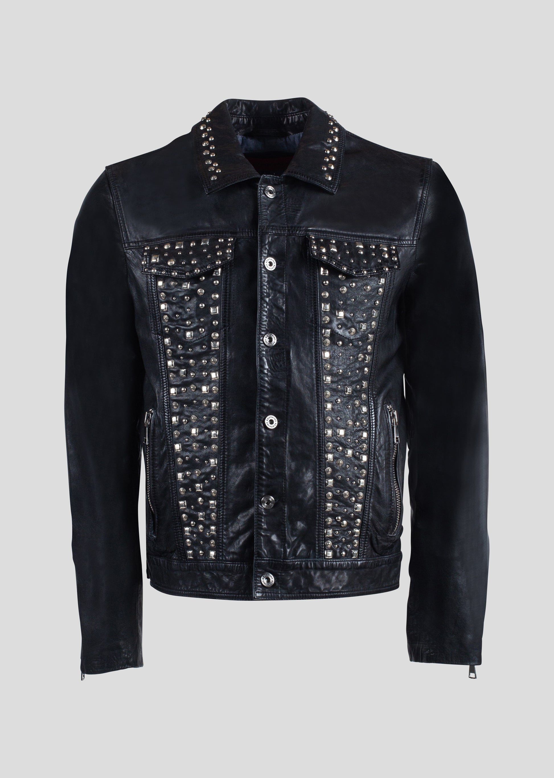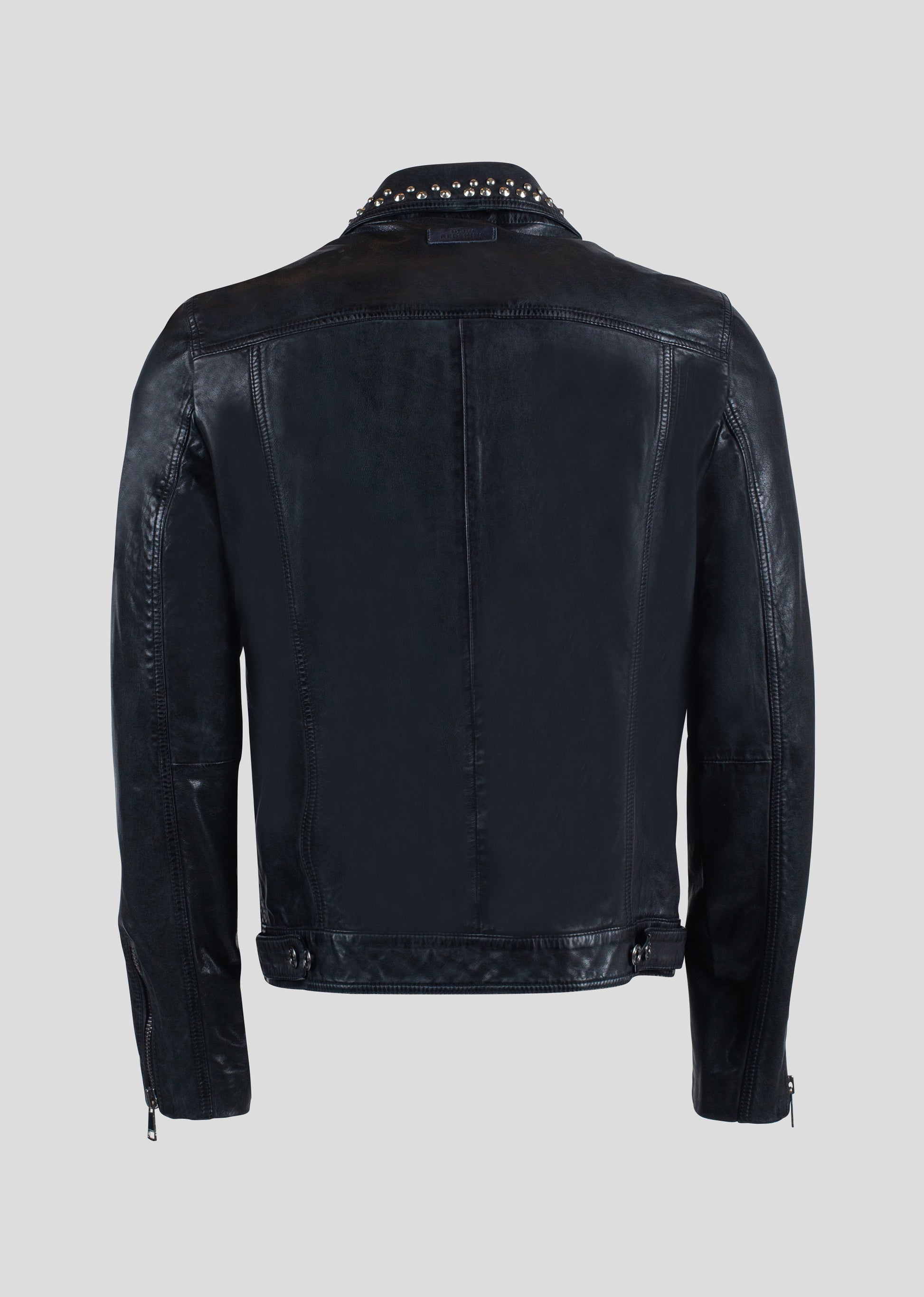 La veste DENZEL RETRO, appréciée pour son style et son côté bi-matière est agrémentée de détails qui font d’elle une pièce unique. Elle est ornée de différents types de clous argentés au niveau du col et du devant. Des empiècements sur le haut de la veste en matière jean déchiré contrastent parfaitement avec le cuir et lui ajoutent du pep’s. Cuir de Mouton