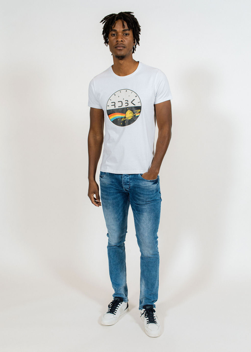 Le t-shirt GALAXIE HONDA est disponible en col rond et manches courtes. Il présente un visuel aux inspirations de l'espace avec effet CRINKLE sur la poitrine. 100 % Coton