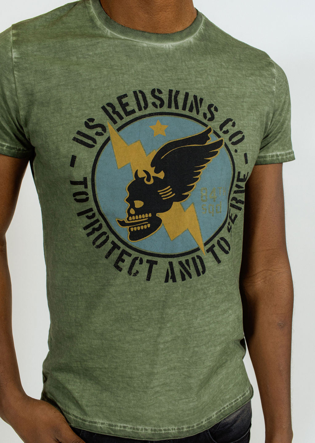 Le t-shirt PROTECT ACID à manches courtes et col rond arbore un logo "US REDSKINS" à tête de mort sur la face avant. Les couleurs proposées sont vintage et dans l'air du temps, idéal pour la saison. Le traitement sur la pièce rend chaque exemplaire unique, la couleur peut varier de la photo. 100 % Coton