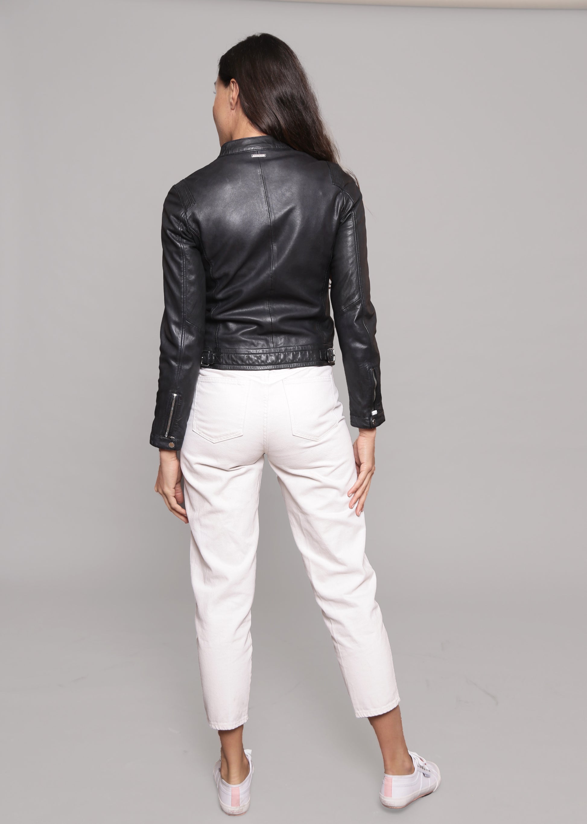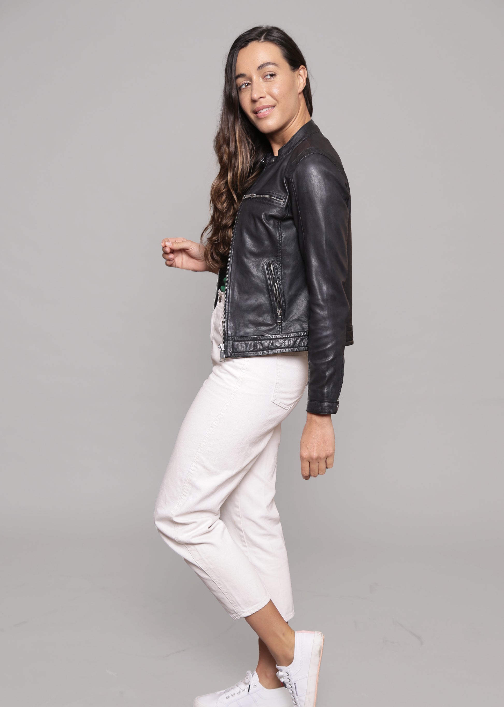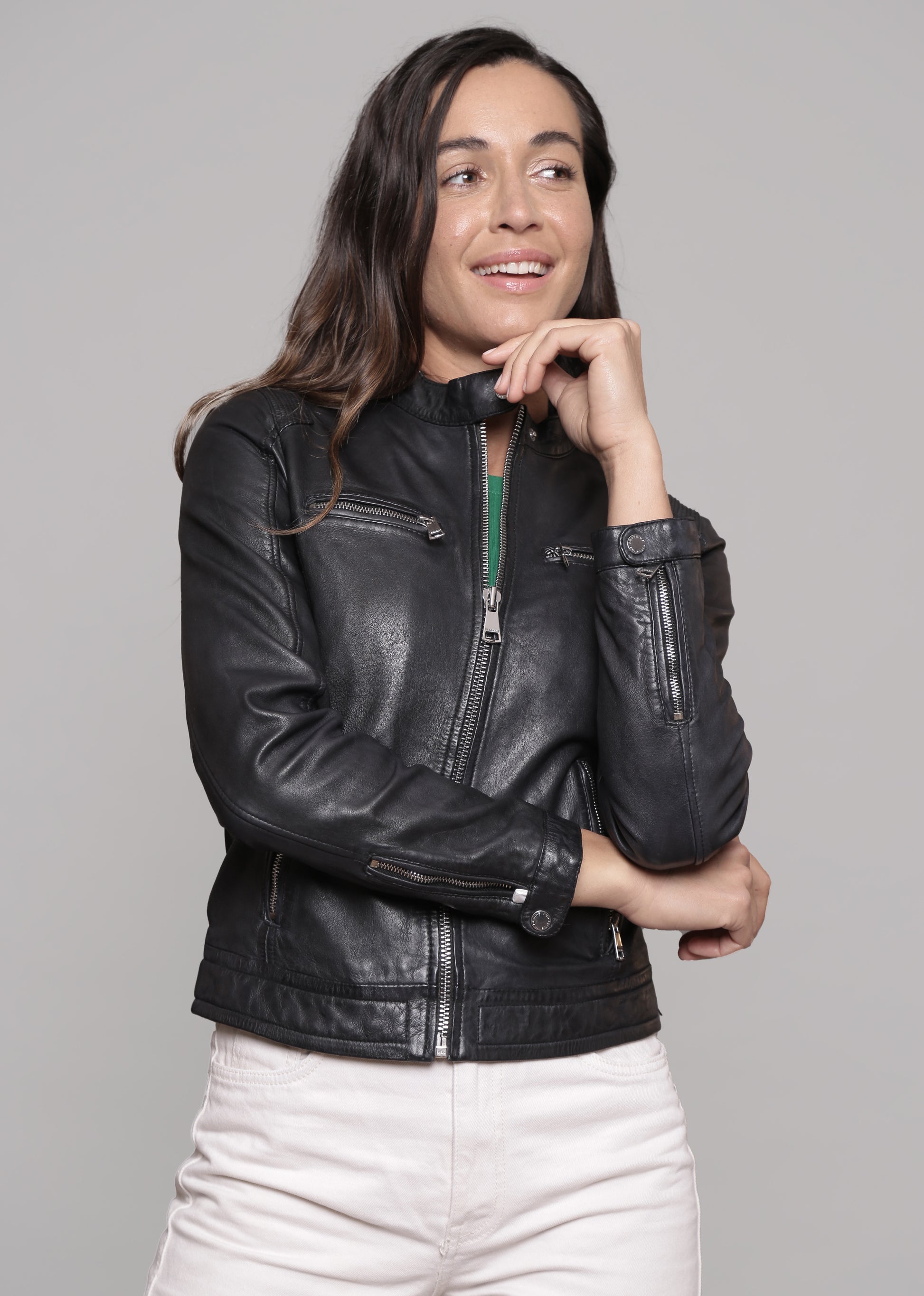 Rien de plus important qu'une veste adaptée pour finaliser votre tenue. Avec la veste en cuir AMI DITY signée REDSKINS, vous avez tout pour être 100 % stylée. La veste est composée en cuir d'agneau et elle est disponible en plusieurs coloris. Cette pièce dispose d'un col mao à pression, d'une fermeture et de quatre poches zippées. La veste est dotée d'une doublure travaillée avec un motif floral sobre girly, et des surpiqûres au niveau de l'épaule ainsi que des boucles discrètes en bas. Il ne vous reste qu'à choisir votre taille !
