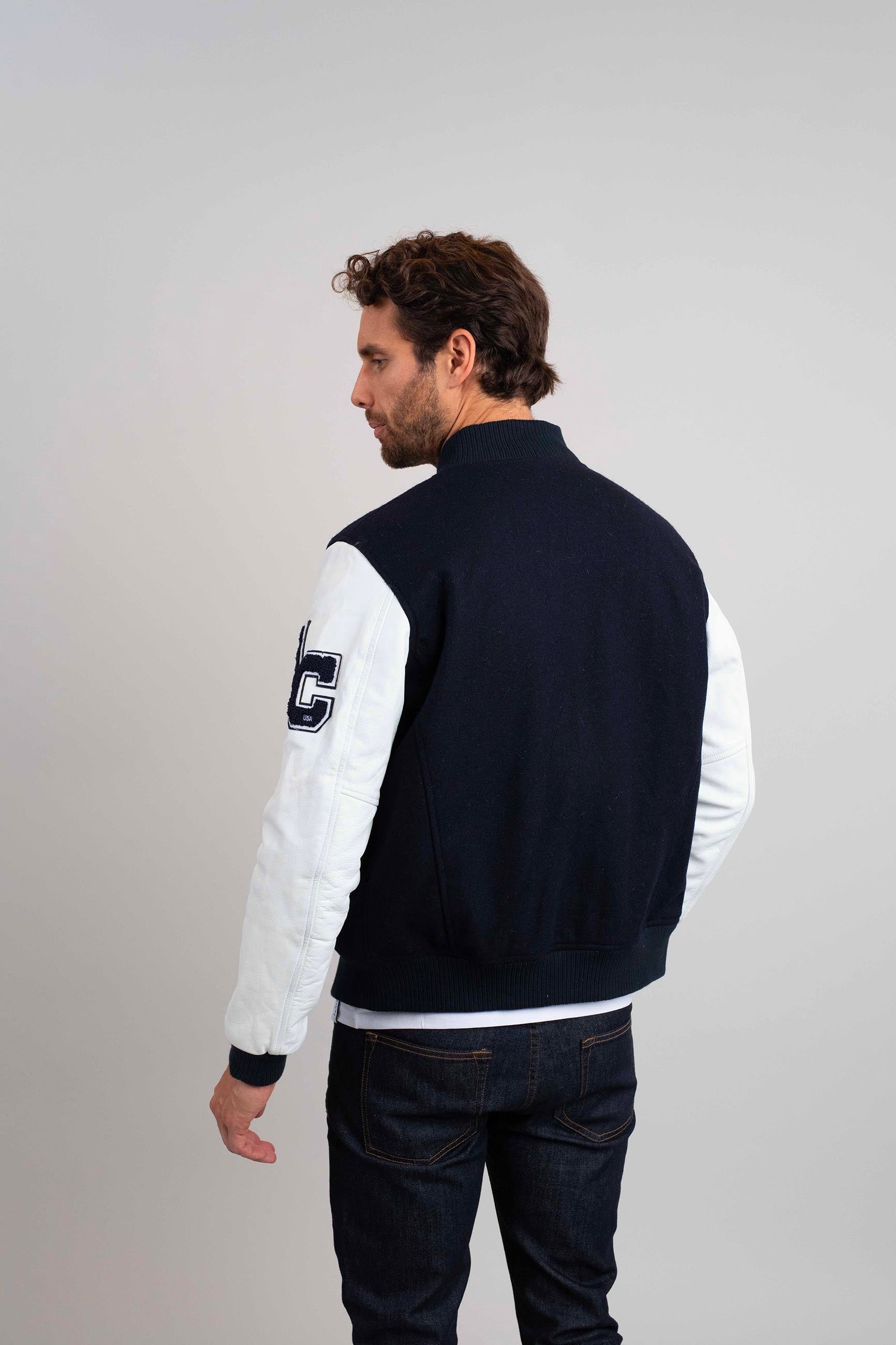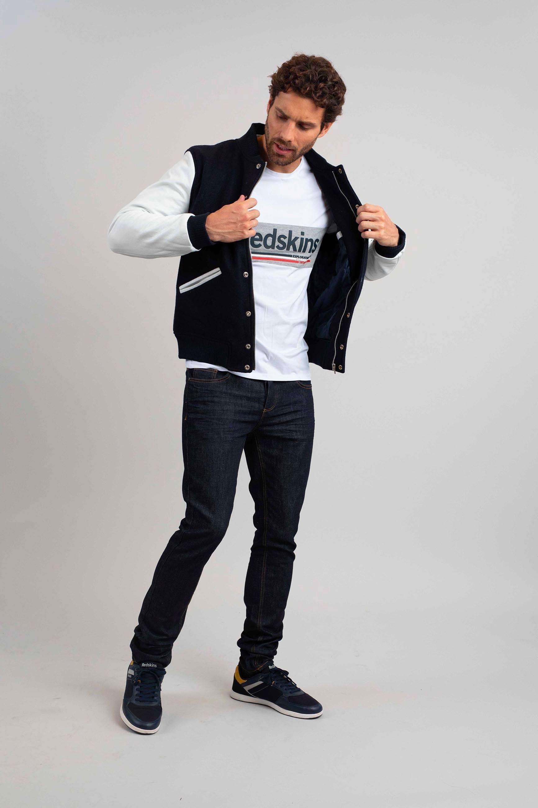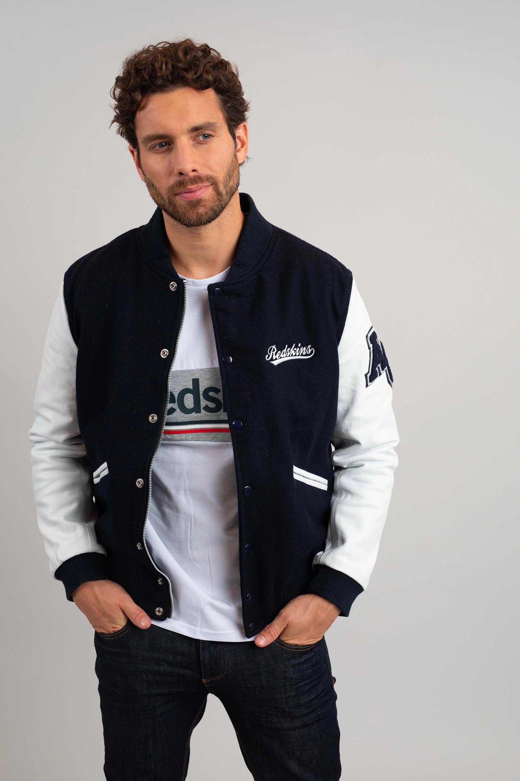 Découvrez la collaboration Redskins x American College. Composition : Cuir de Vachette sur les manches et 100% laine sur la partie principale de la veste.